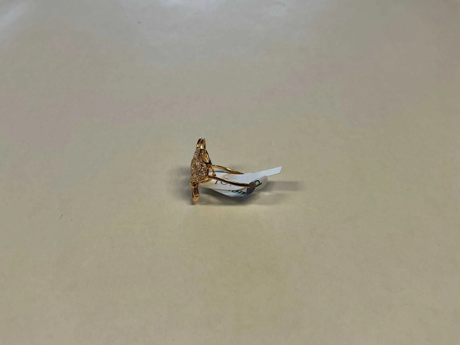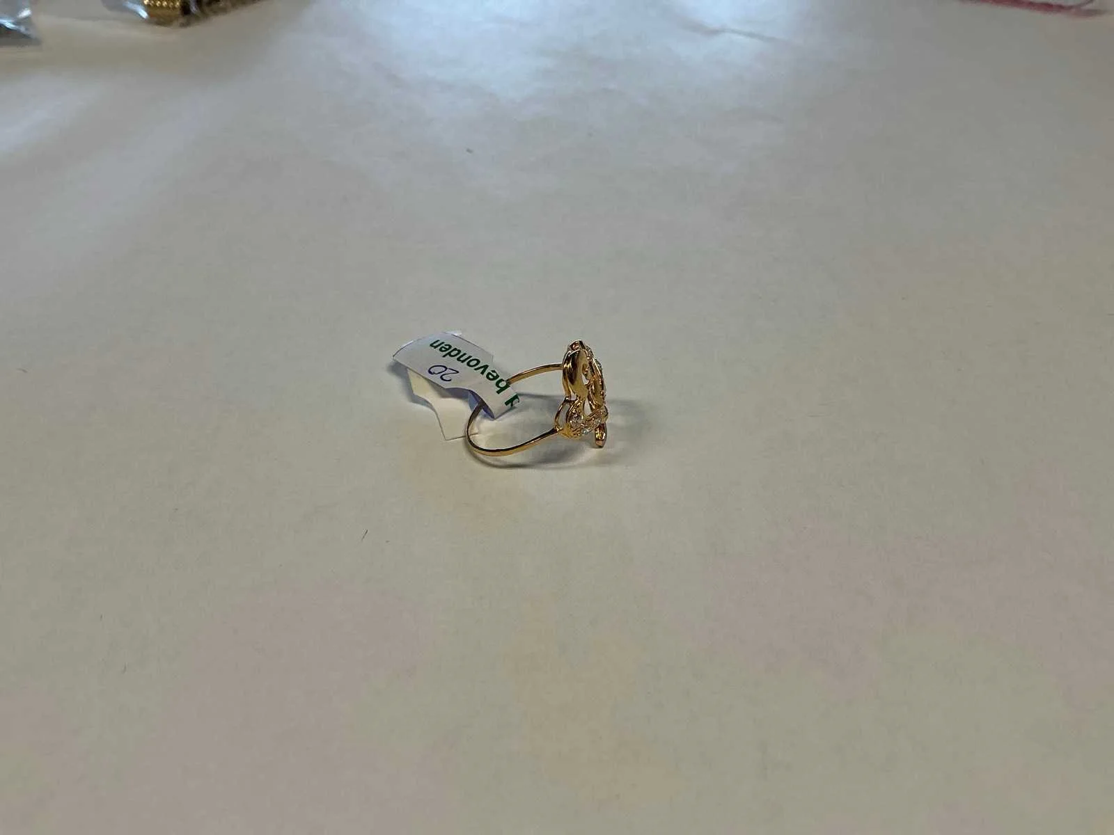 Een 20 karaats (833/000) roségouden ring, bezet met zirkonia's. Bruto gewicht: 2,5 gram. Product type: 20 krt roségouden