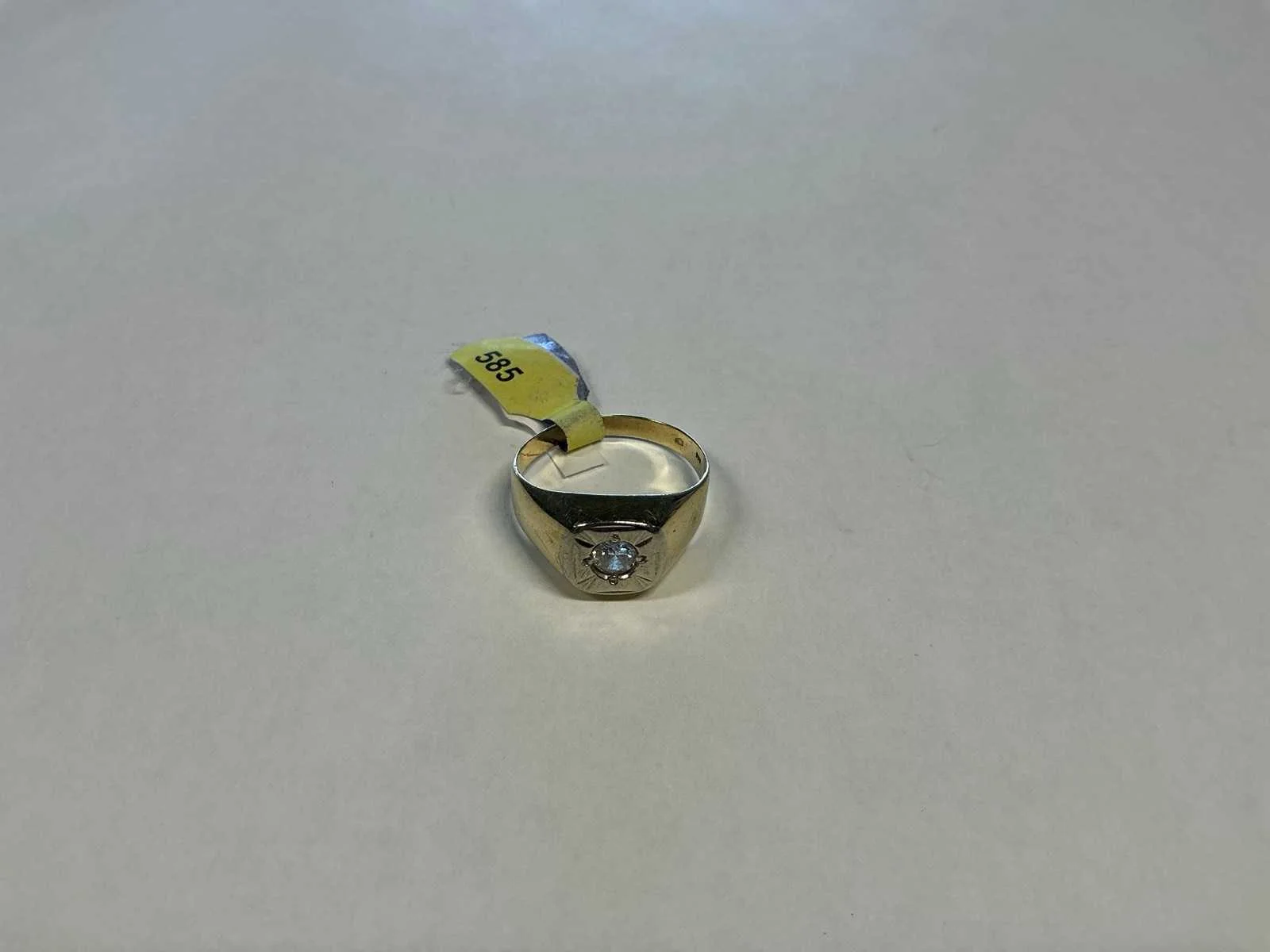 Een 14 karaats (585/000) wit- en geelgouden ring, zgn Engelse ring, bezet met een briljant geslepen diamant, ca. 0,25ct., kleur ca. H, zuiverheid ca. VSI. Bruto gewicht: 4,3 gram. Product type: 14 krt wit- en geelgouden