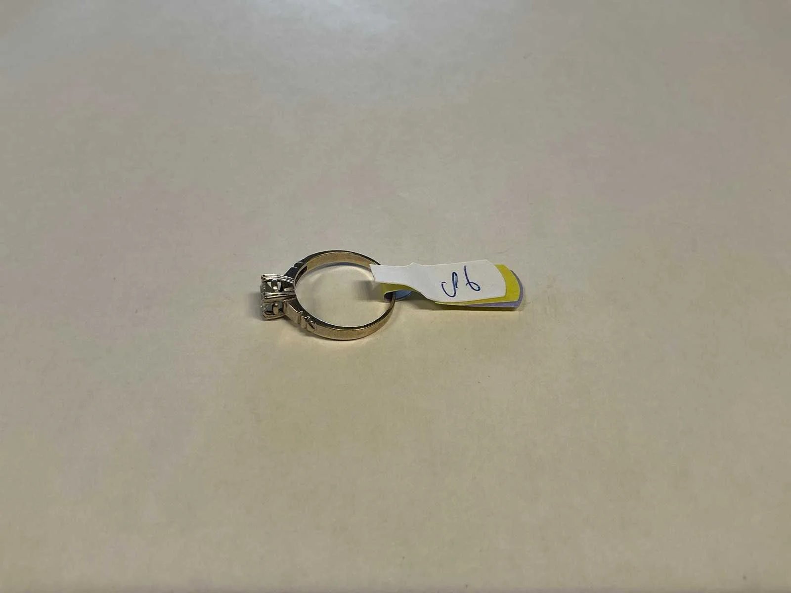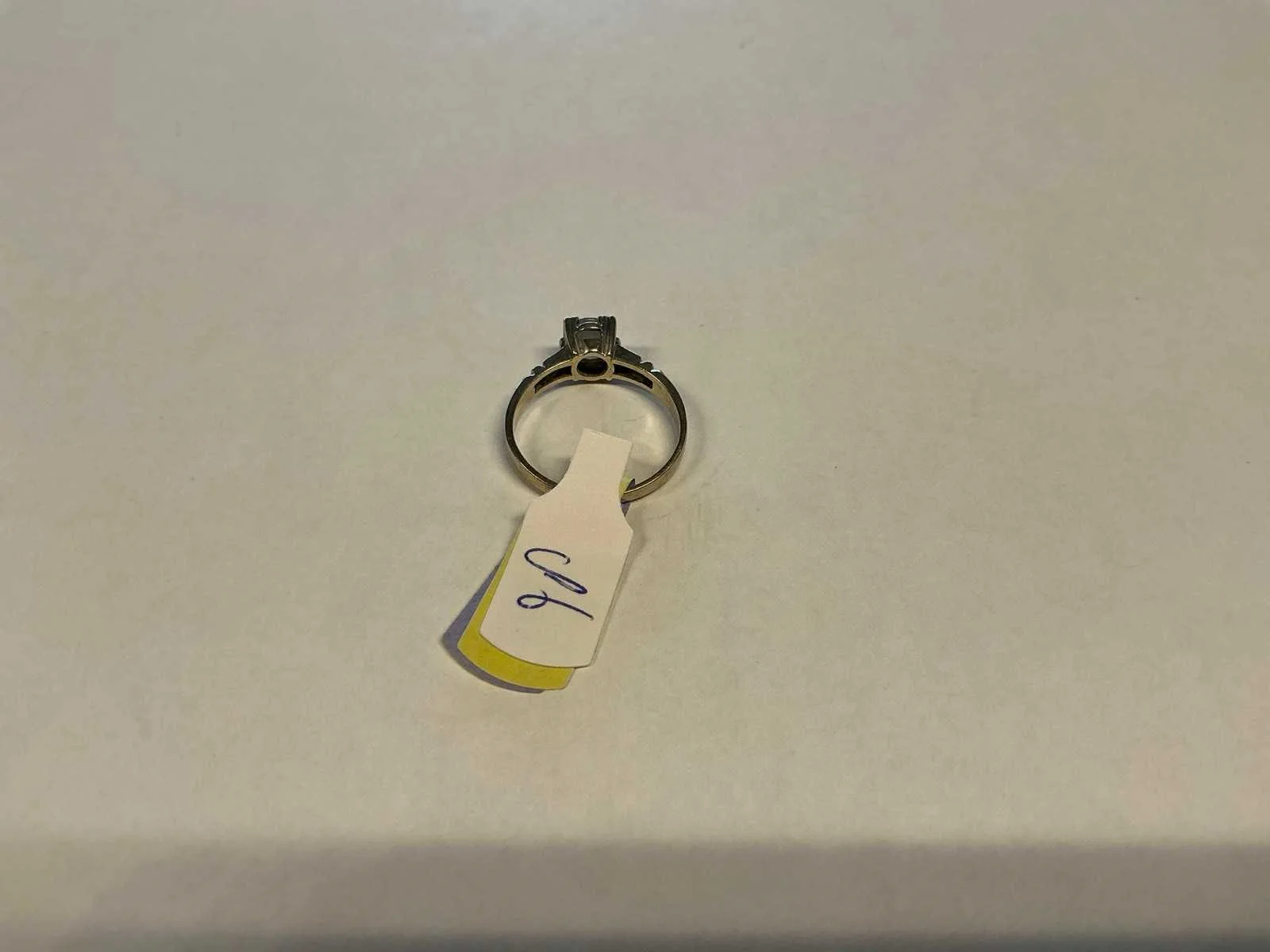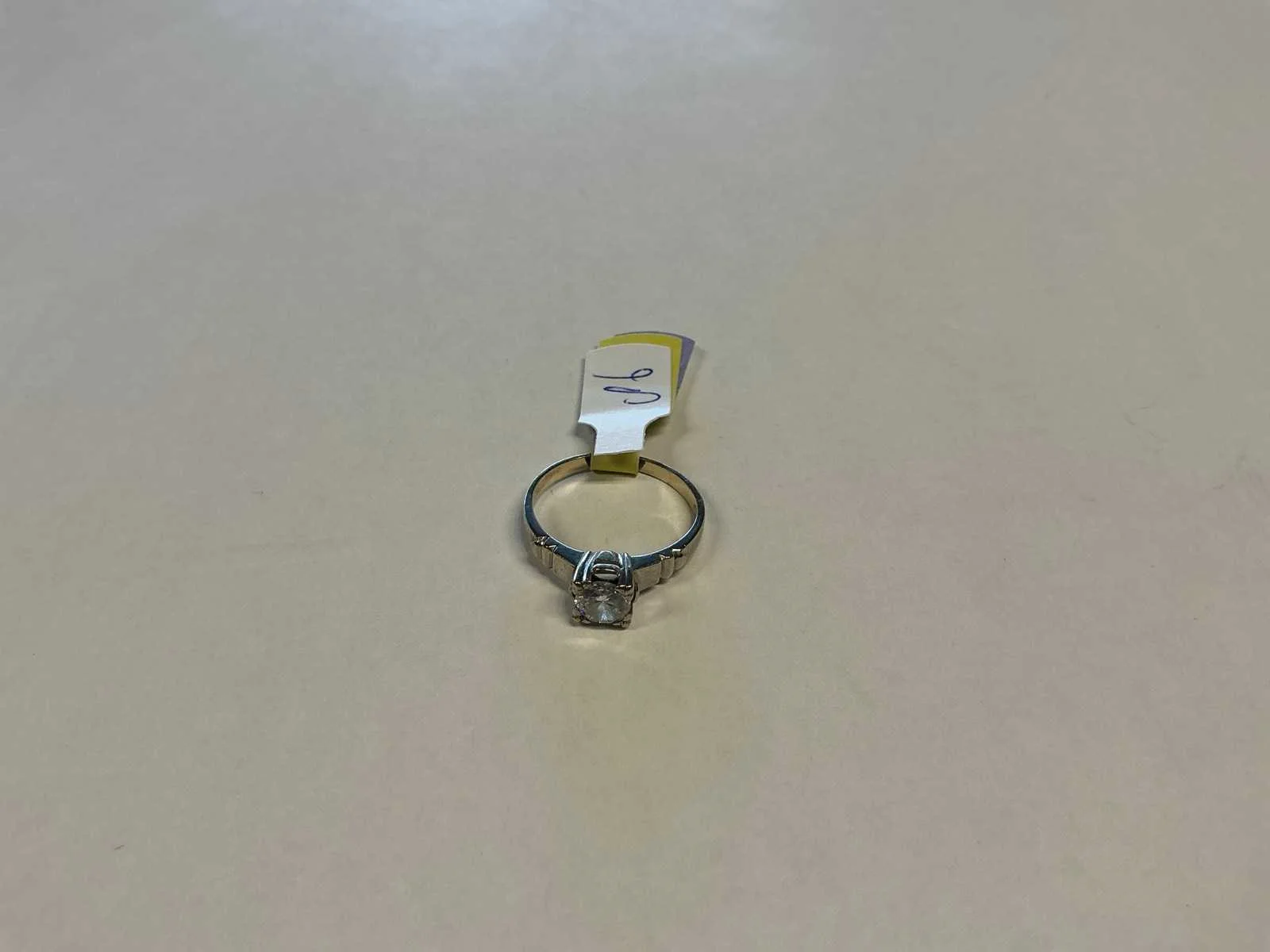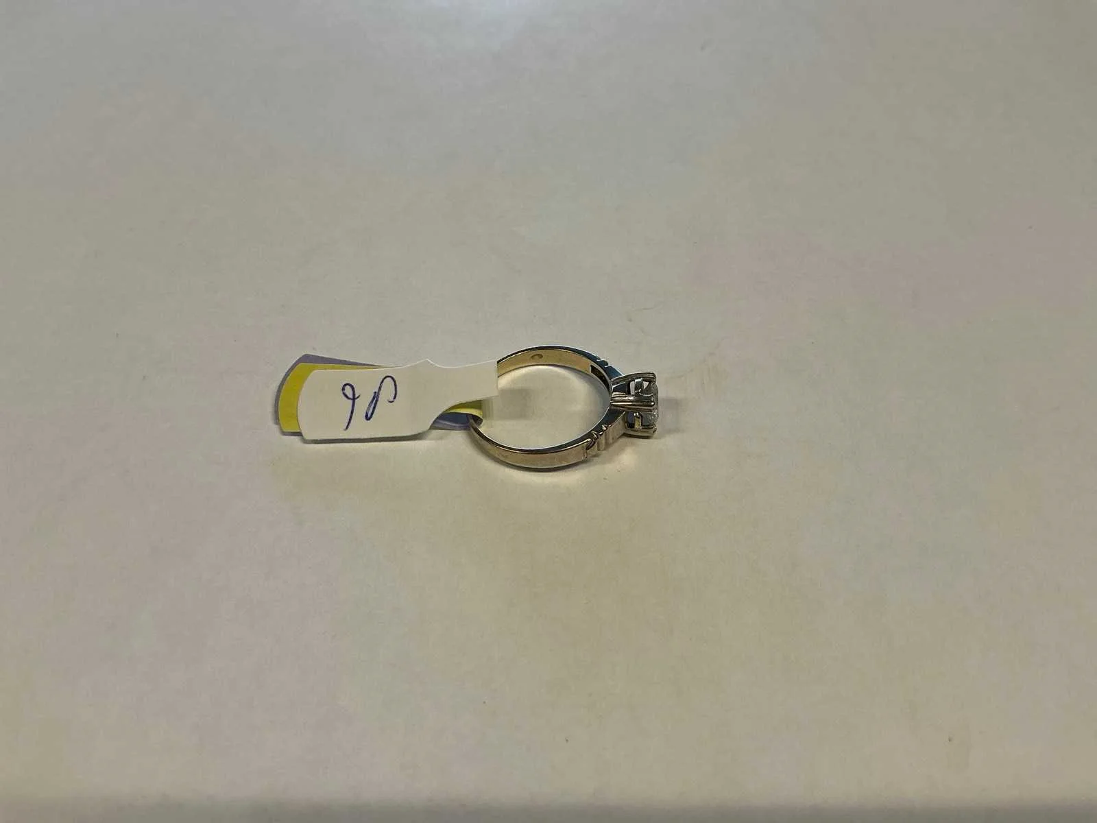 Een 14 karaats (585/000) witgouden solitairring, bezet met een briljant geslepen diamant, ca. 0,45ct., kleur ca. H, zuiverheid ca. pique. Bruto gewicht: 2,1 gram Product type: 14 krt witgouden