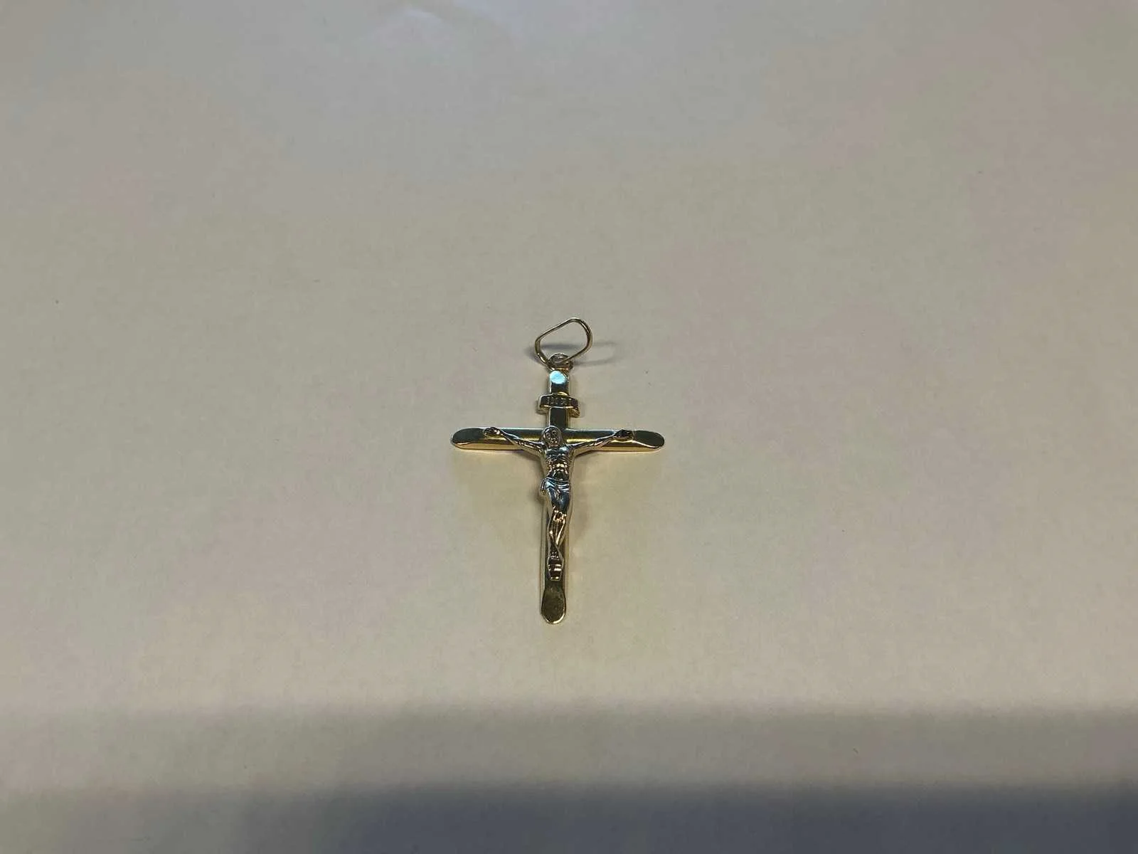 Een 14 karaats (585/000) witgouden rijrijg, bezet met drie briljant geslepen diamanten. Chatons in X-vorm. Bruto gewicht: 2,4 gram. Model: 14 krt witgouden