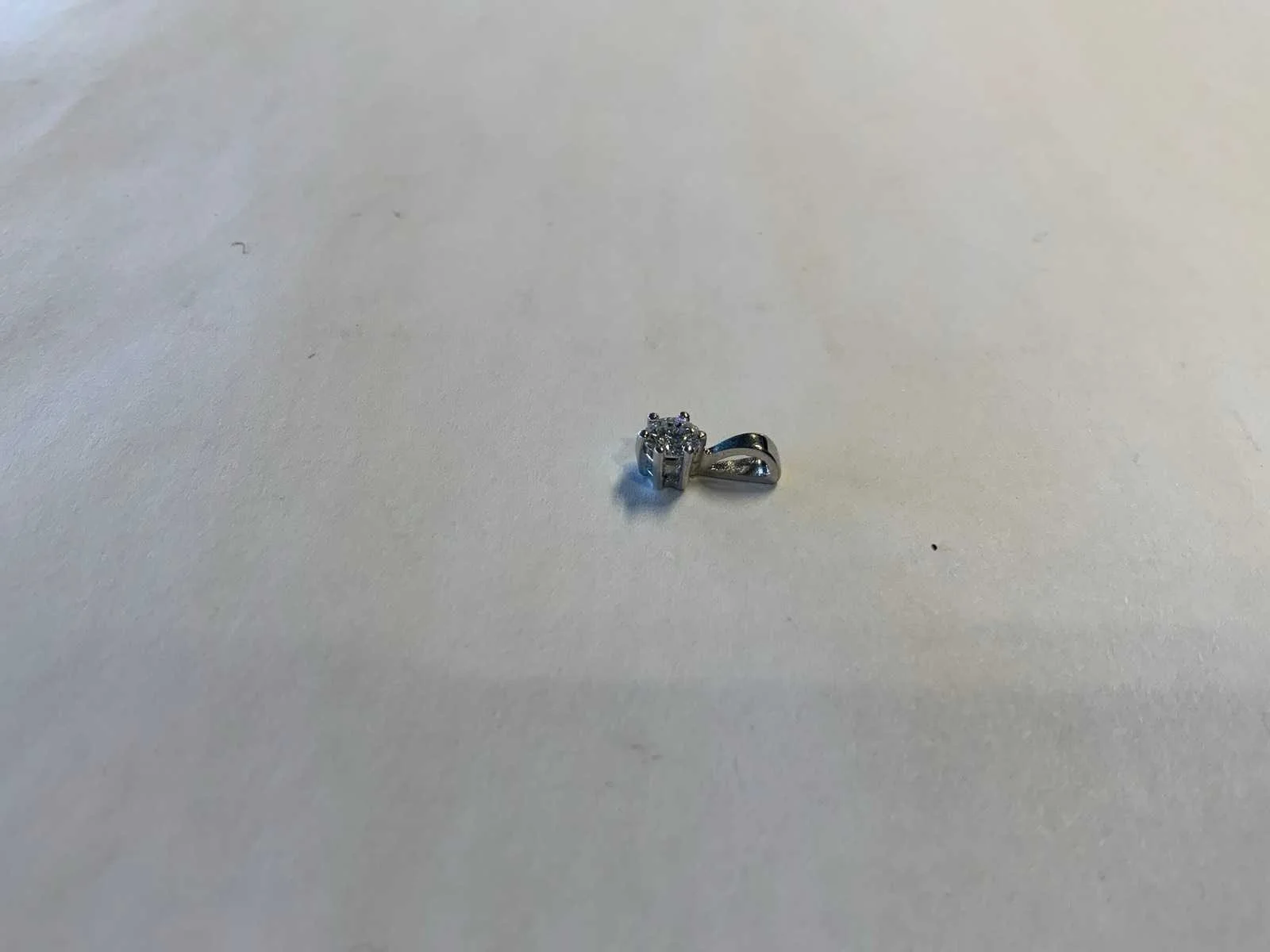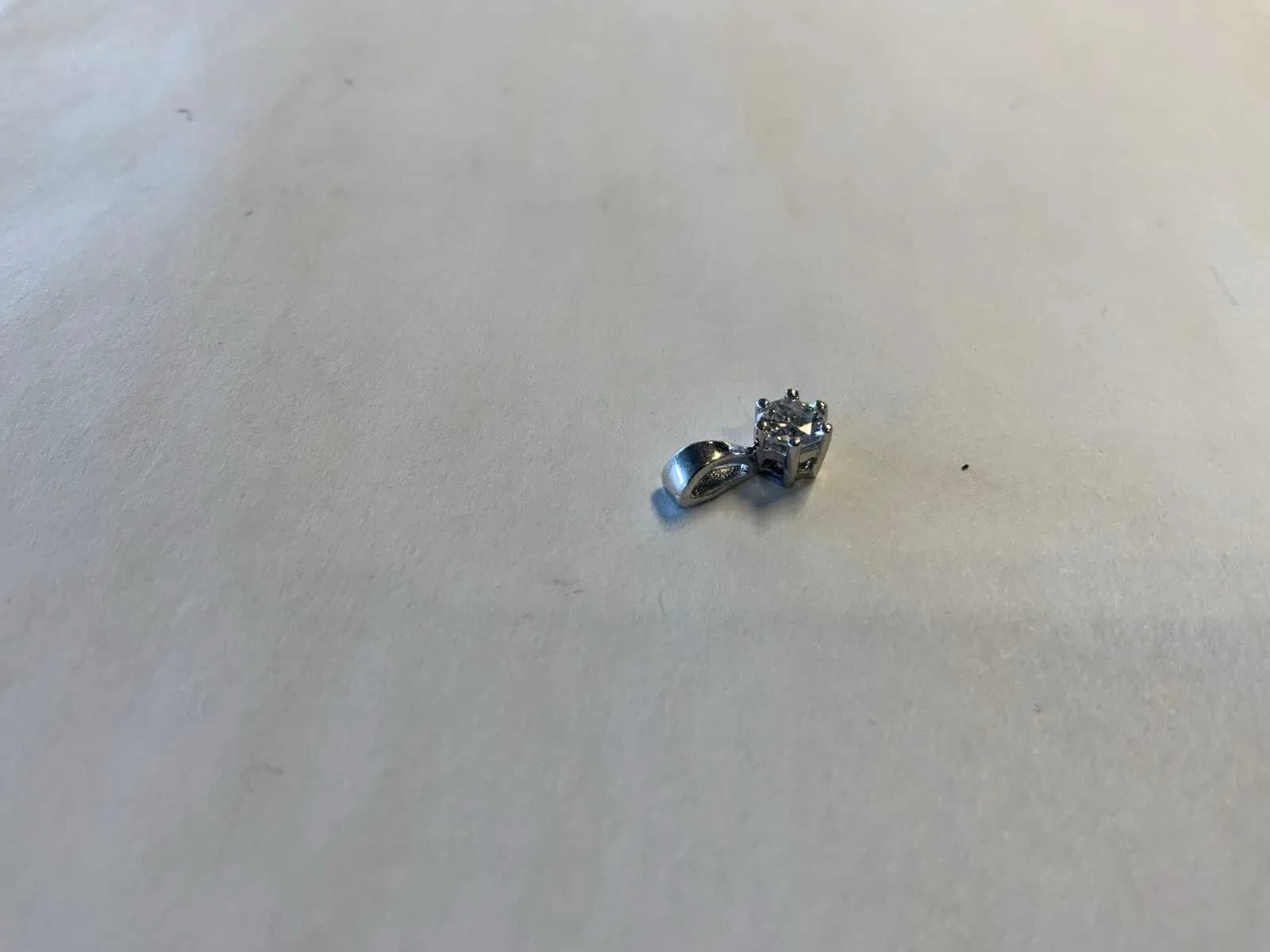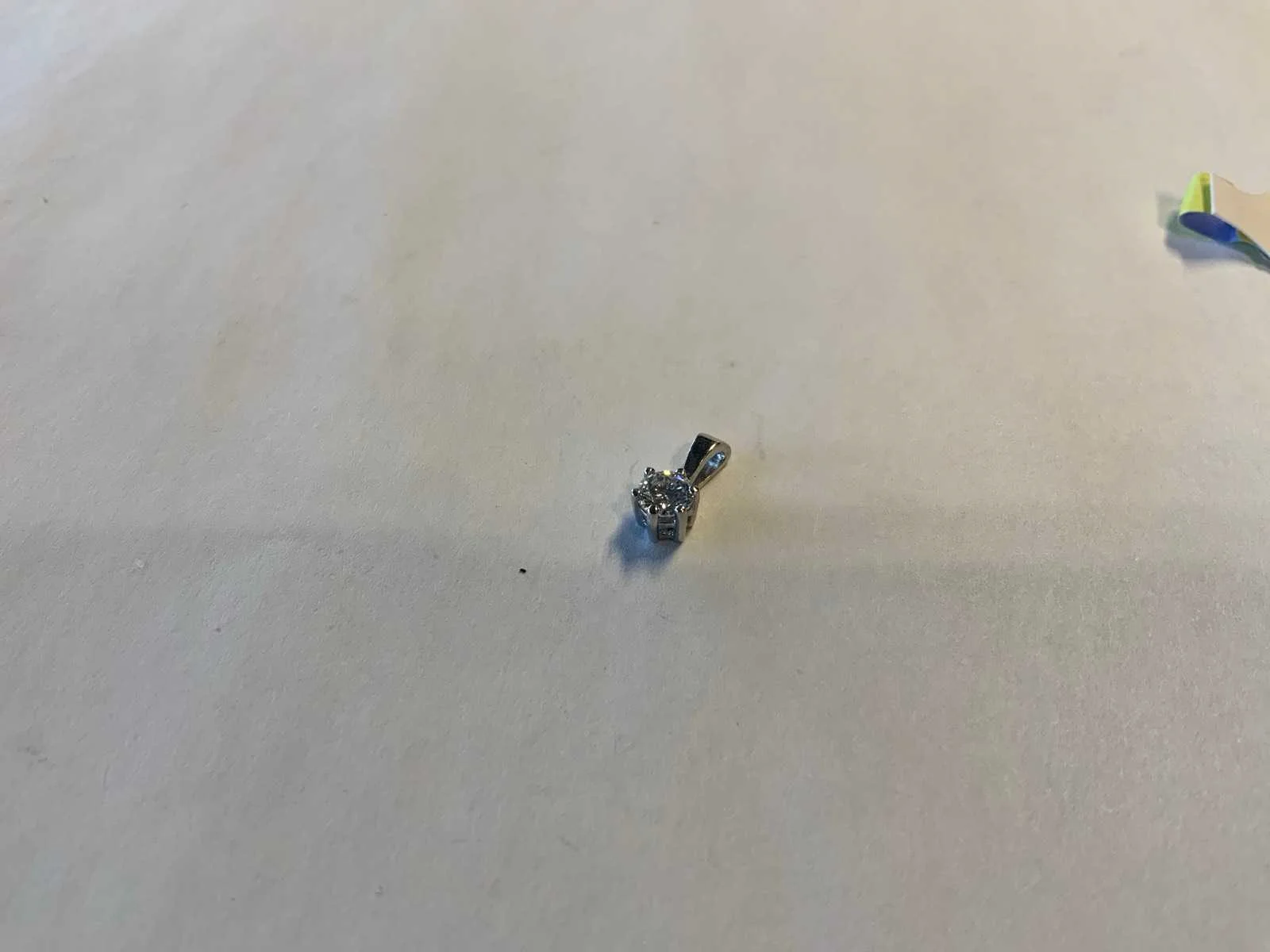 Een 14 karaats (585/000) witgouden solitairhanger, bezet met briljant geslepen diamant, ca. 0,35ct., kleur ca. H, zuiverheid ca. VSI. Bruto gewicht: 0,5 gram.