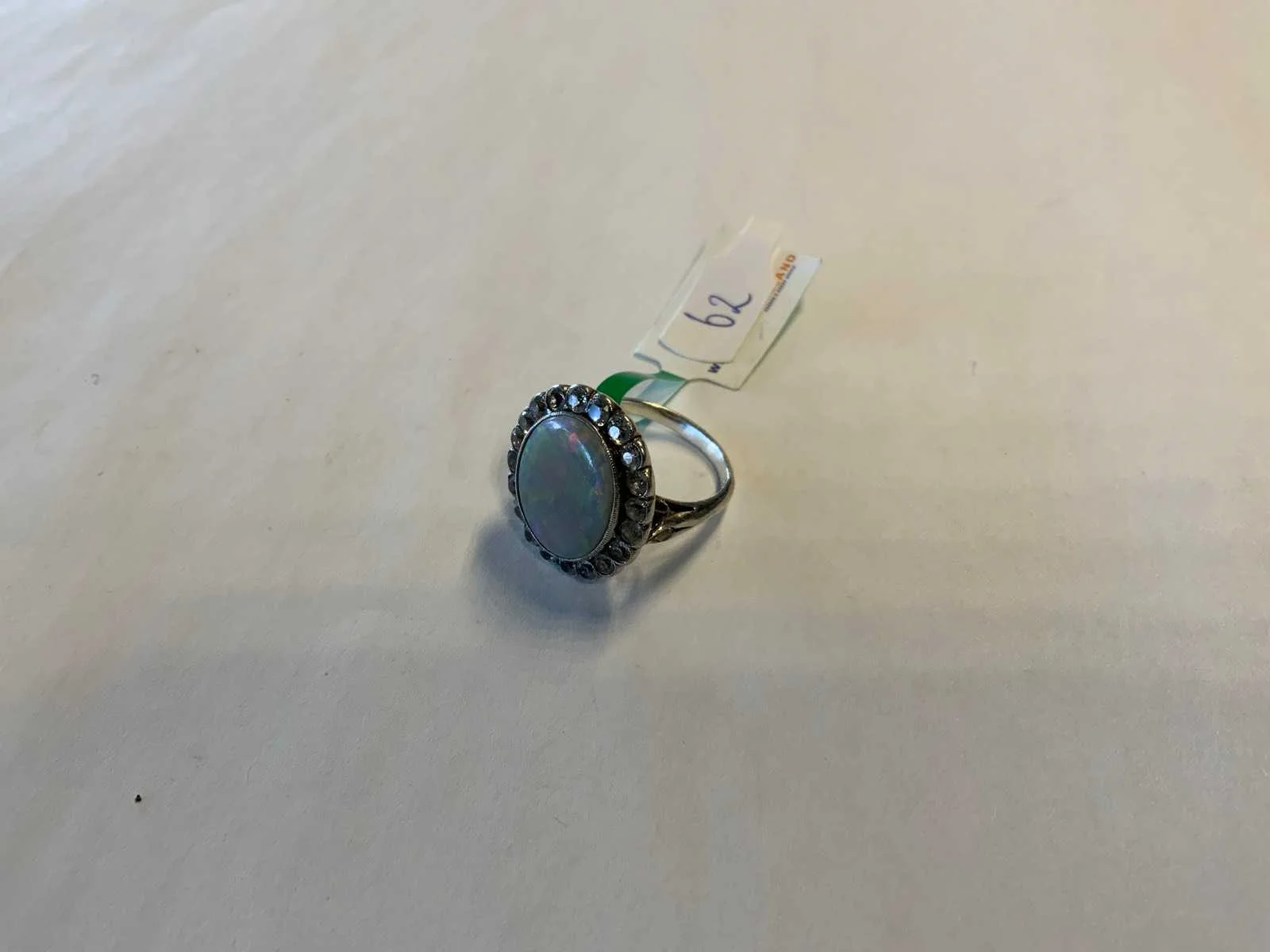 Een zilveren (835/000) entourage ring met imitatie stenen. Bruto gewicht: 5,1 gram.