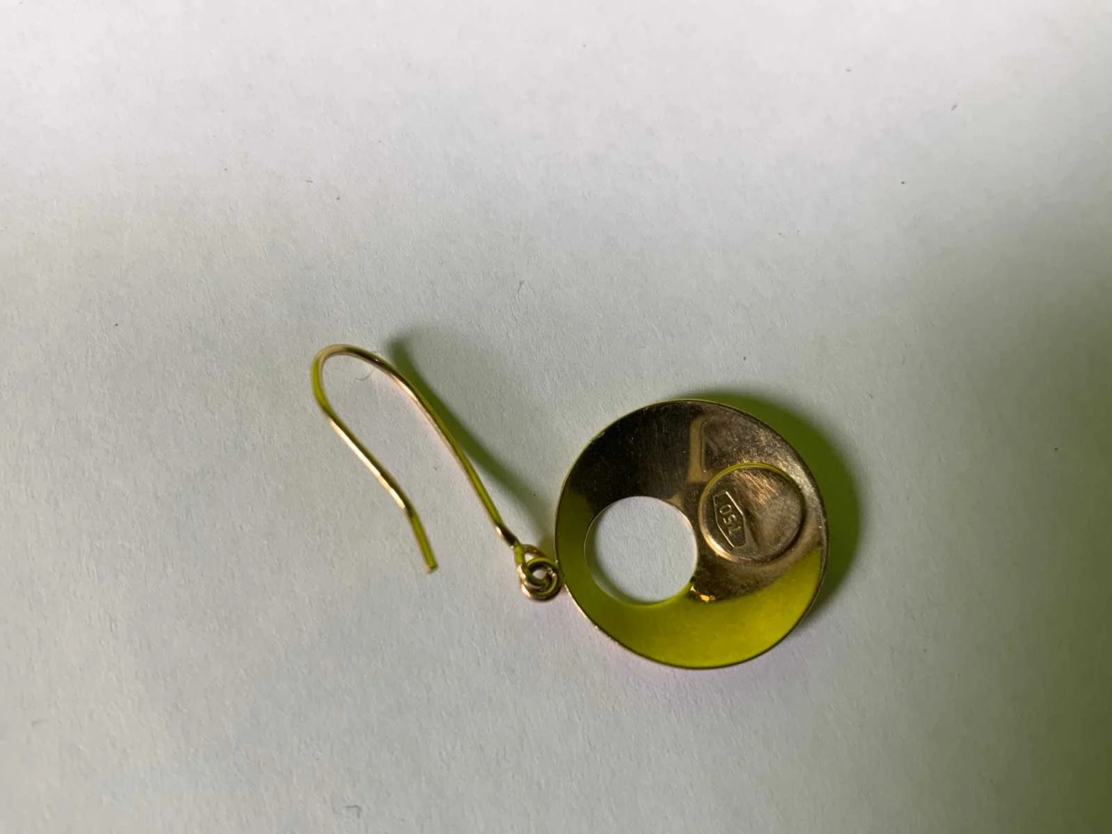 Een 18 karaats (750/000) geelgouden oorhanger. Bruto gewicht: 3,2 gram.