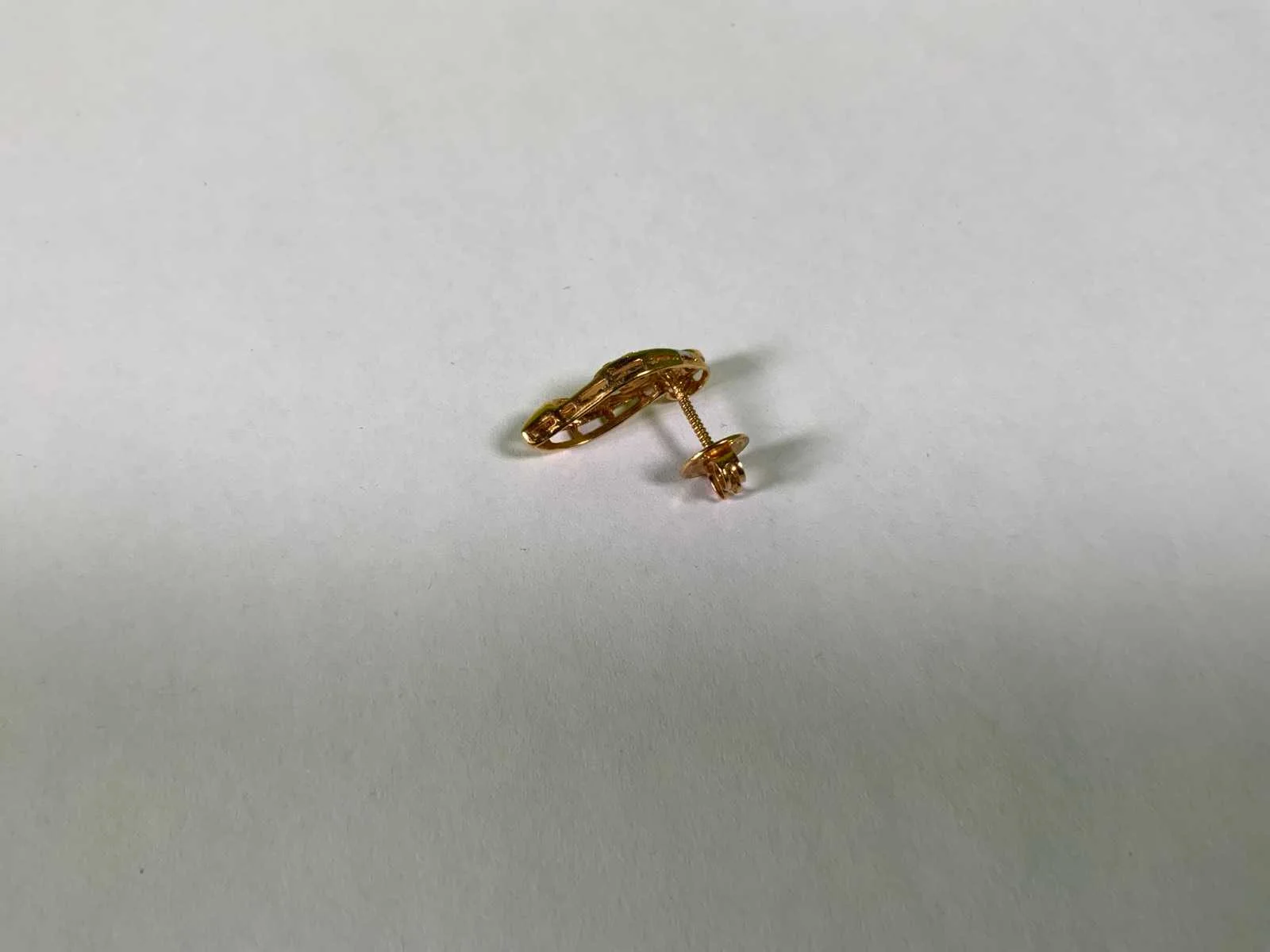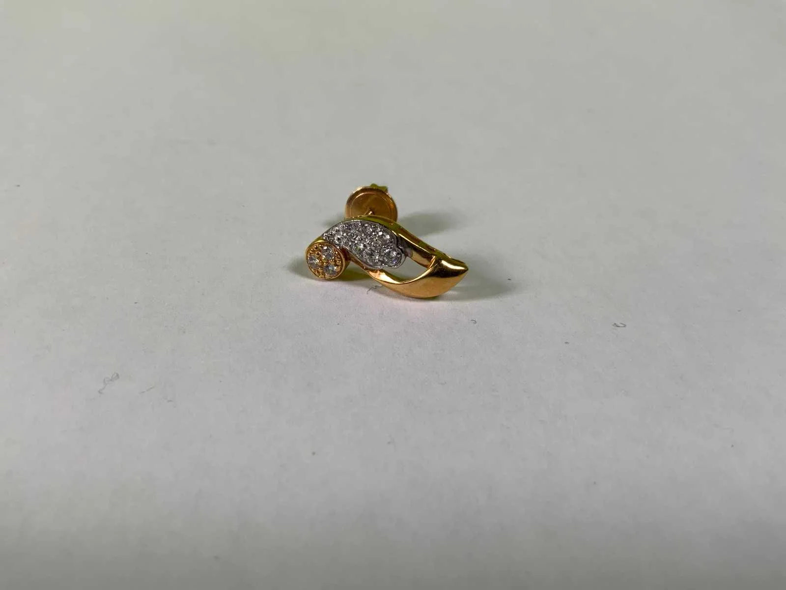 Een enkele 20 karaats (833/000) wit- en geelgouden oorsteker bezet met zirkonia's. Bruto gewicht: 2,1 gram.