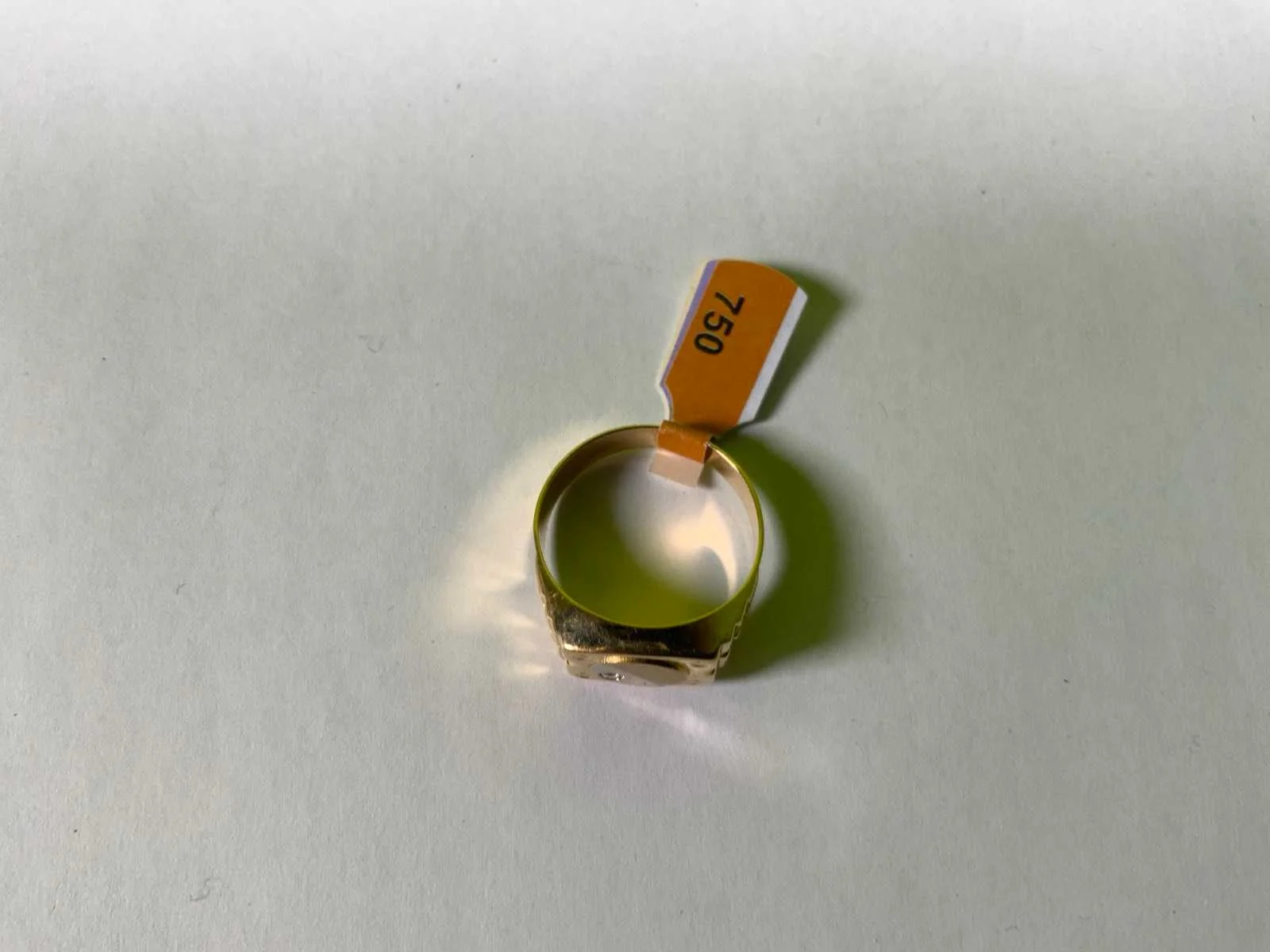 Een 18 karaats (750/000) geelgouden ring, centraal een wit en geelgouden ovaal, bezet met een zirkonia. Bruto gewicht: 5,6 gram.