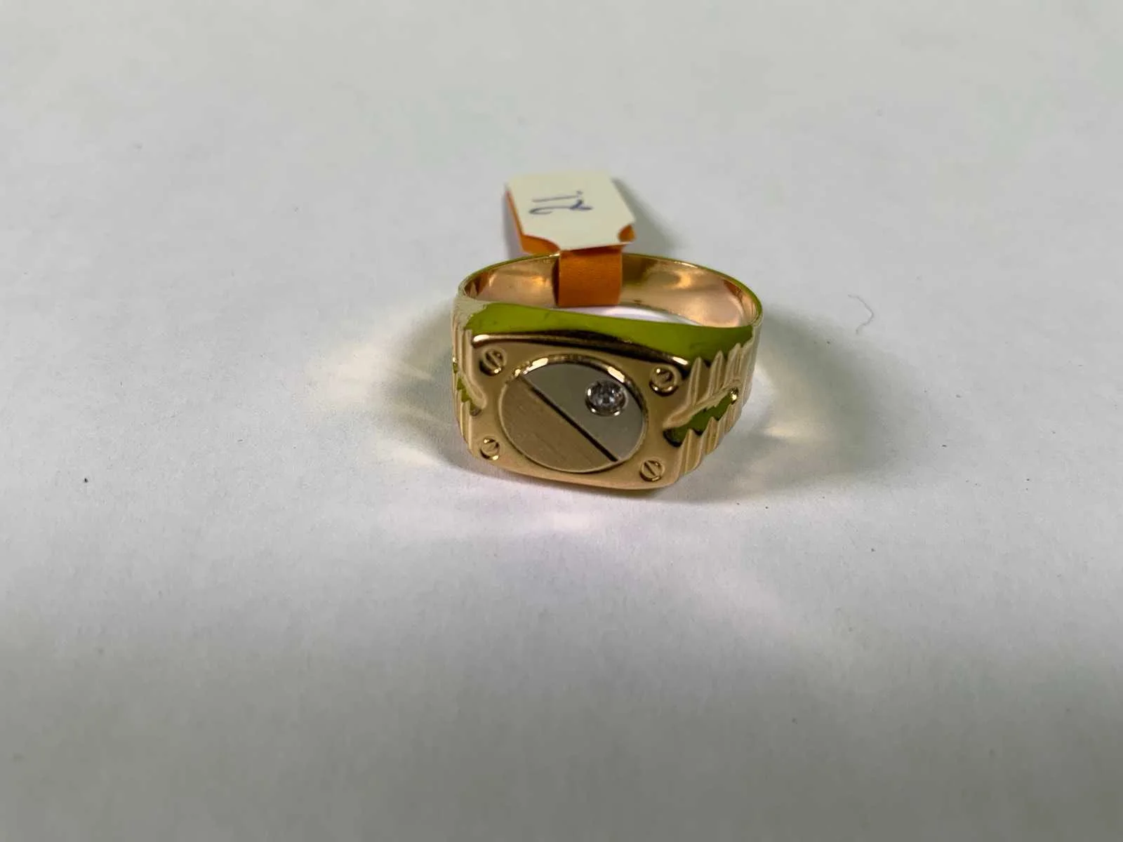 Een 18 karaats (750/000) geelgouden ring, centraal een wit en geelgouden ovaal, bezet met een zirkonia. Bruto gewicht: 5,5 gram.