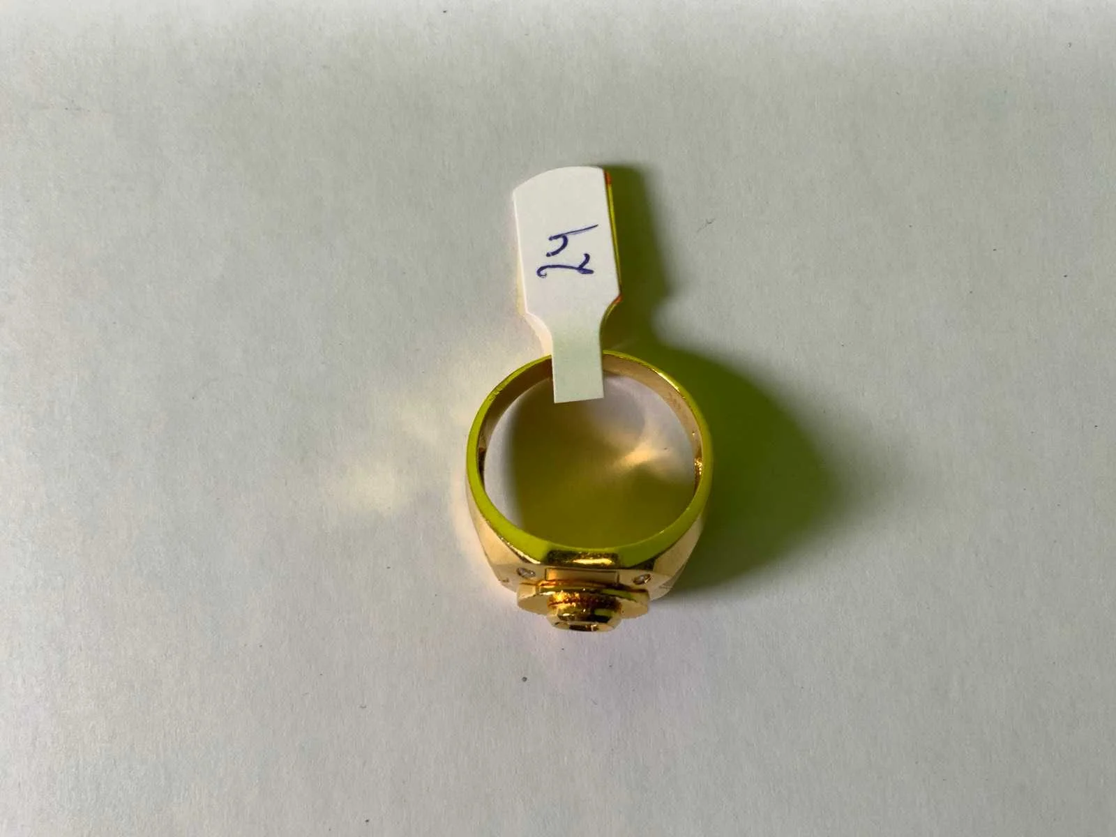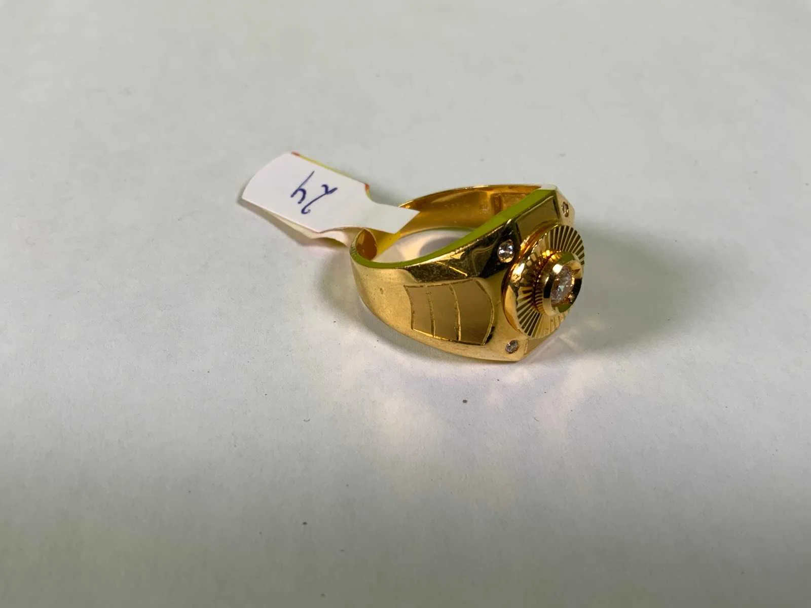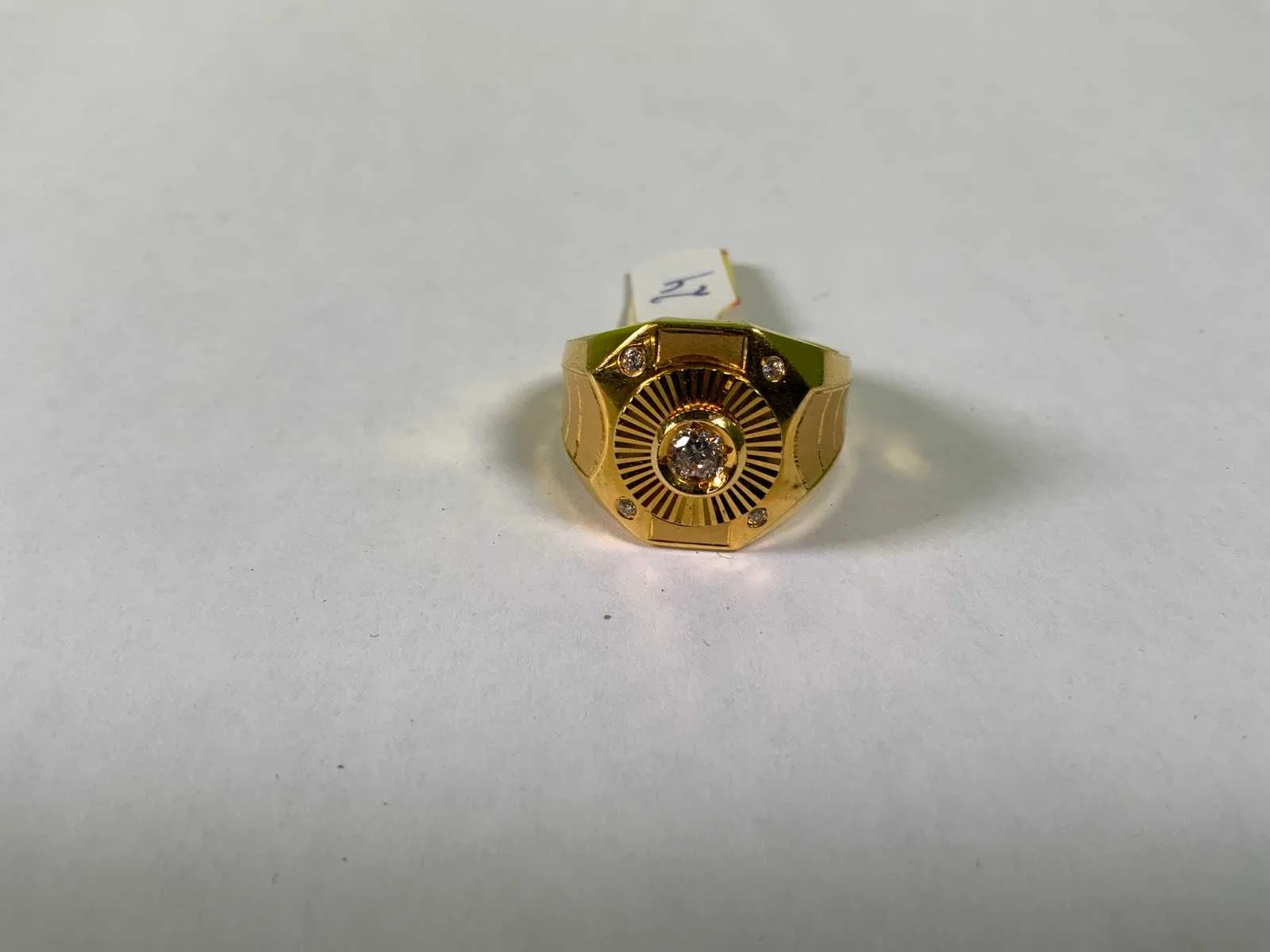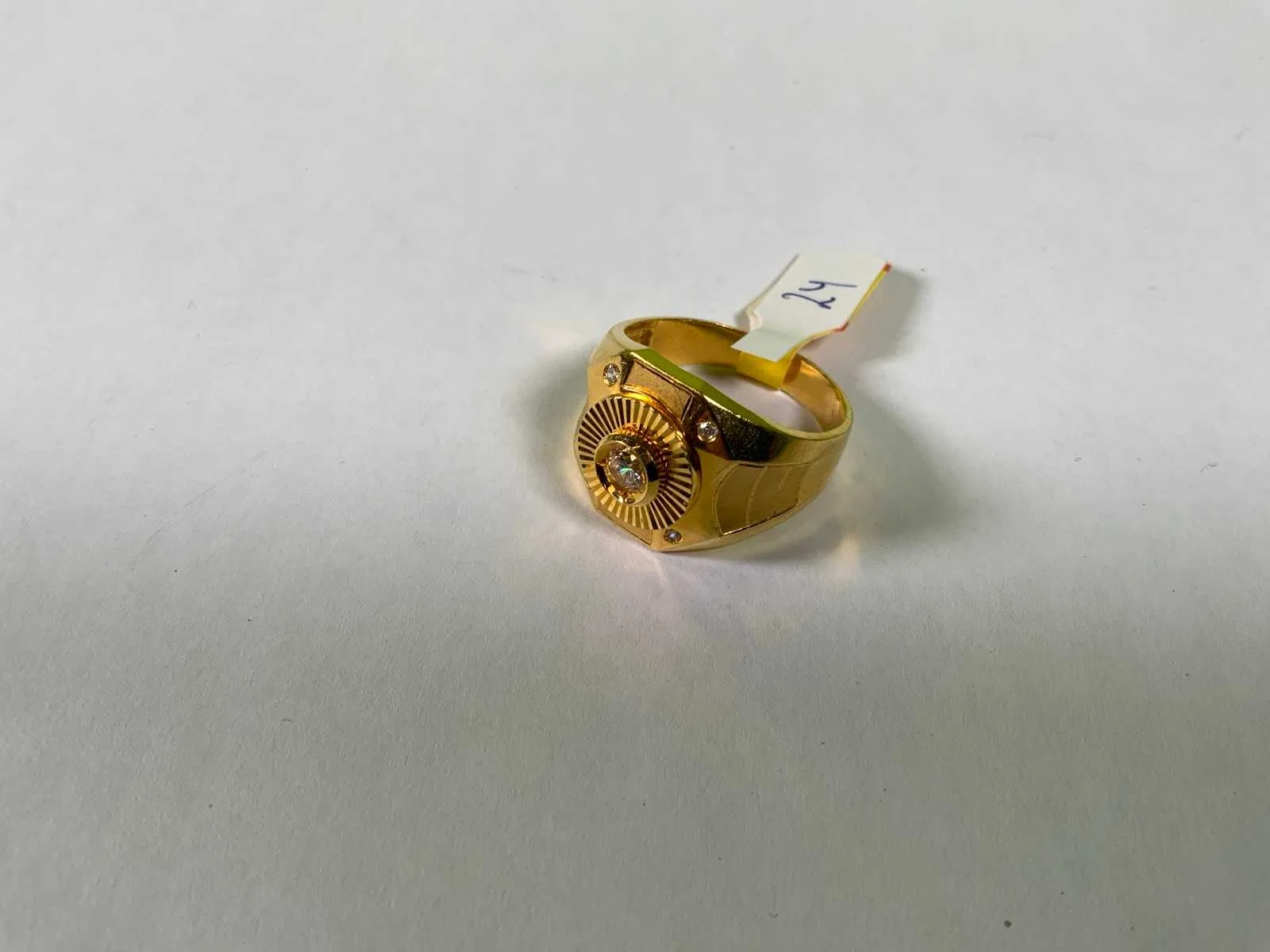 Een 20 karaats (833/000) geelgouden ring, bezet met zirkonia's. Bruto gewicht: 12,0 gram.