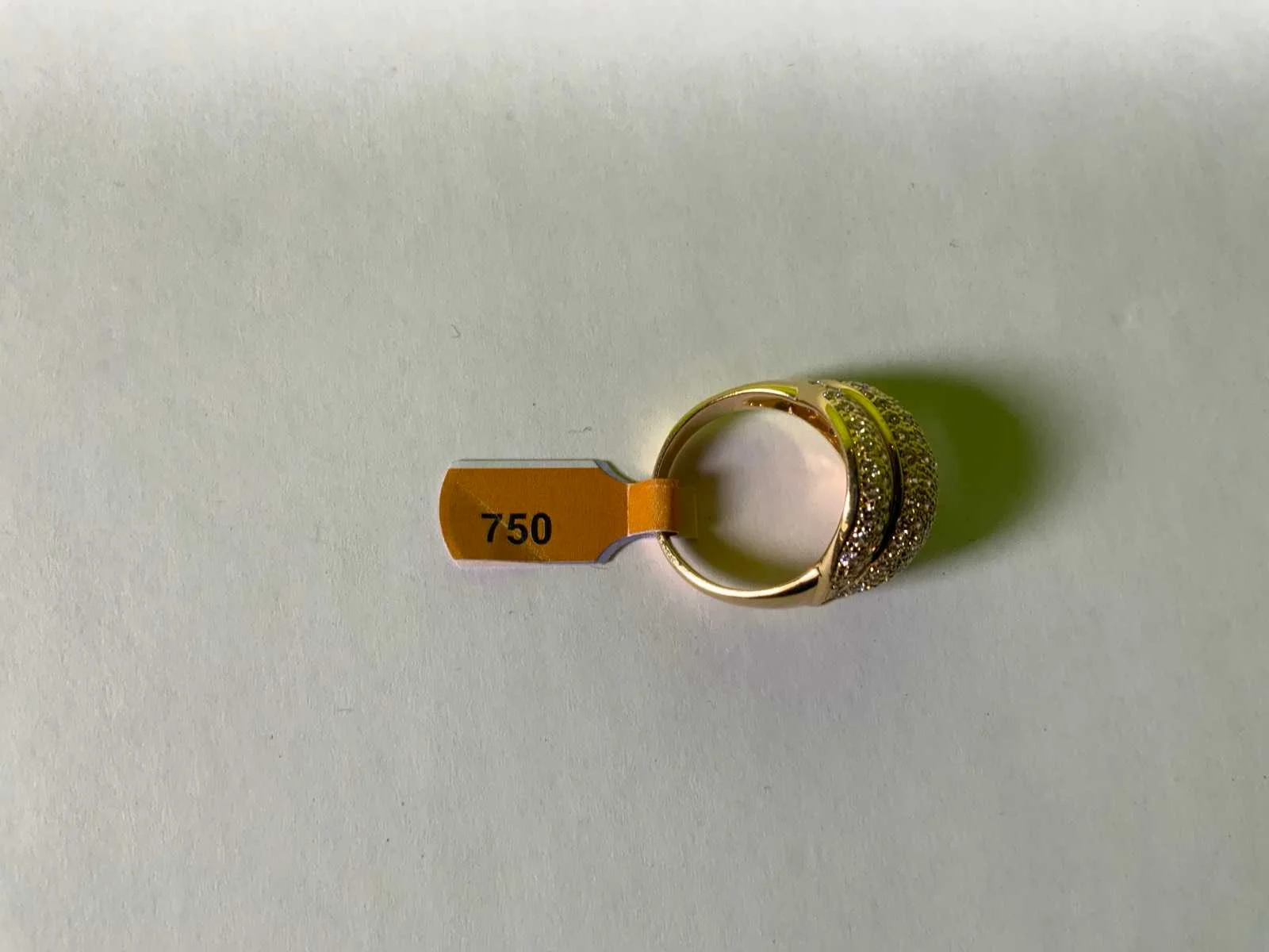 Een 18 karaats (750/000) geelgouden bolle ring, pavé bezet met zirkonia's. Bruto gewicht: 10,2 gram.