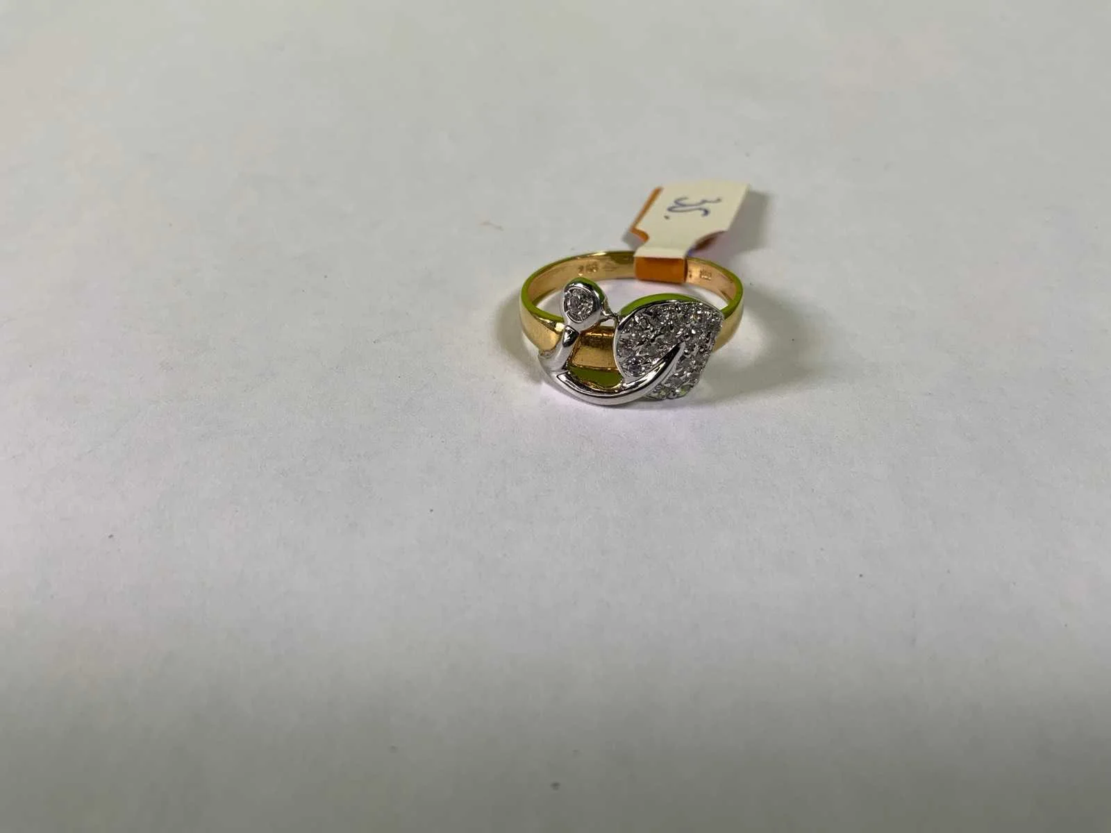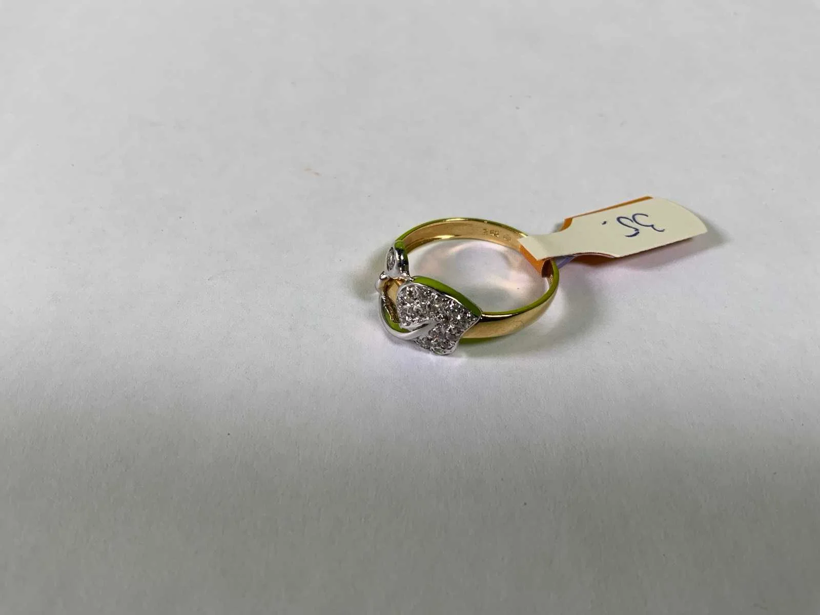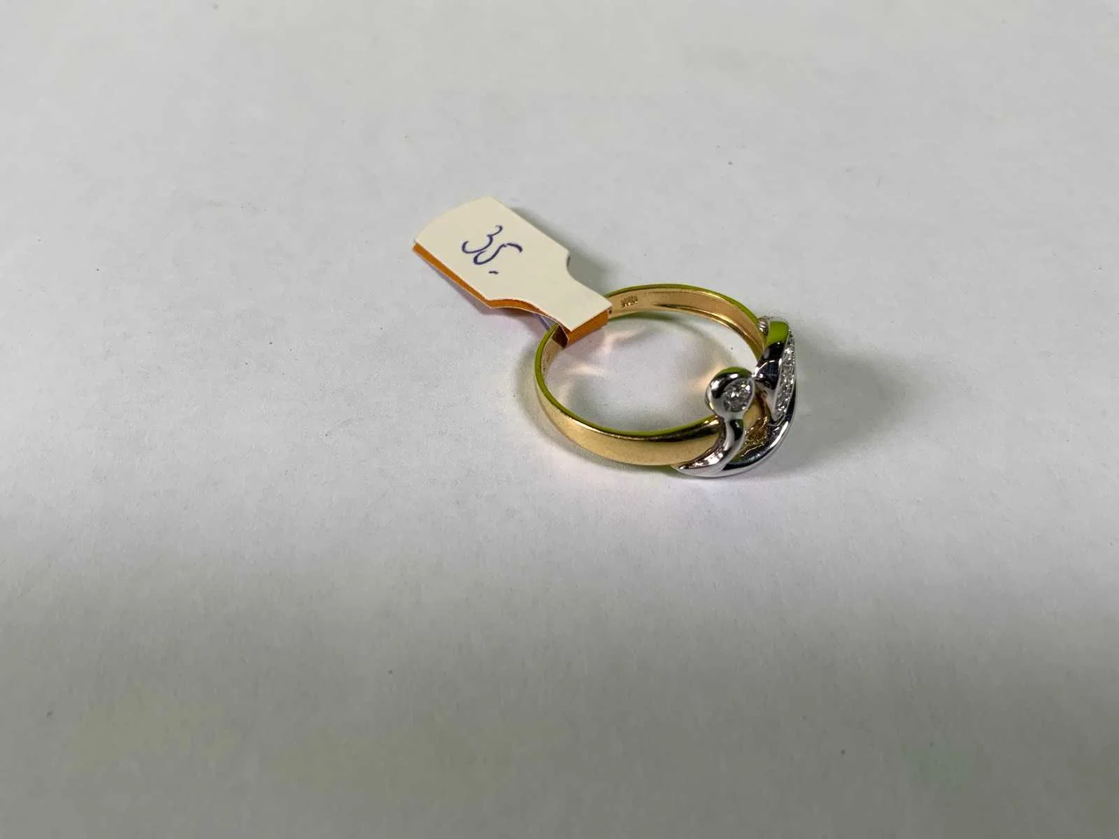 Een 18 karaats (750/000) wit- en geelgouden ring bezet met zirkonia's. Bruto gewicht: 3,3 gram.