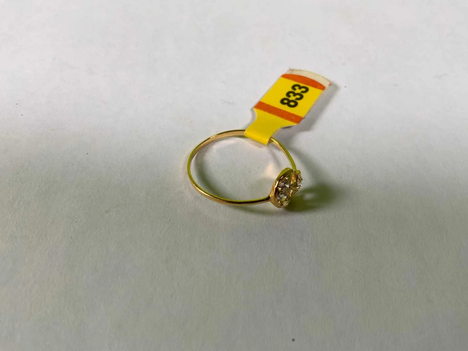 Een 20 karaats (833/000) geelgouden ring met ster en en maan, bezet met zirkonia's. Bruto gewicht: 0,8 gram.