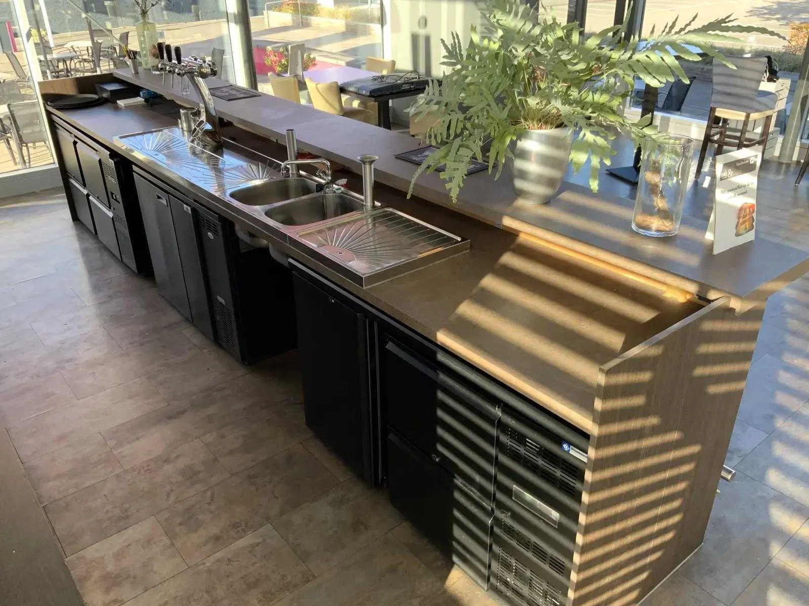 Reeds professioneel gedemonteerd en zorgvuldig getransporteerd naar de afhaallocatie. LET OP! Voor bovenstaande kunnen additionele kosten van toepassing zijn. De bar is gedemonteerd in 3 delen, 2 barstukken en het blad. Exclusief barkoelingen, fustenkoeling en taps. Het spoelblad behoort wel tot de bar. Totale afmeting L: 5100mm Totale afmeting Breedte: 1000mm Totale afmeting Hoogte: 1120mm
