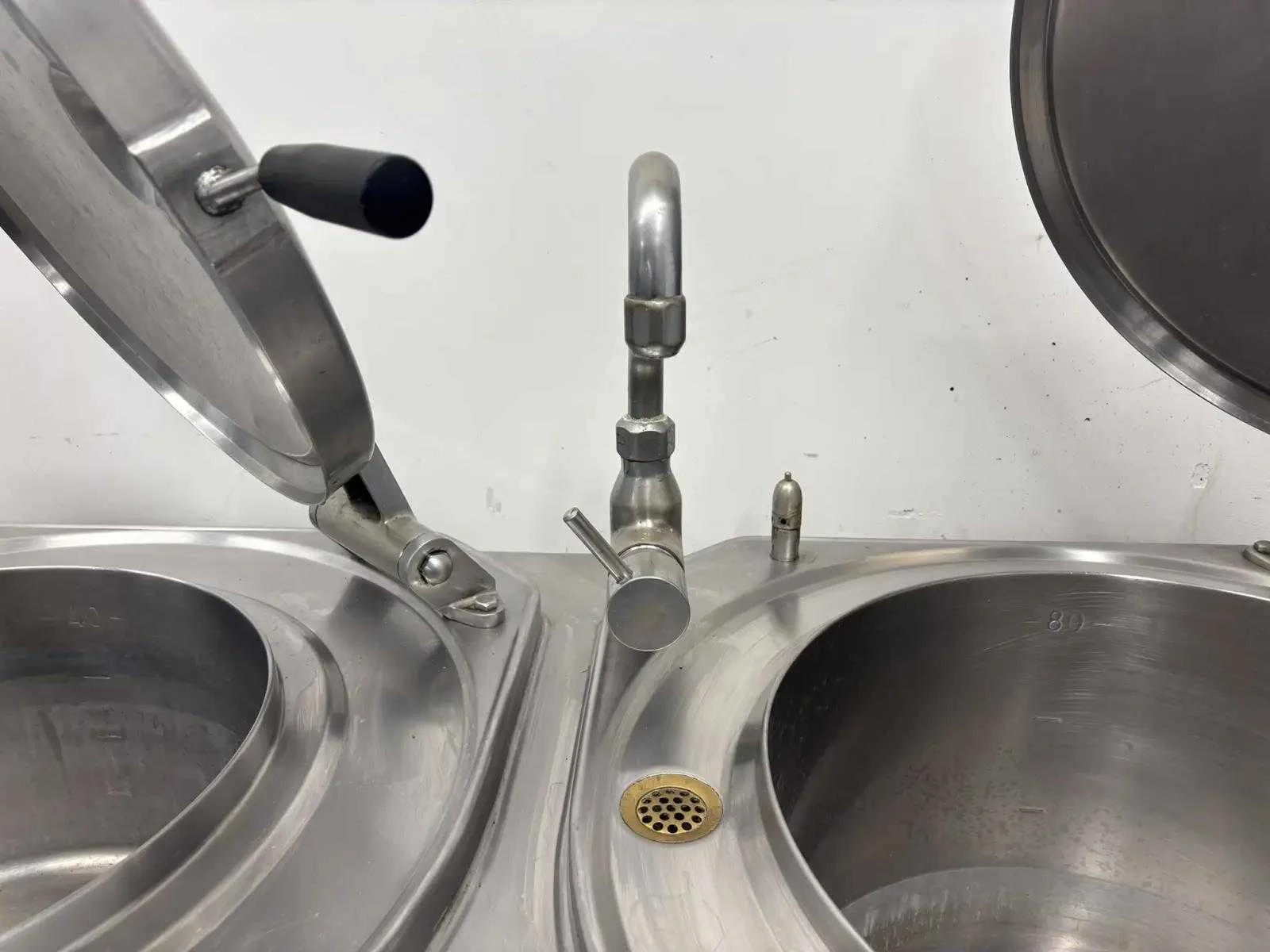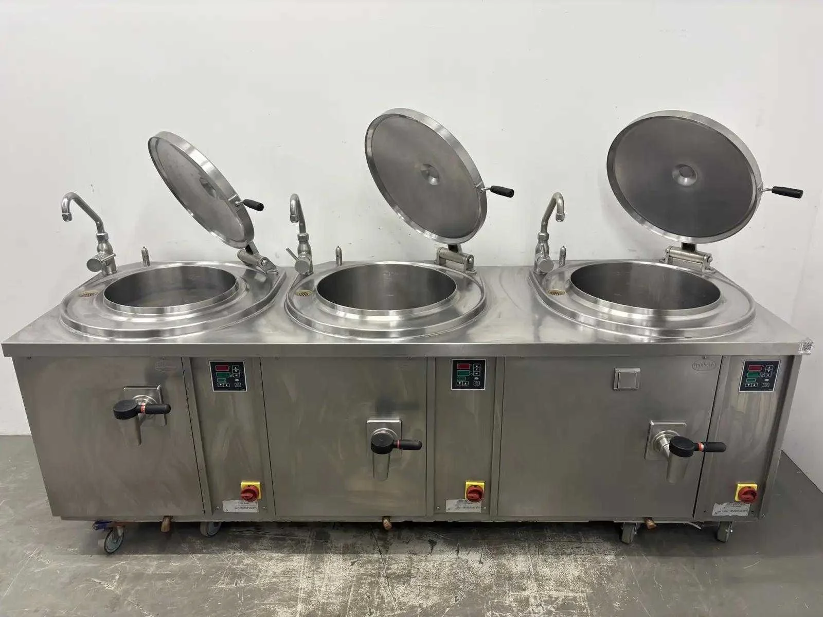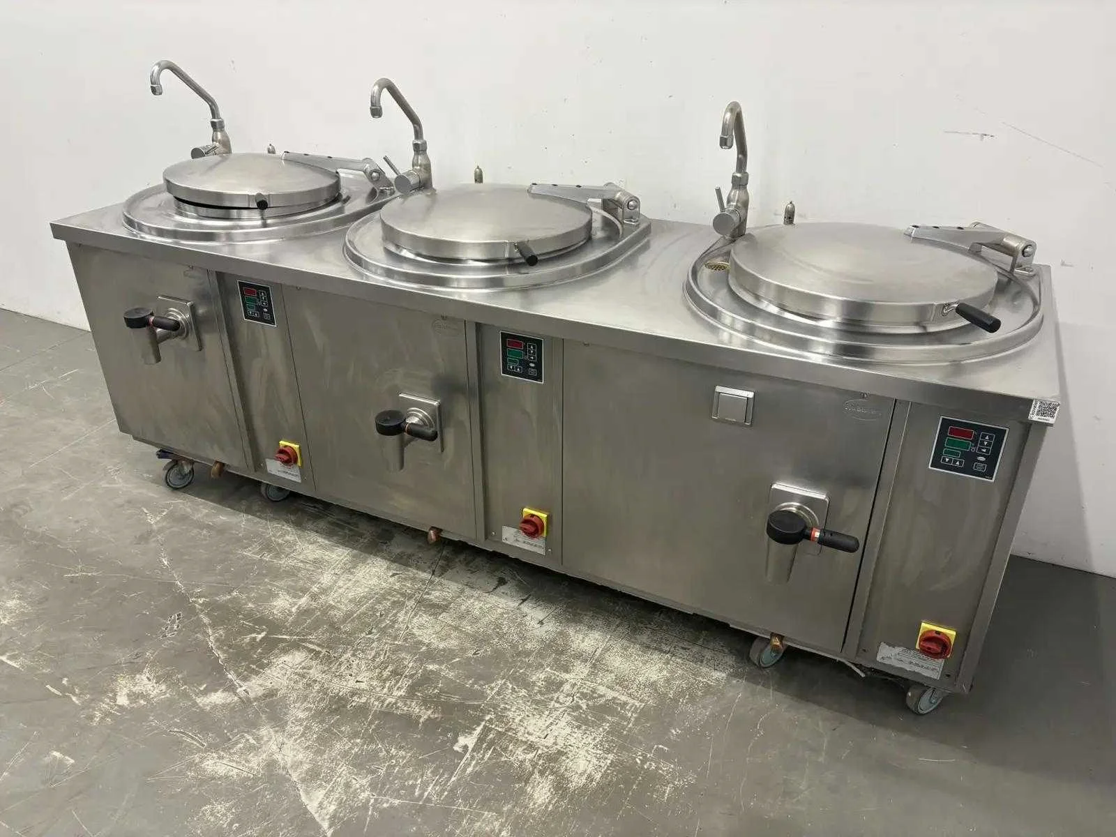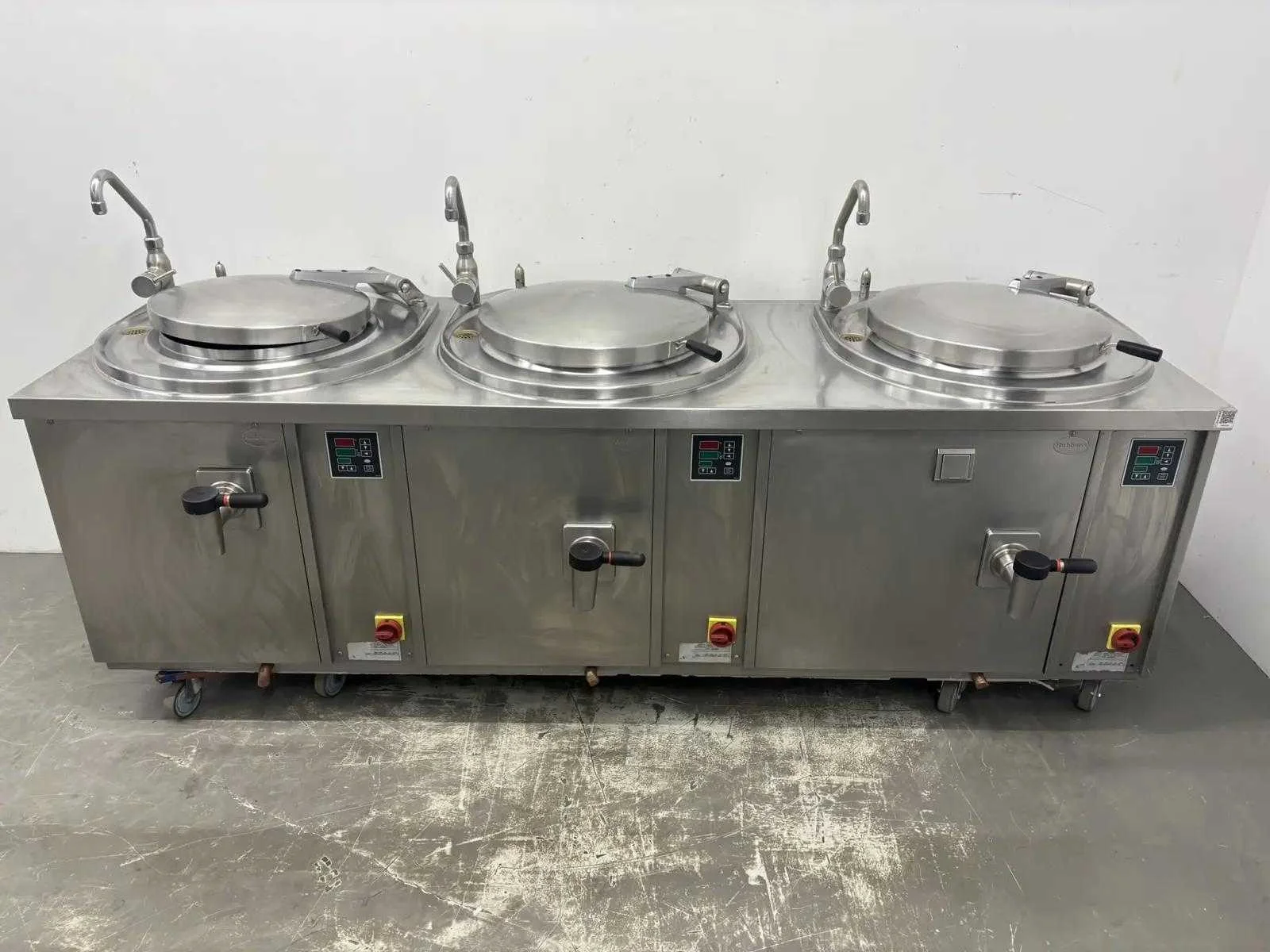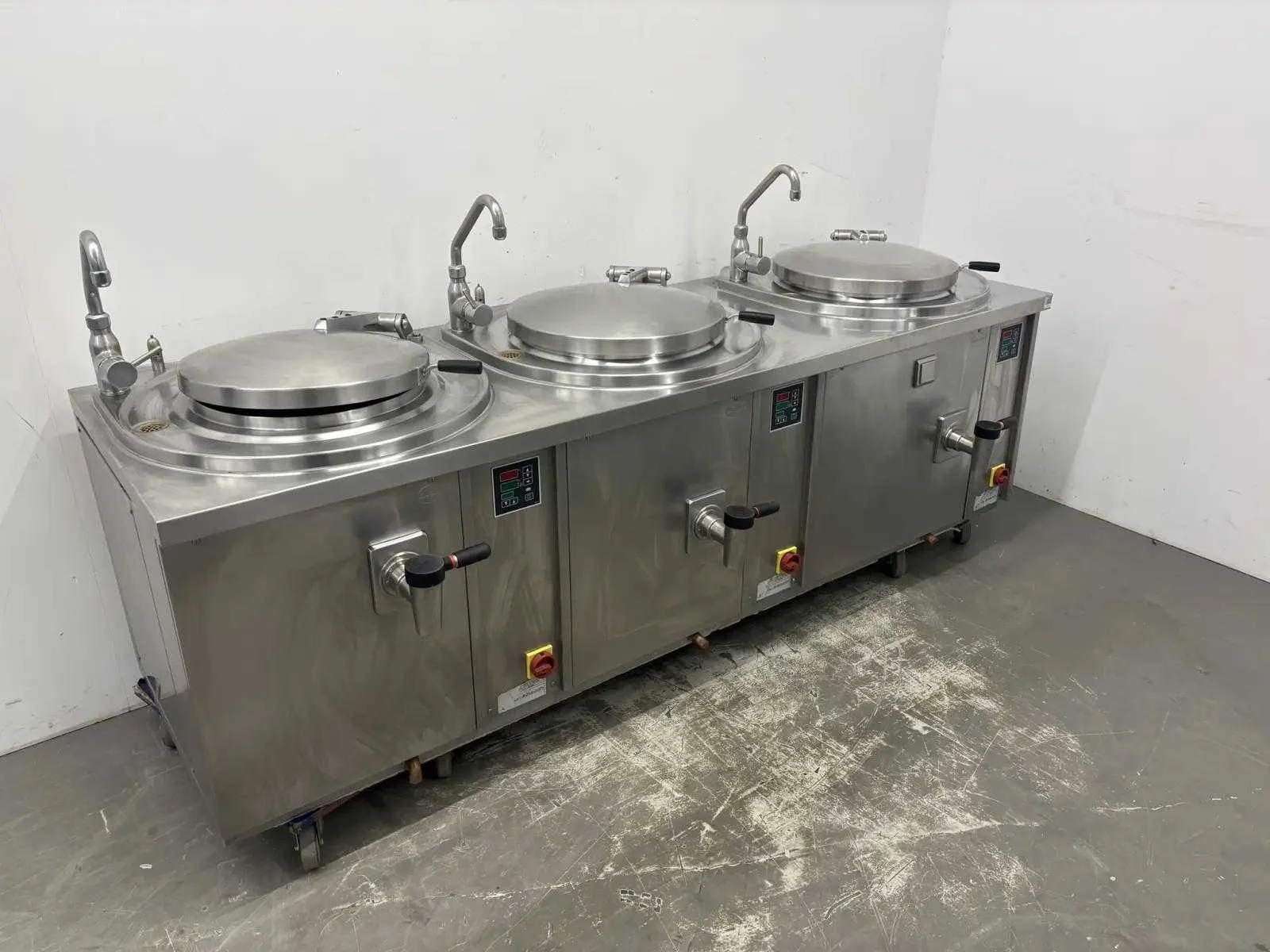 Rubbens kookketel-lijn met 2x 80 liter ketel en 1x 40 liter. Merk: Rubbens Lengte: 255cm Breedte: 80cm Hoogte: 92cm Totale afmeting Breedte: 800mm Totale afmeting L: 2550mm Totale afmeting Hoogte: 920mm Spanning: 400