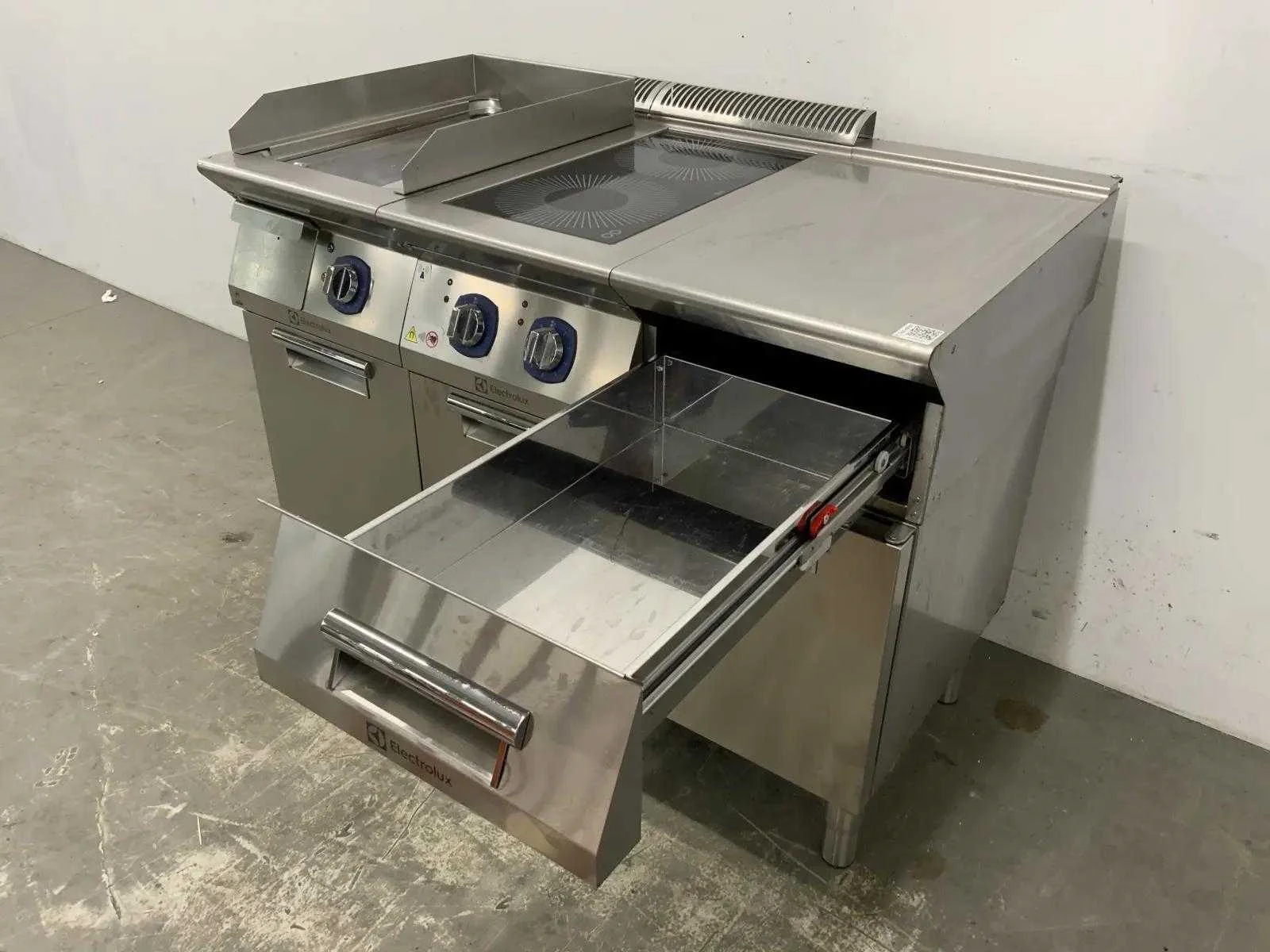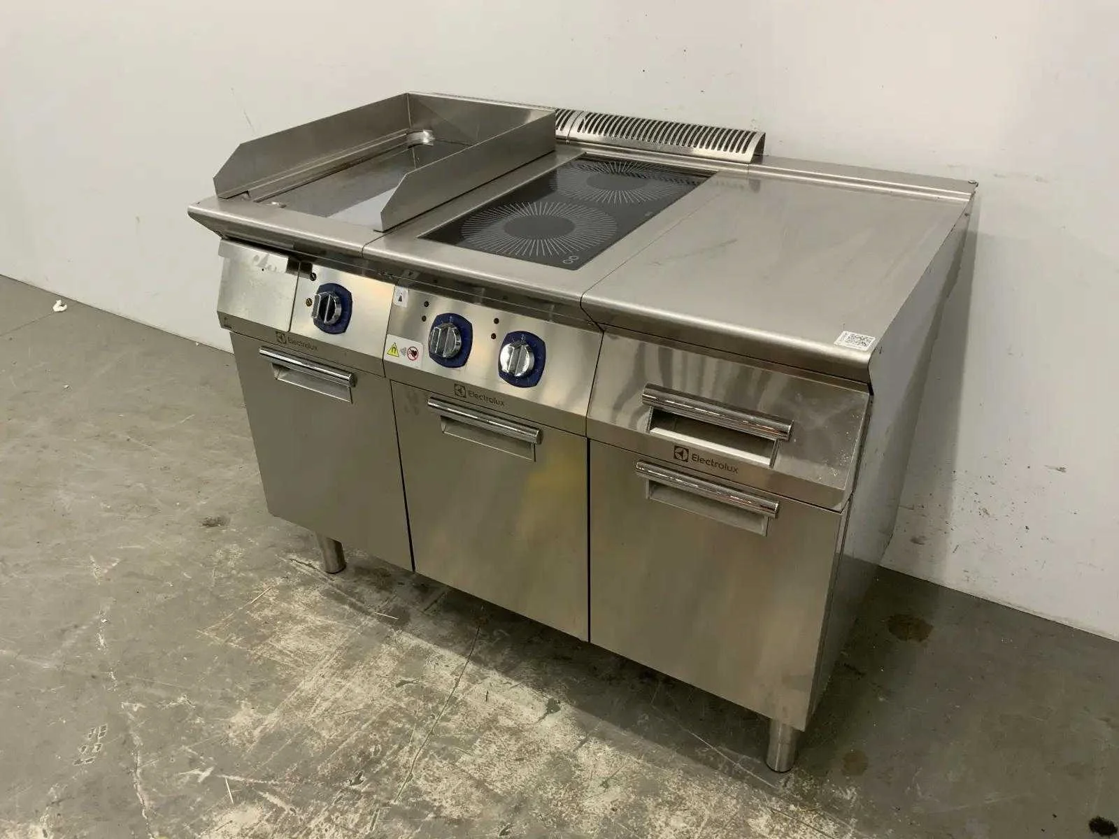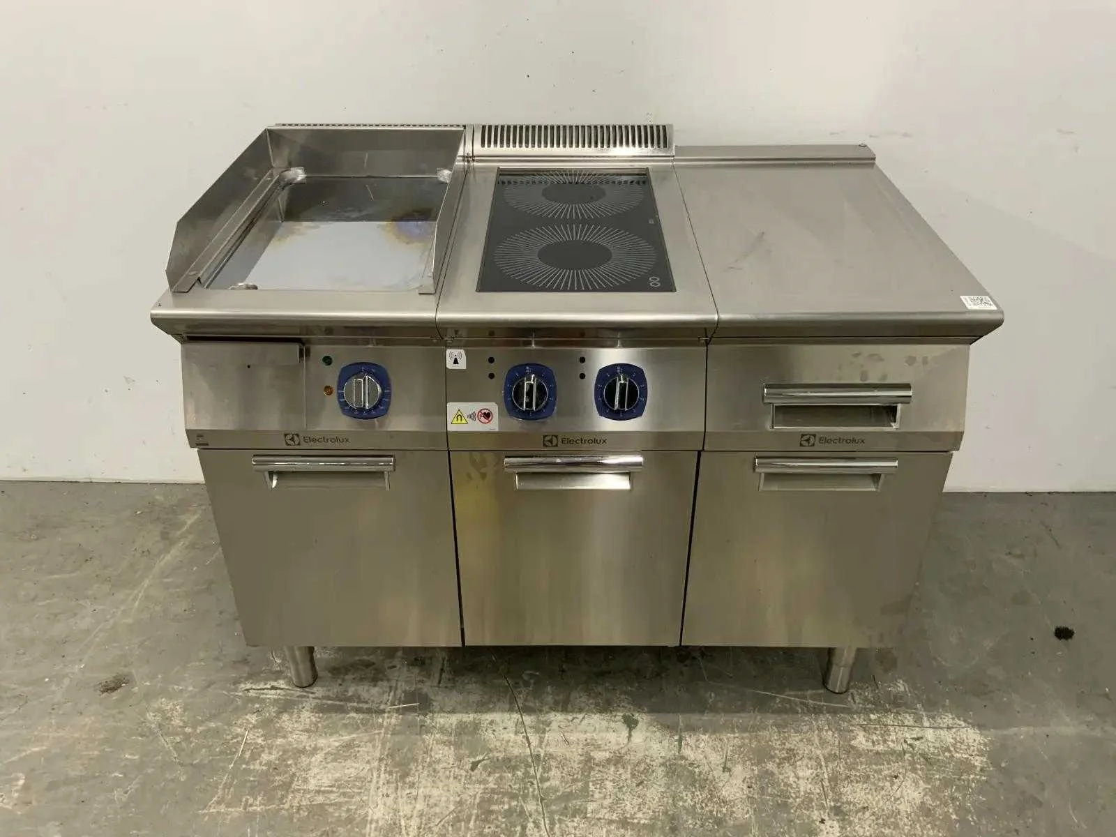 Electrolux kooklijn voorzien van: - Electrolux bakplaat E7FTEDCSI0 2019 - Electrolux 2-pits inductiefornuis E7INED2000 2019 - Electrolux neutrale unit. Merk: Electrolux Type: E7FTEDCSI0/E7INED2000 Aansluiting: 400V Totale afmeting L: 1200mm Totale afmeting Breedte: 700mm Totale afmeting Hoogte: 900mm