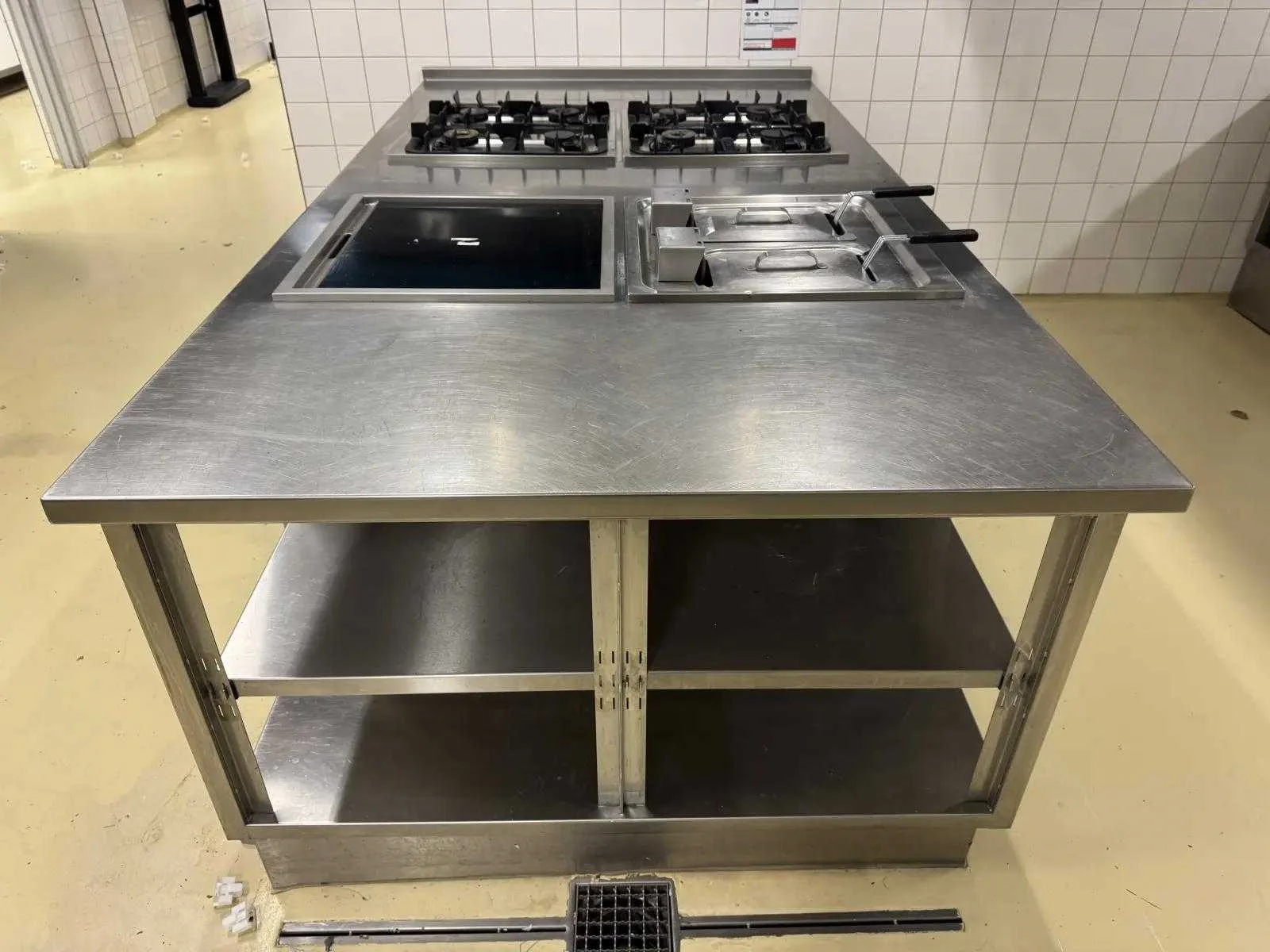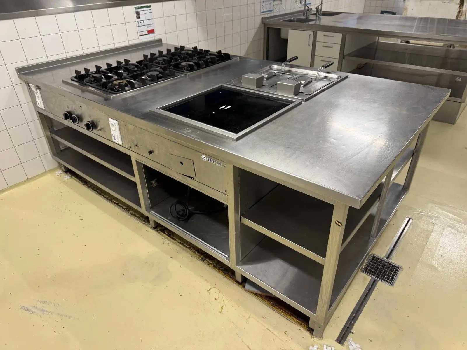 V.v. 8 gaspitten, dubbele friteuse en keramische bakplaat. Reeds professioneel gedemonteerd en zorgvuldig getransporteerd naar de afhaallocatie. LET OP! Voor bovenstaande kunnen additionele kosten van toepassing zijn. Lengte: 265cm Breedte: 140cm Hoogte: 90cm Totale afmeting Breedte: 1400mm Totale afmeting L: 2650mm Totale afmeting Hoogte: 900mm