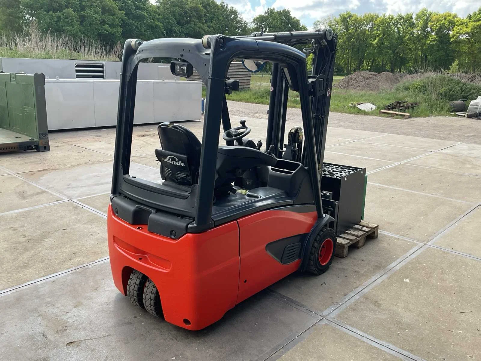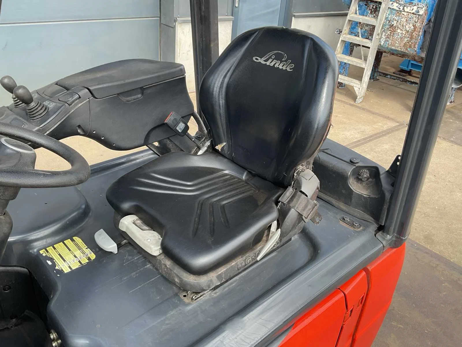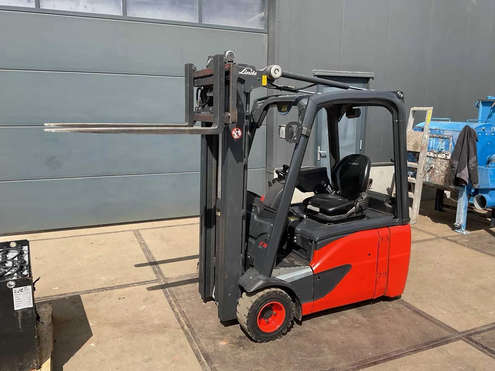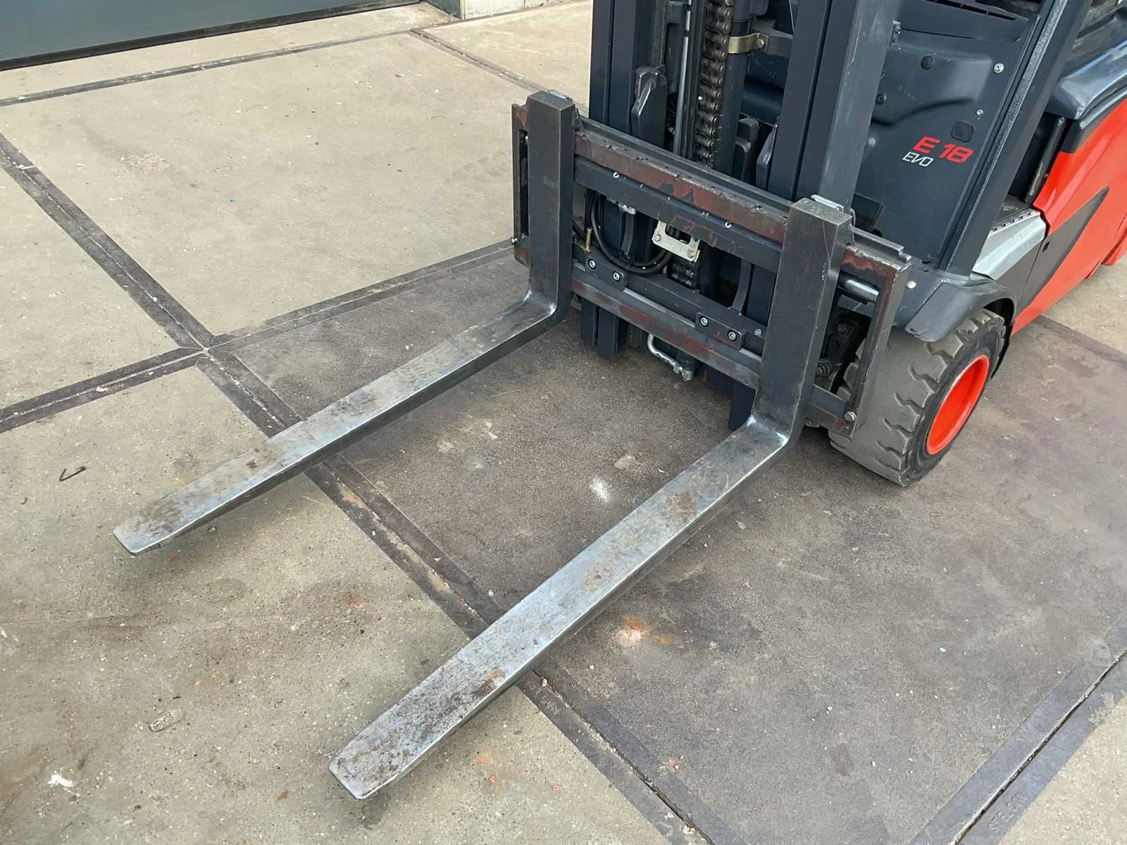 Voorzien van. werkverlichting; Blue spot; wissel batterij; lader. Merk: Linde Type: E18-02 Bouwjaar: 2015 Serienummer: H2X386F05278 Brandstof: Elektrisch Mast: Triple Soort band: Volrubber banden Accu lader: true Free-lift: true Side-shift: true Triple mast: true Hefvermogen: 1800kg Lepellengte: 1100mm Hefhoogte: 4650mm Vol rubber banden: true Minimale doorrijhoogte: 2100mm Totale afmeting L: 3100mm Totale afmeting Breedte: 1150mm Totale afmeting Hoogte: 2100mm