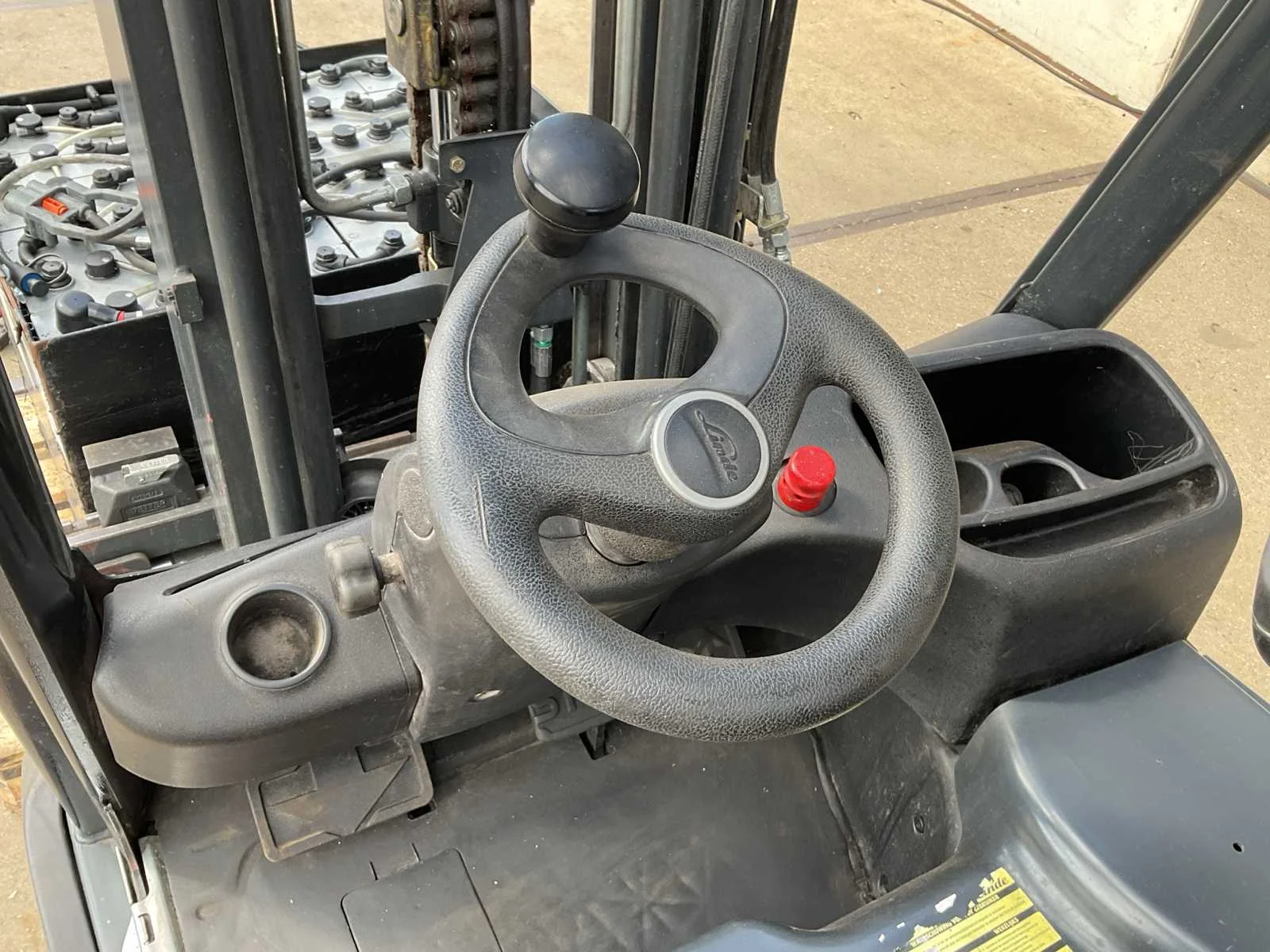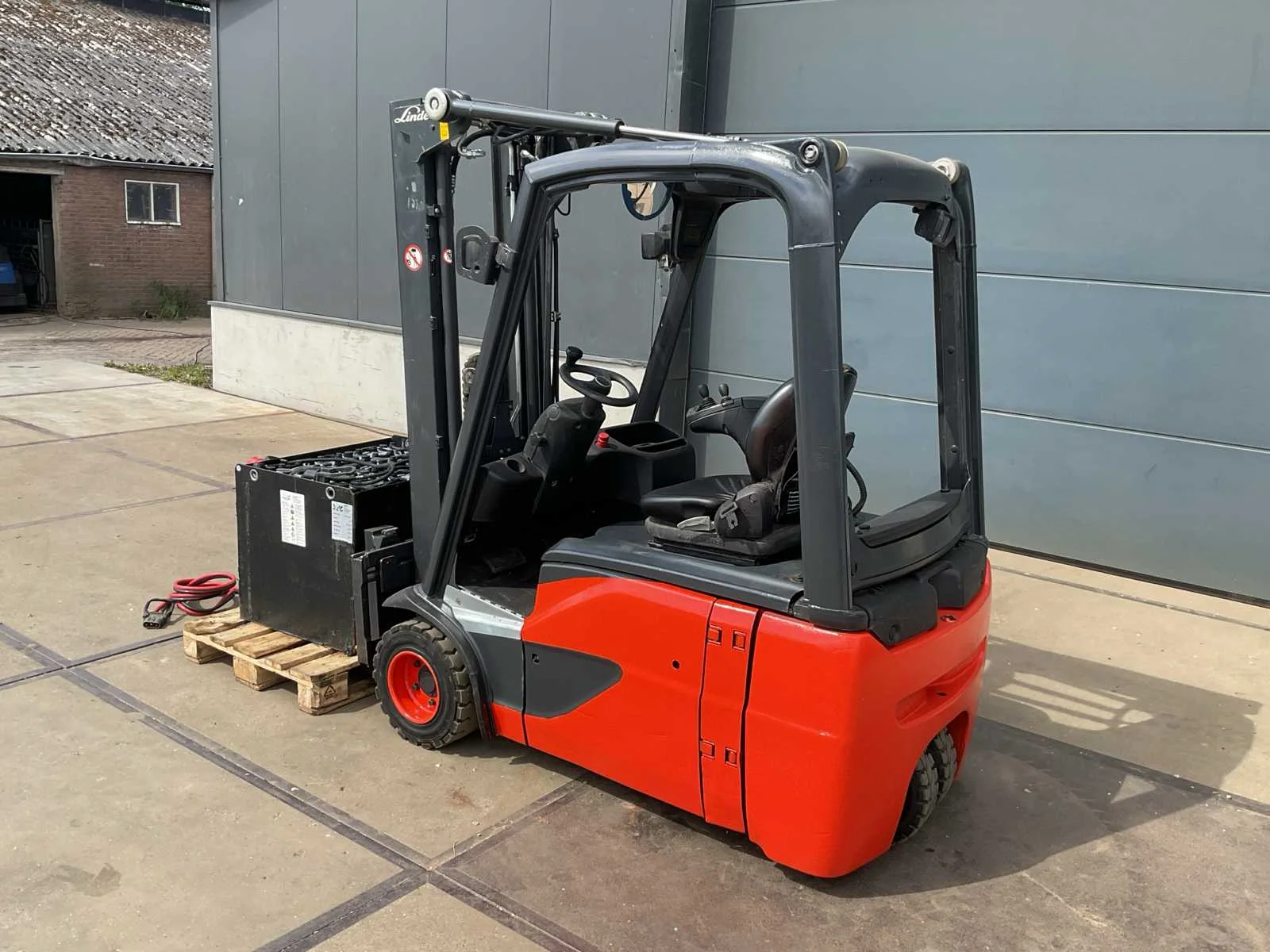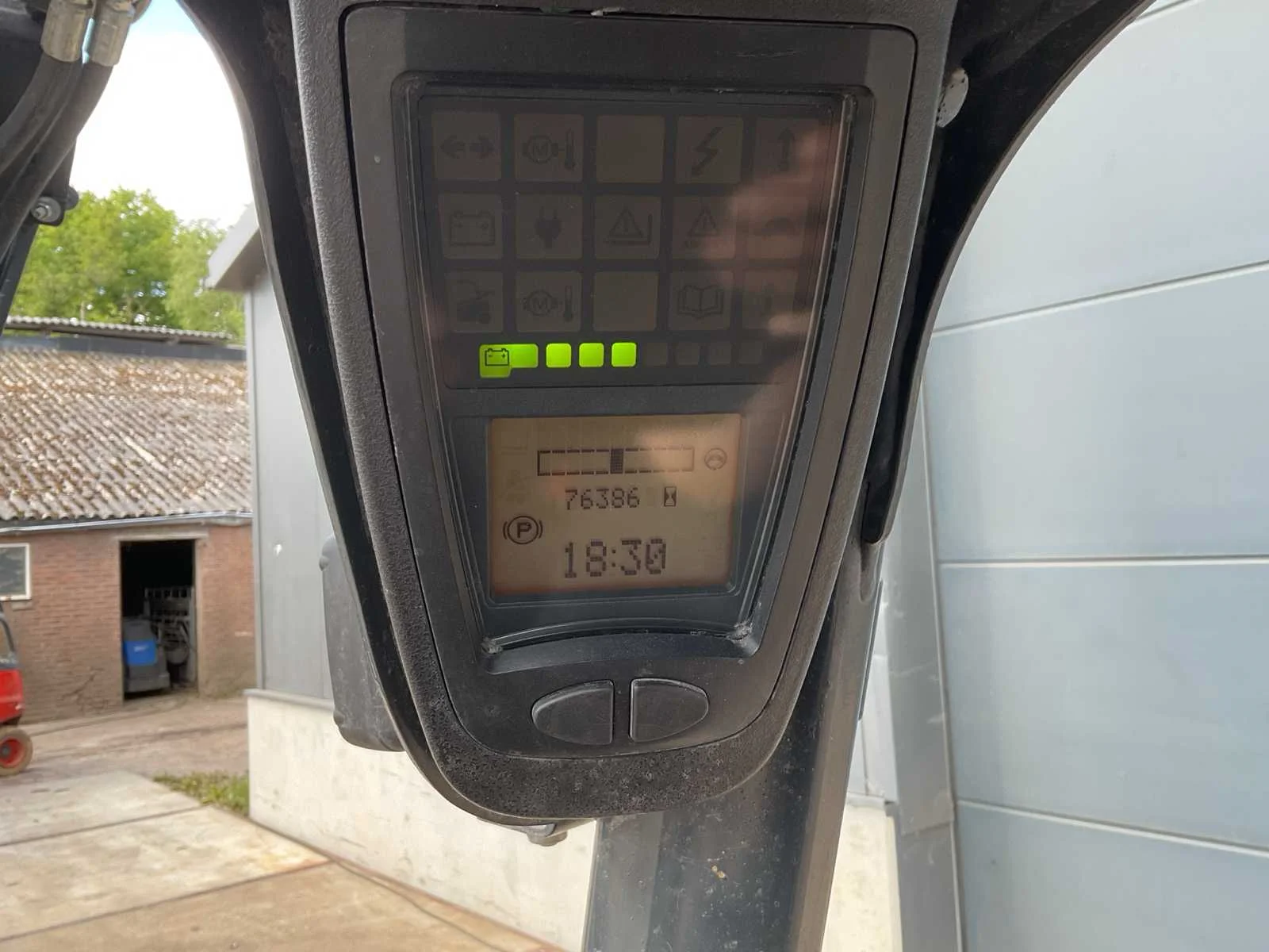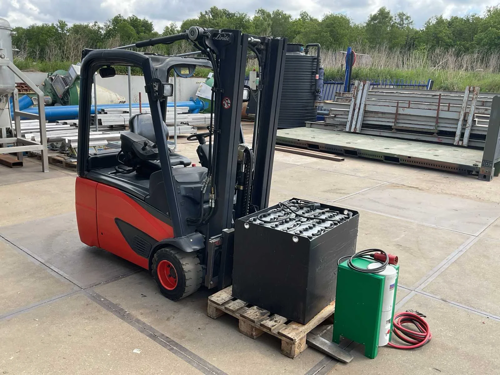 Voorzien van. werkverlichting; Blue spot; wissel batterij; lader. Merk: Linde Type: E18-02 Bouwjaar: 2015 Serienummer: H2X386F05278 Brandstof: Elektrisch Mast: Triple Soort band: Volrubber banden Accu lader: true Free-lift: true Side-shift: true Triple mast: true Hefvermogen: 1800kg Lepellengte: 1100mm Hefhoogte: 4650mm Vol rubber banden: true Minimale doorrijhoogte: 2100mm Totale afmeting L: 3100mm Totale afmeting Breedte: 1150mm Totale afmeting Hoogte: 2100mm