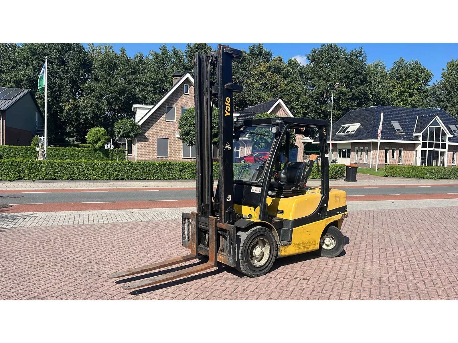 Voorzien van weegsysteem Merk: Yale Type: GDP35vx Bouwjaar: 2012 Serienummer: B875B23925K Brandstof: Diesel Afgelezen urenstand: 6228 Free-lift: true Side-shift: true Duplex mast: true Hefvermogen: 3500kg Lepellengte: 1200mm Max. hefhoogte: 4505mm Vol rubber banden: true Diesel: true