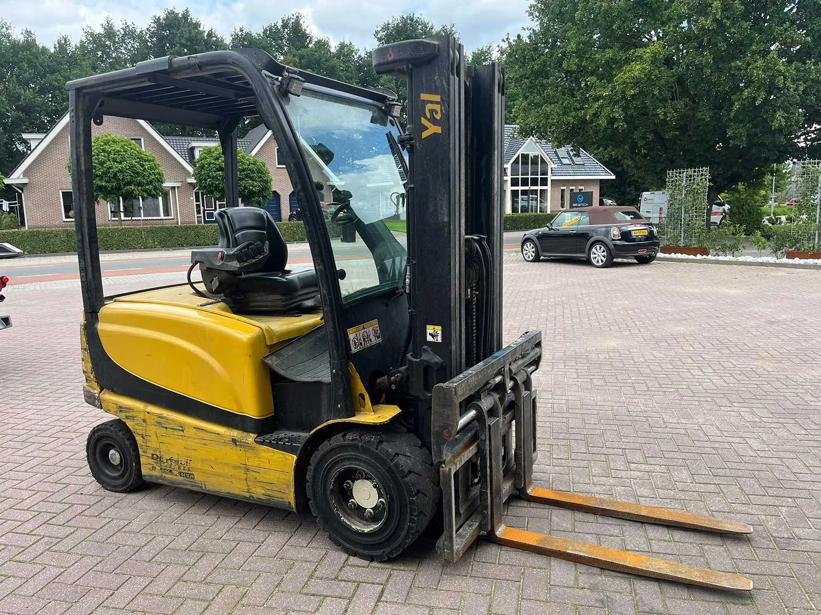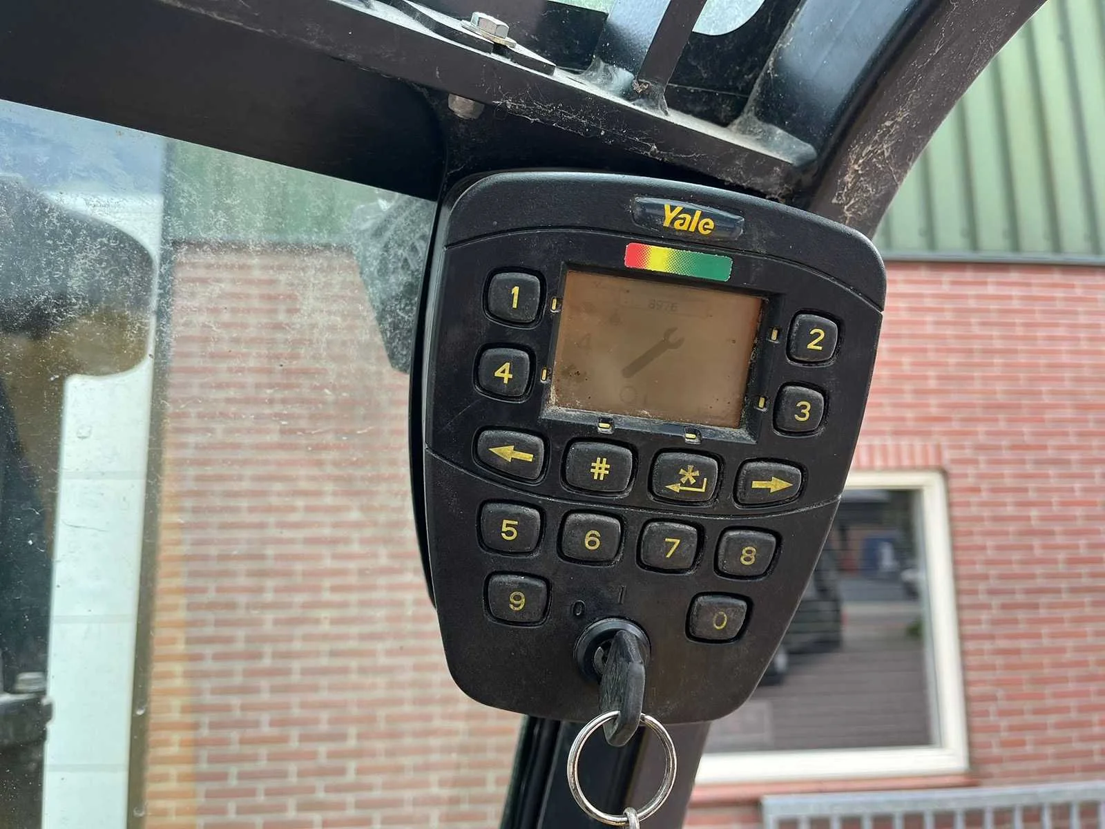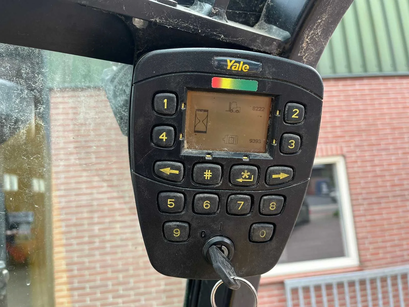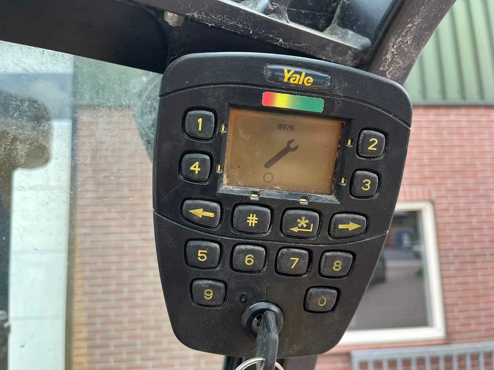 Storing; werking onbekend Merk: yale Type: ERP25VL Bouwjaar: 2010 Serienummer: A976B01692H Brandstof: electrisch Mast: 4950 FFL Afgelezen urenstand: 8222 Free-lift: true Side-shift: true Hydraulisch verstelbare lepels: true Duplex mast: true Hefvermogen: 2500kg Lepellengte: 1000mm Max. hefhoogte: 4950mm Vol rubber banden: true
