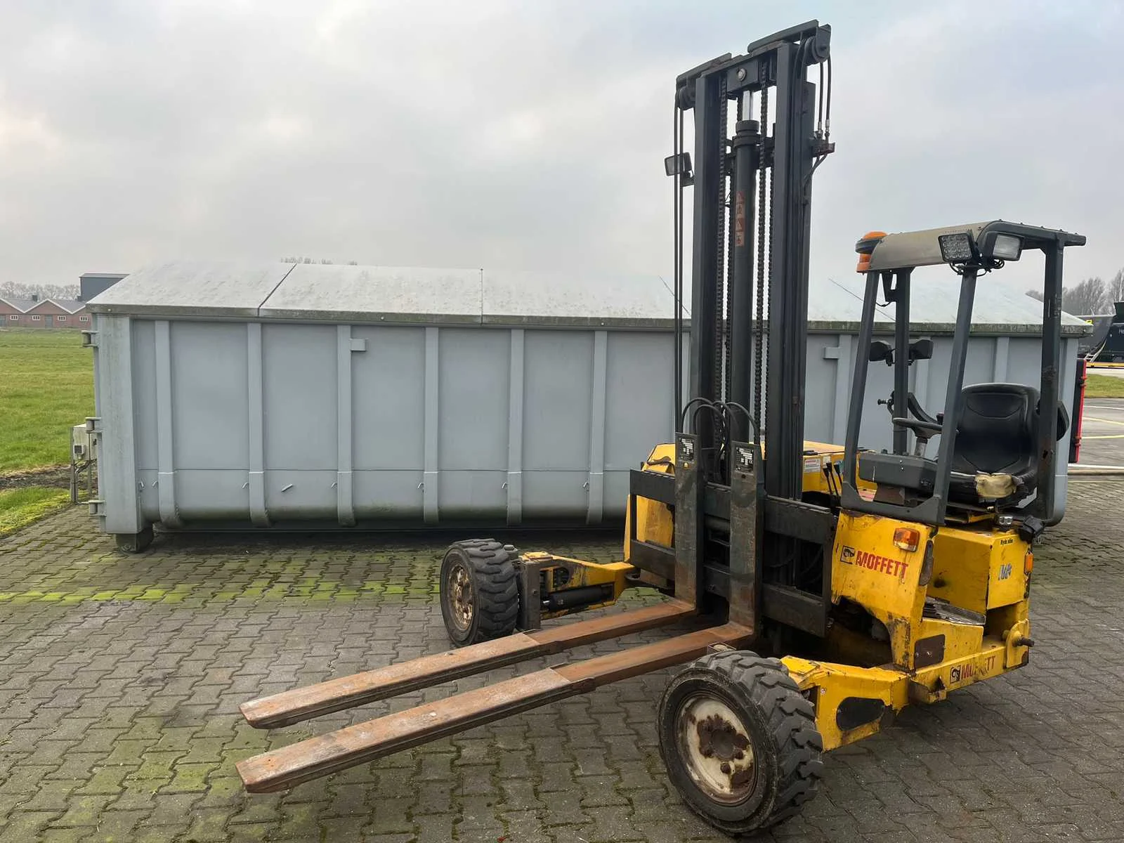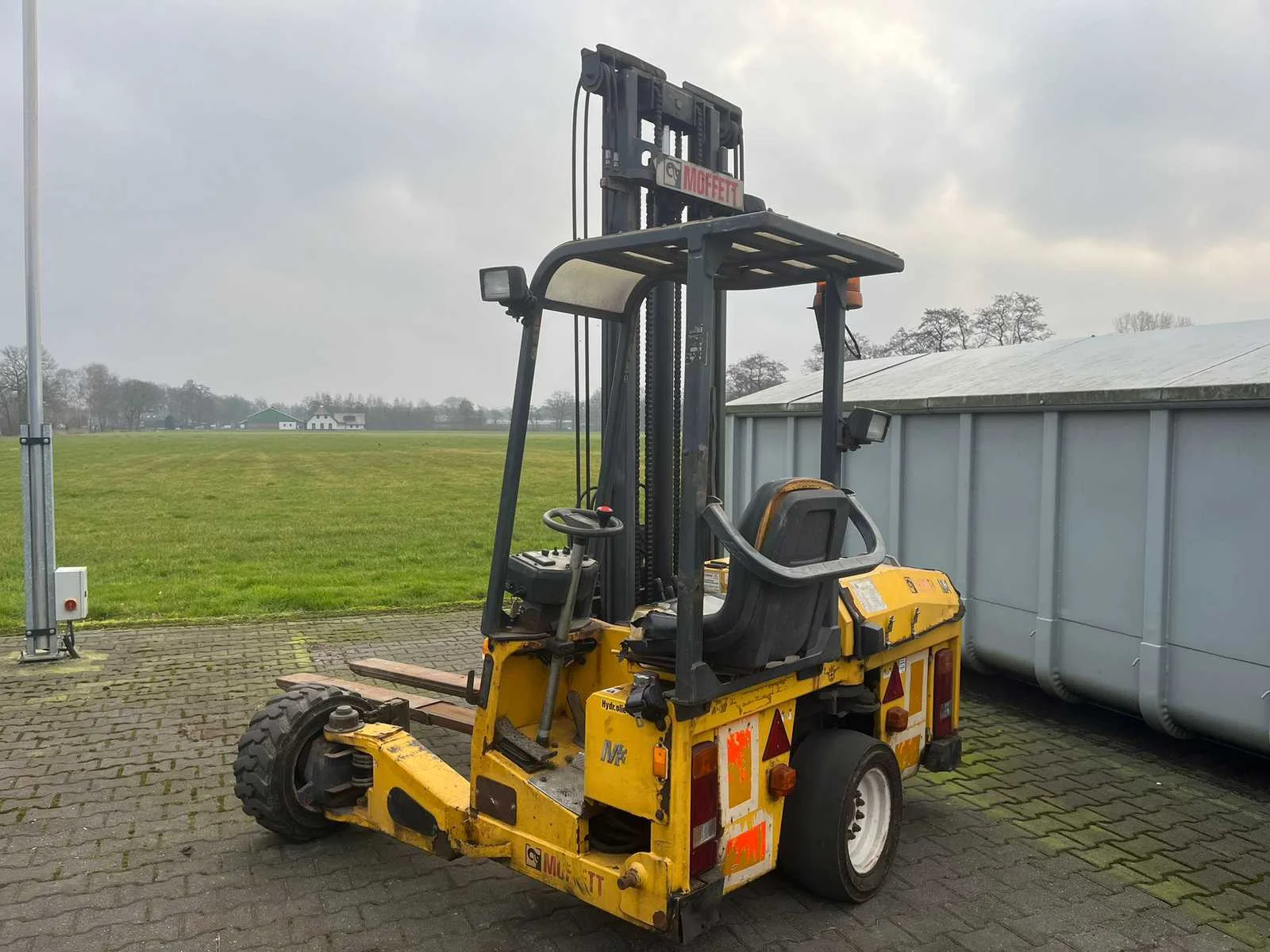 Hefhoogte 3600mm; kubota diesel; reachvorken; 3WD; sideshift Merk: Moffett Type: M4 20.4 Bouwjaar: 2007 Serienummer: 113120 Diesel: true Aantal wielen: 3 Hefhoogte: 3600mm Lepellengte: 1200mm Side-shift: true Luchtbanden: true Afgelezen urenstand: 2063 Eigen gewicht: 2040kg