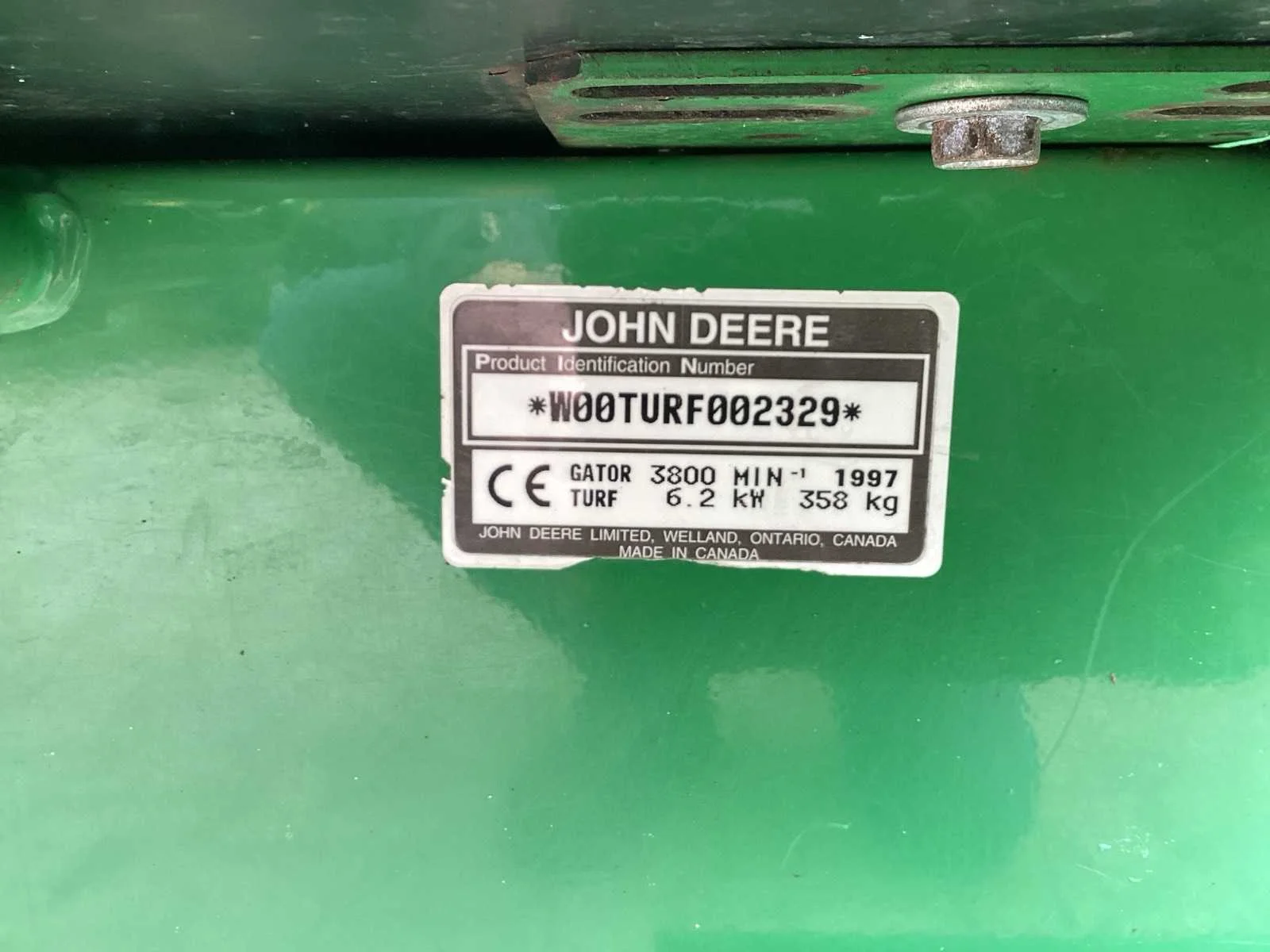 Uren Stand 1965; voorzien van. Kiepbak; start stop systeem; Merk: John Deere Model: Gator Bouwjaar: 1997 Vermogen (kW): 6.7kW Lengte: 270cm Breedte: 150cm Hoogte: 110cm