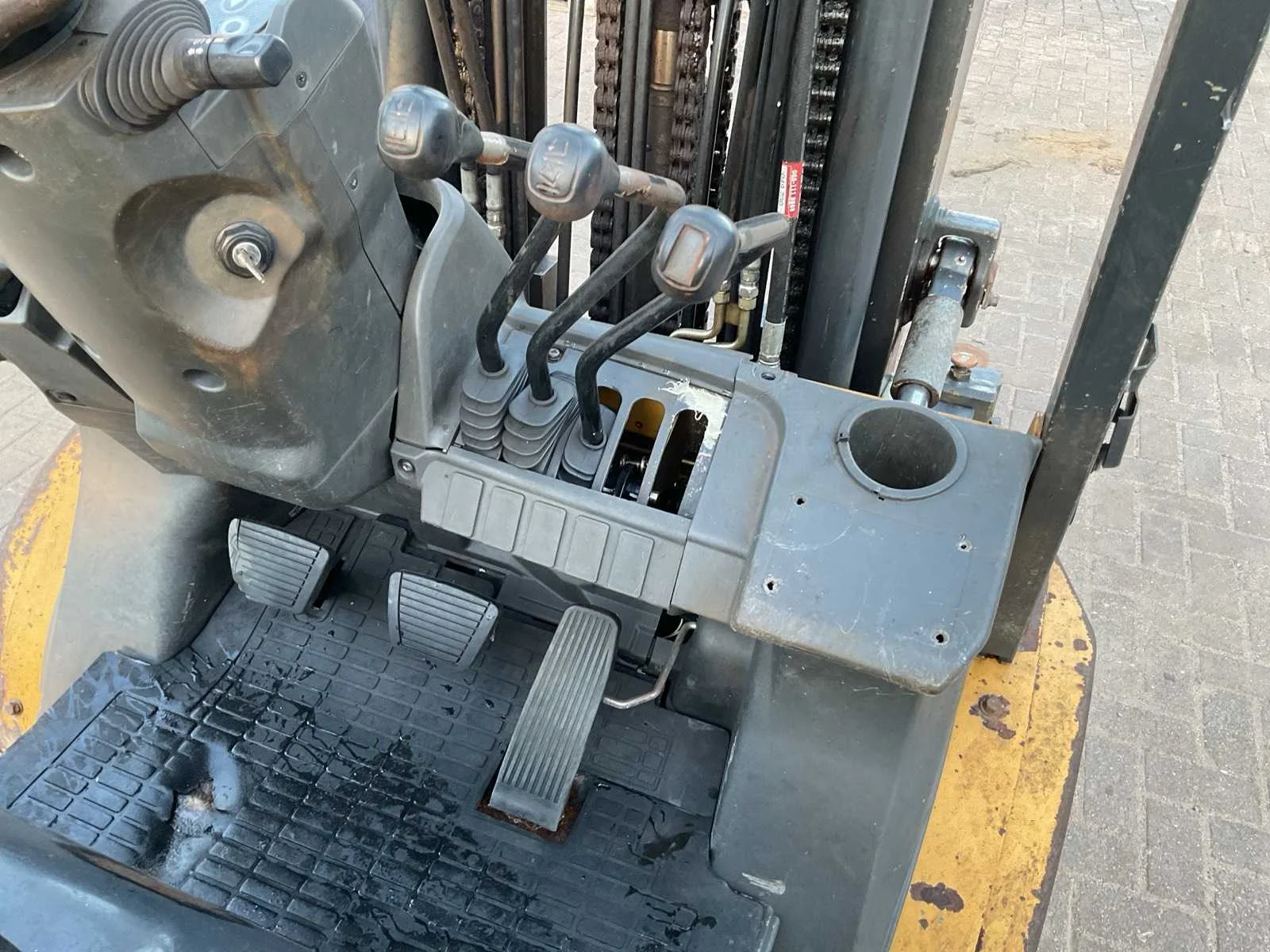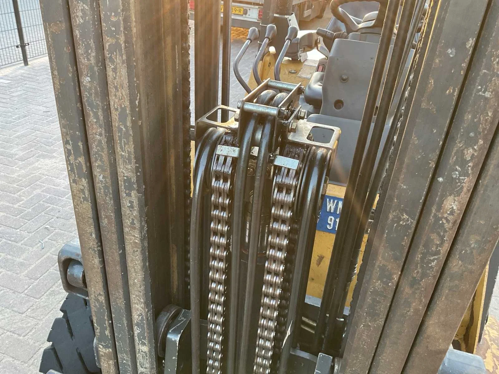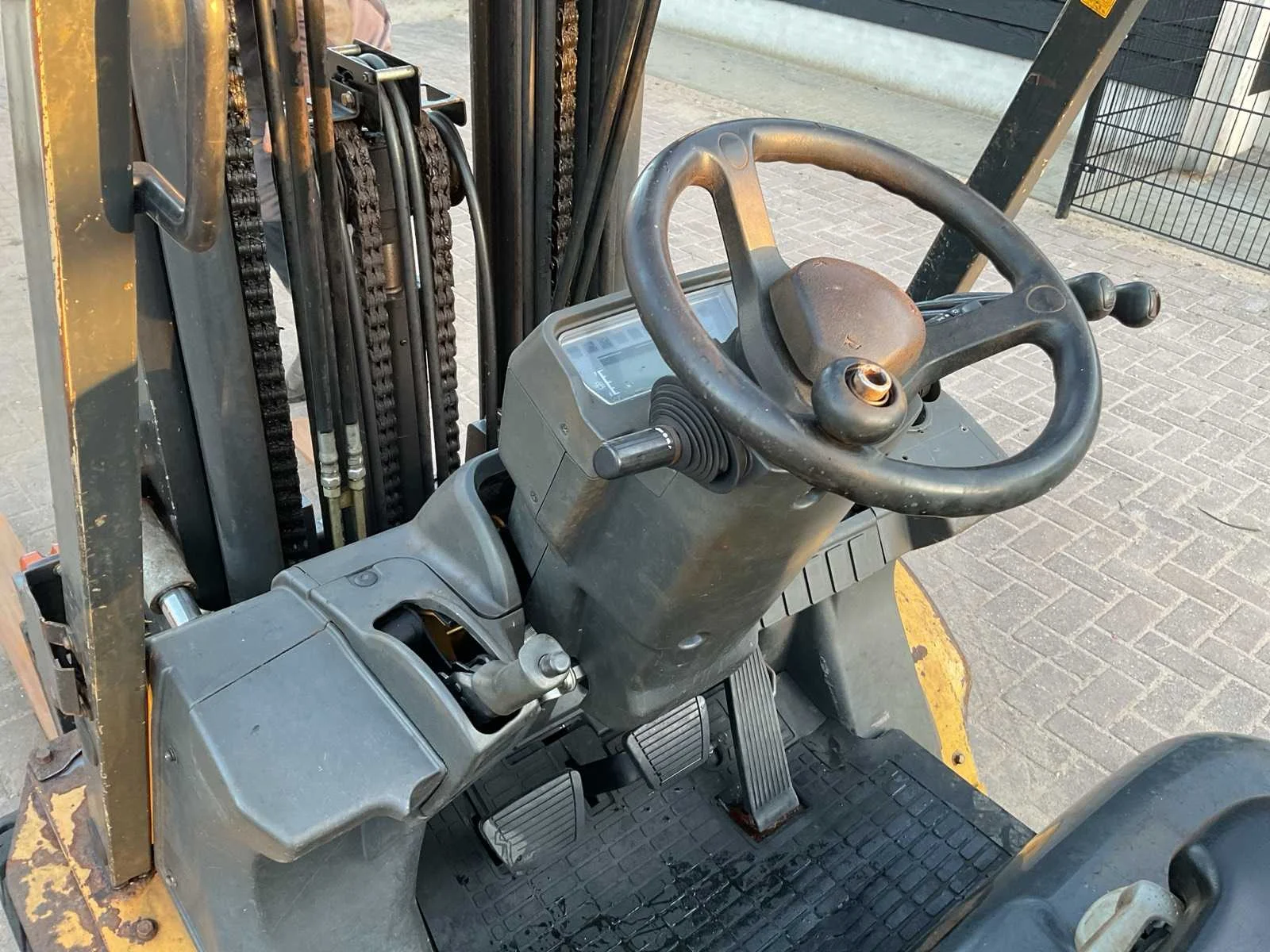 Voorzien van. Werkverlichting. Merk: Caterpillar Type: DP35NT Bouwjaar: 2017 Brandstof: Diesel Mast: Triple Soort band: Volrubber banden Aantal wielen: 4 Free-lift: true Side-shift: true Triple mast: true Hefvermogen: 3500kg Lepellengte: 1200mm Max. hefhoogte: 4700mm Hefhoogte: 4700mm Vol rubber banden: true Minimale doorrijhoogte: 2350mm Totale afmeting L: 4100mm Totale afmeting Breedte: 1320mm Totale afmeting Hoogte: 2300mm