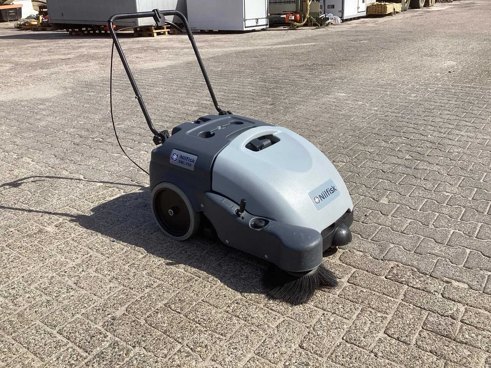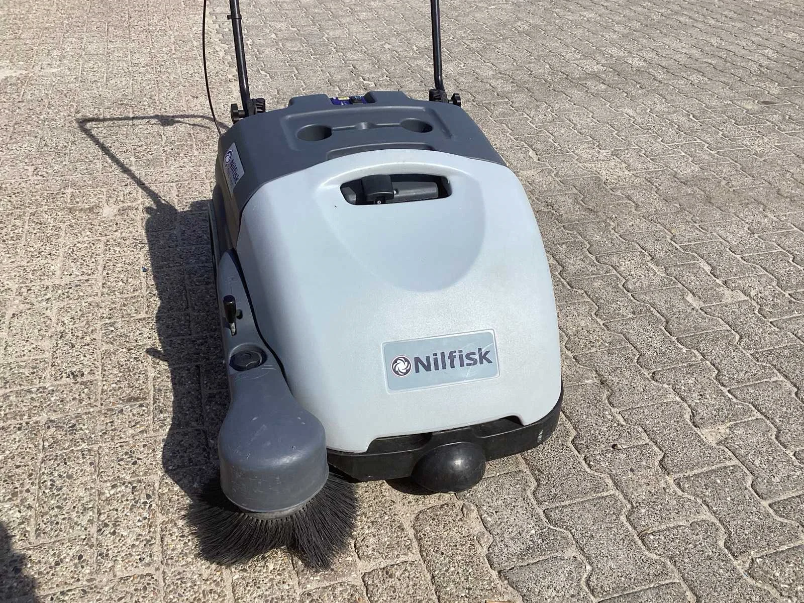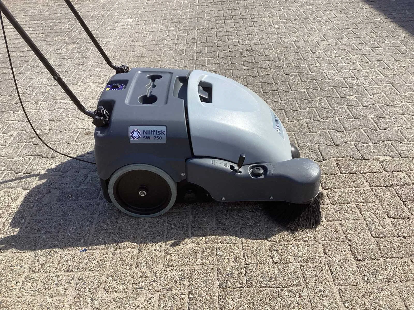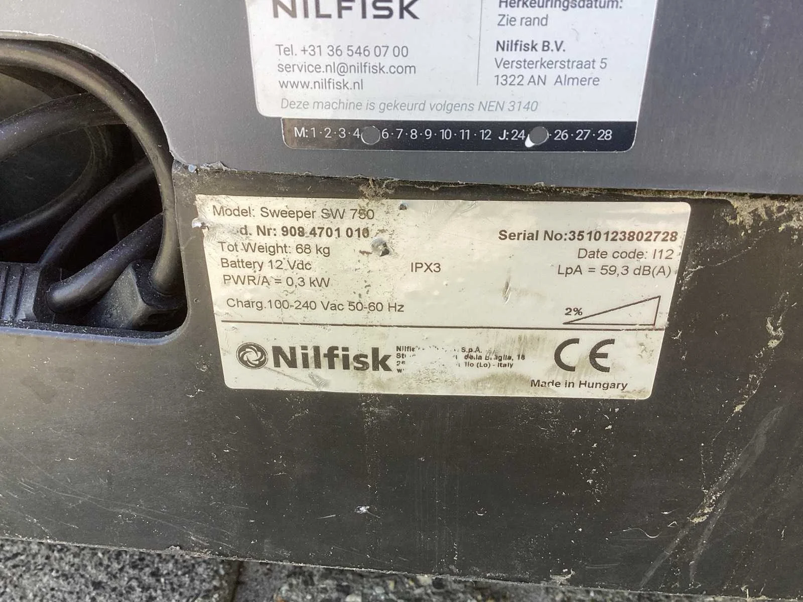 Voorzien van; accu veeg machine; interne lader; kanten borstel Merk: Nilfisk Type: SW I 750 Serienummer: 908 4701 010 Werkbreedte: 750mm Eigen gewicht: 68kg