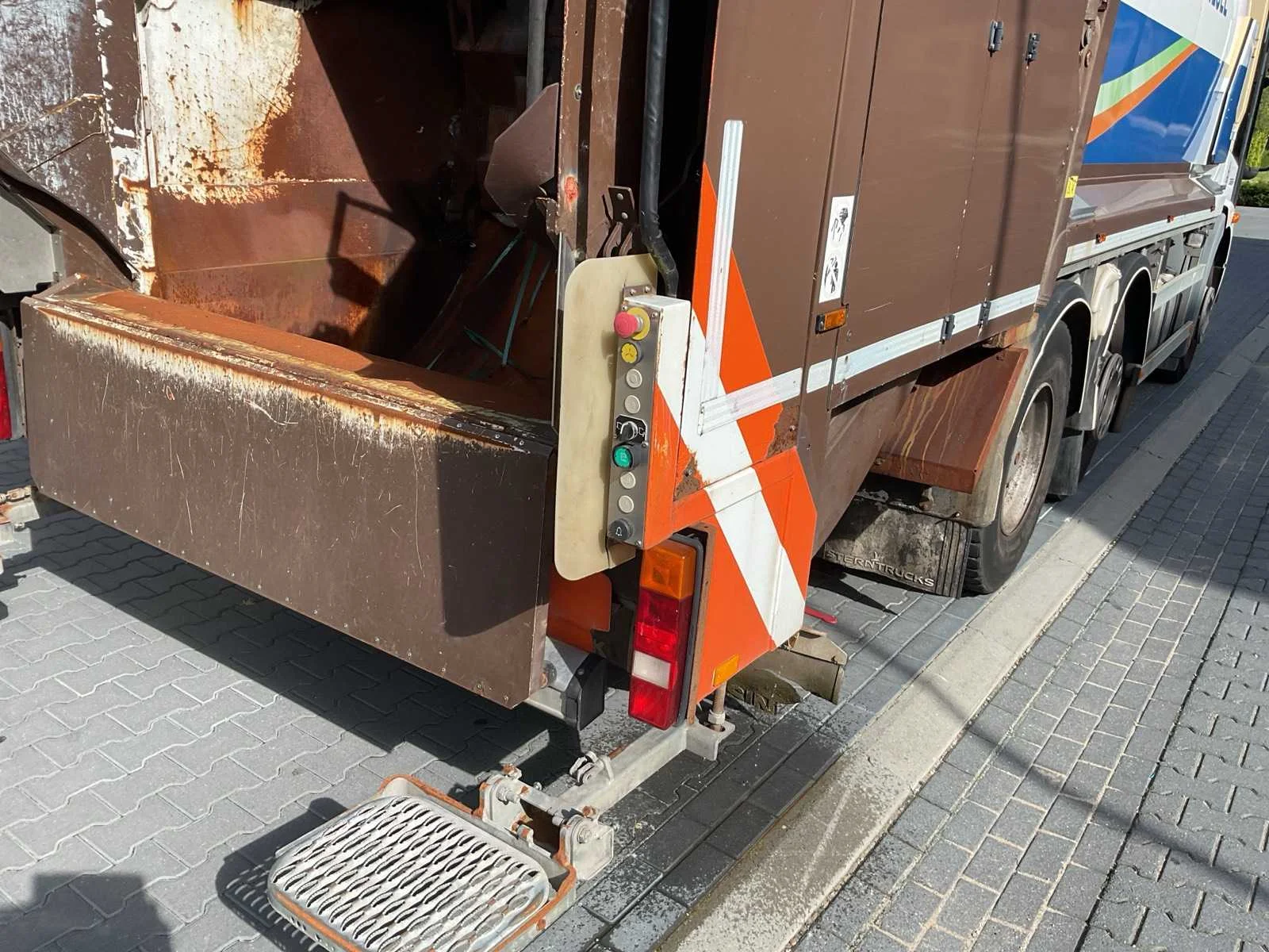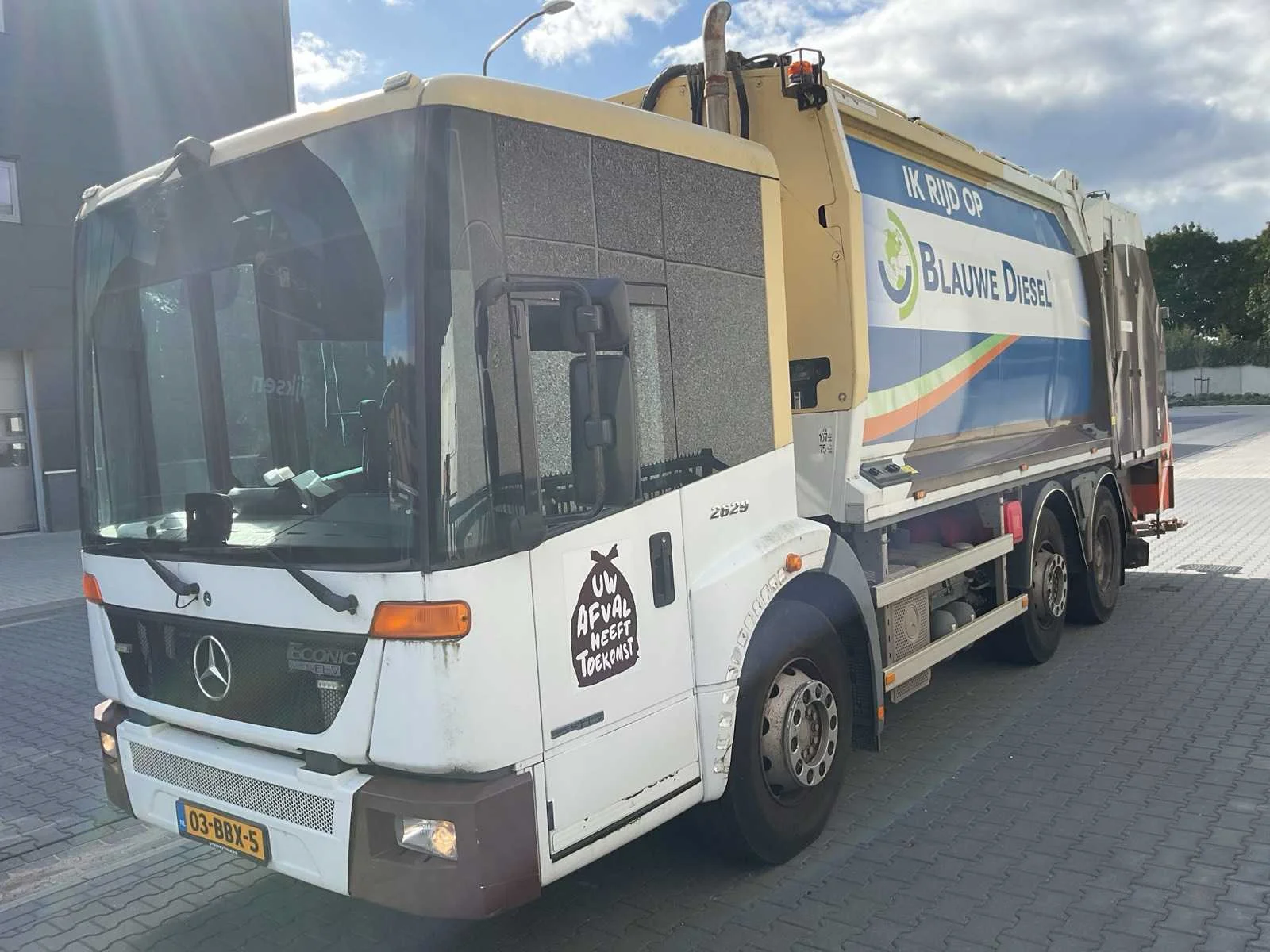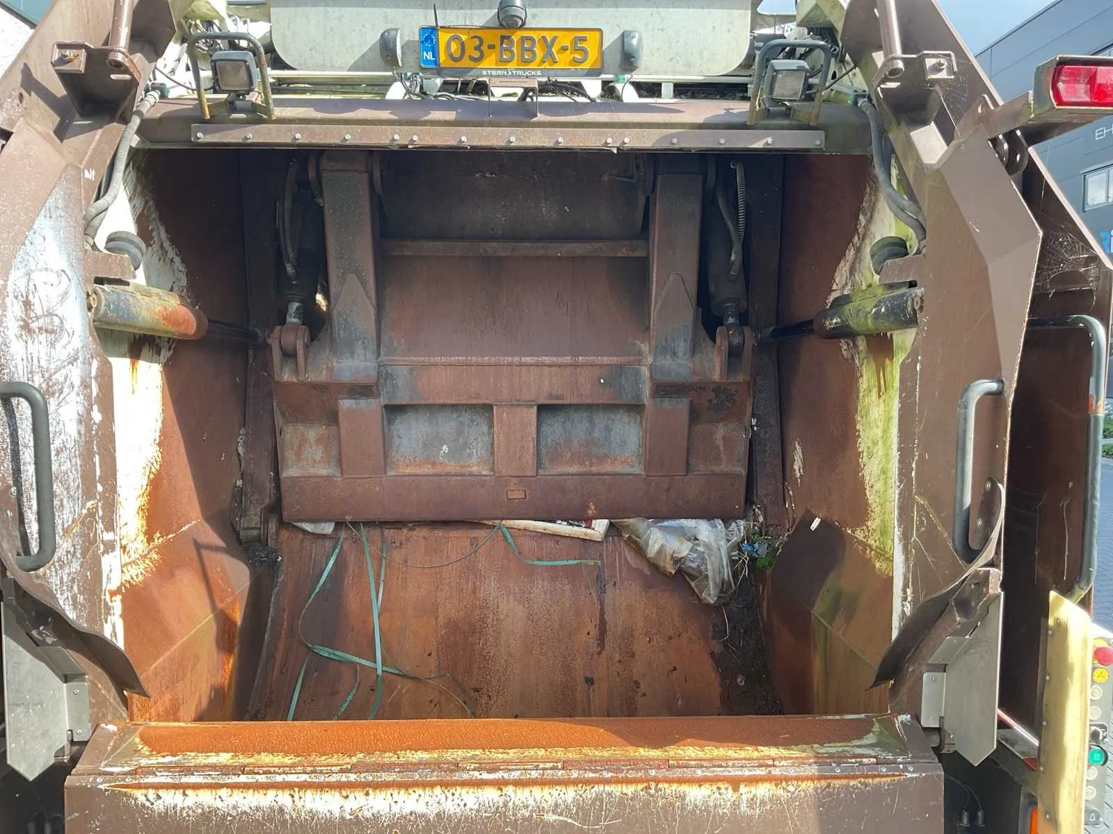Voorzien van. Geesinknorba pers; werkverlichting; flitslampen; camera; automaat; Kenteken: 03-BBX-5 Merk: Mercedes-benz Type: Vuilniswagen Bouwjaar: 2013 Chassisnummer VIN: WDB9576541V233519 Cilinderinhoud: 7201cc Kilometerstand bij opname: 221055km APK vervaldatum: 2024-07-10 Datum eerste toelating: 2013-07-01 Datum eerste toelating (NL): 2013-07-01 Type transmissie: Automaat Aantal assen: 3 Fuel Type: Diesel Laadvermogen: 12970kg Aantal sleutels: 1 Emissieklasse: 5 Eigen gewicht: 14030kg Totale afmeting L: 10000mm Totale afmeting Breedte: 2550mm Totale afmeting Hoogte: 3650mm Afgelezen kilometerstand: 221055km Kentekenpapieren compleet?: true Aantal zitplaatsen: 3 Automaat: true Diesel: true