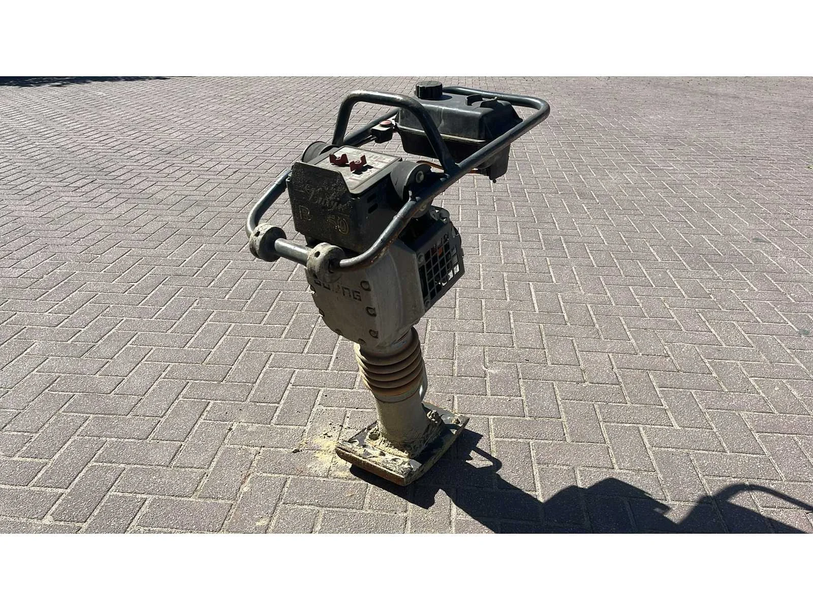 22cm voet Merk: Bomag Type: BT50 Bouwjaar: 2001 Serienummer: 101540342040 Motorvermogen (kW): 2kW Brandstof: Benzine Eigen gewicht: 53kg