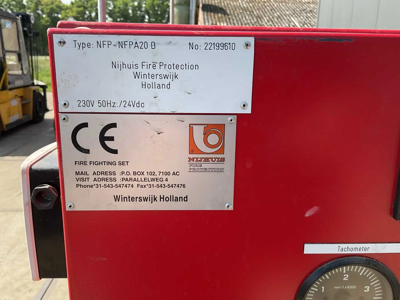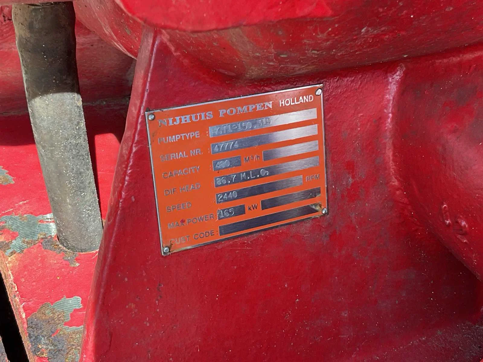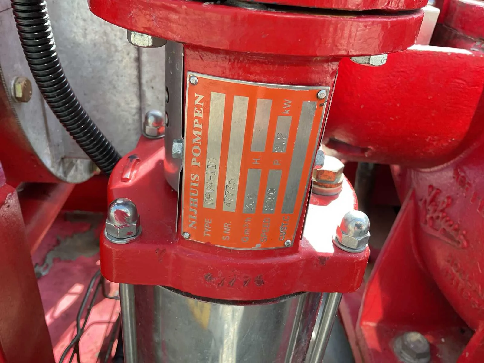 Voorzien van. Brandstoftank afmeting L:1550mm B:1060mm H:1350mm; Iveco aifo sprinklerpomp diesel L:310p B:1400 H:1900mm Merk: Nijhuis iveco aifo Type: HGT1-150.315 Bouwjaar: 2001 Serienummer: 47774 Capaciteit.: 480l/hr