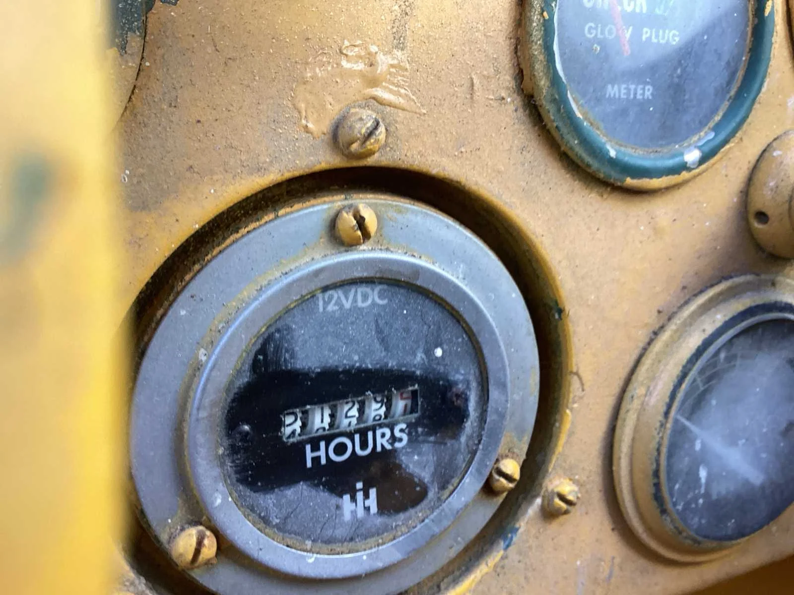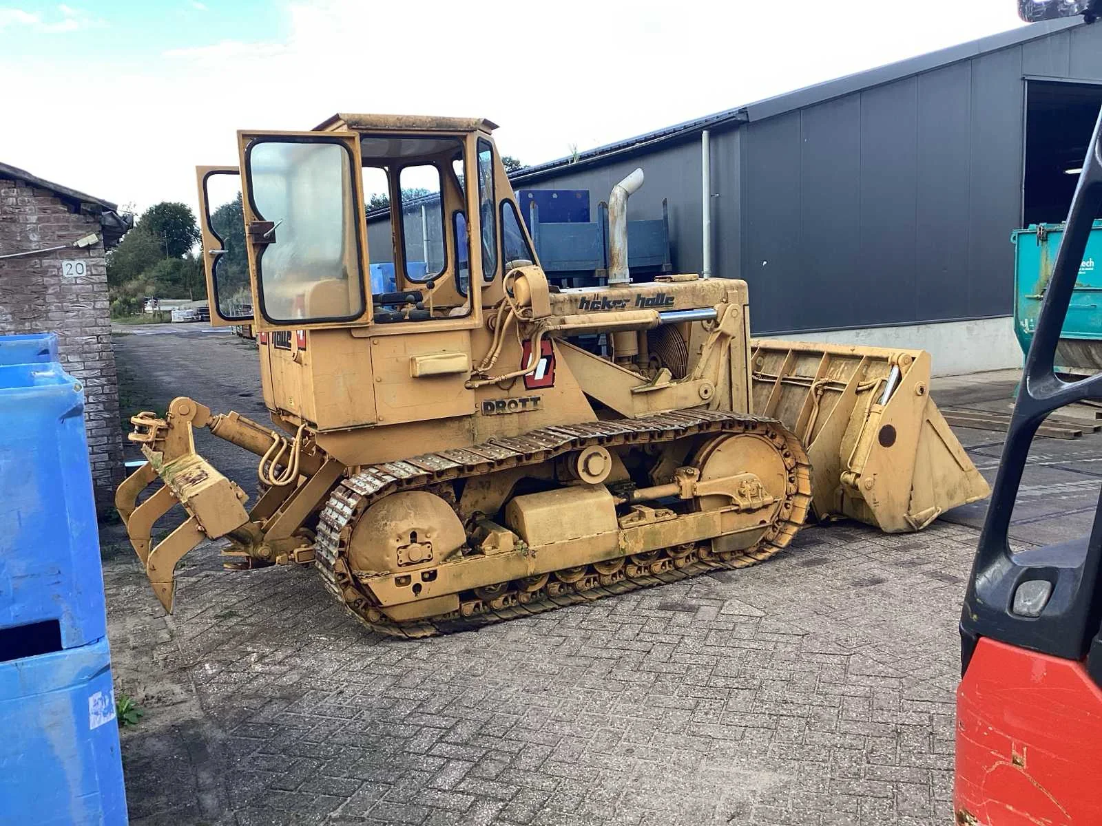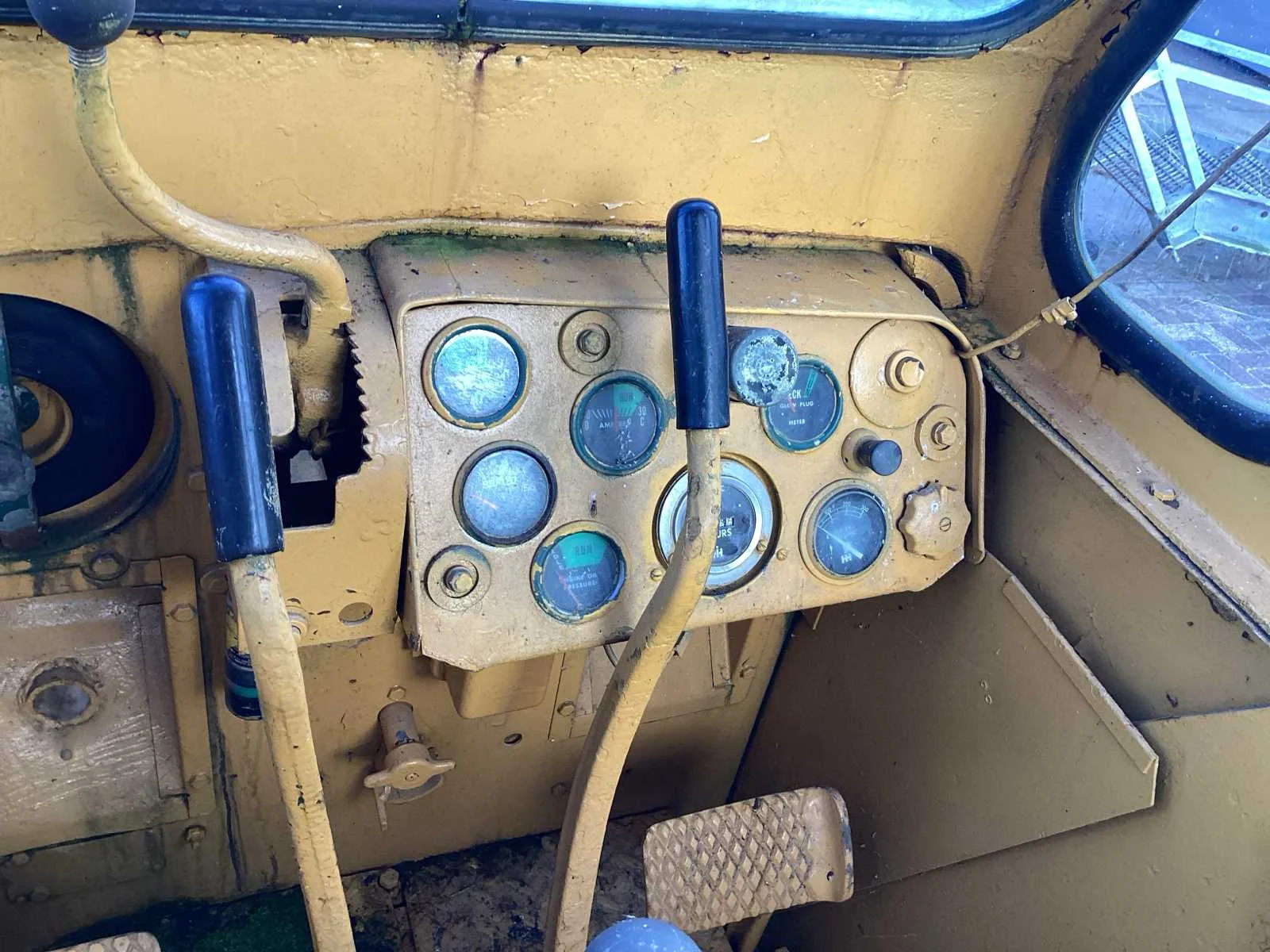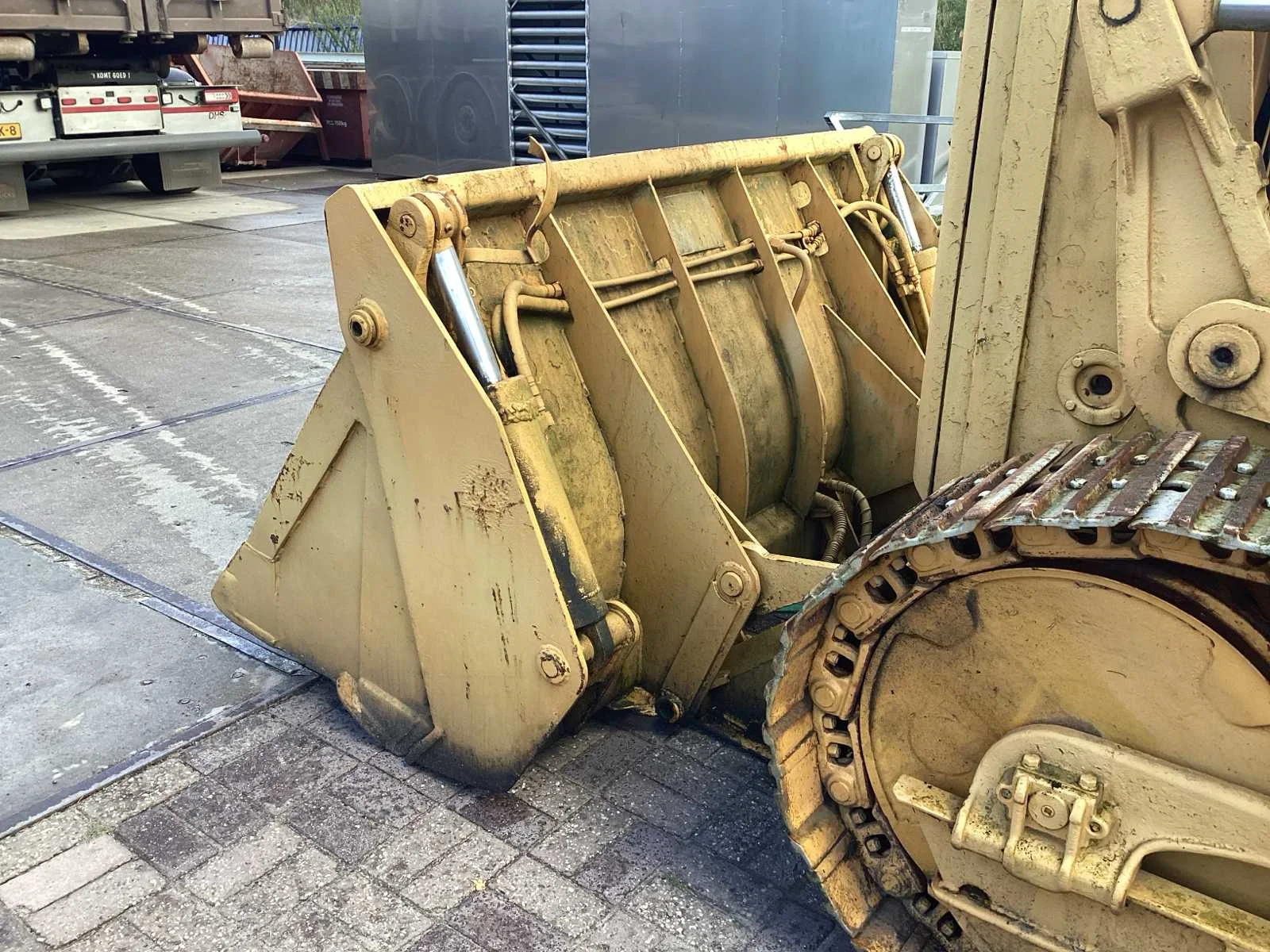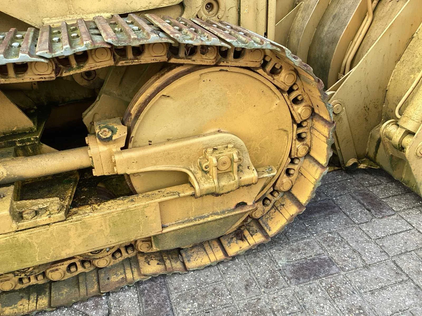 V.v. woeler; 3 standen bak; motor loopt; machine rij niet voor of achteruit Merk: International Type: 150 loader Aantal cilinders: 6 Totale afmeting L: 5200mm Totale afmeting Breedte: 2000mm Graafbak afm. b: 2000mm Totale afmeting Hoogte: 2650mm Eigen gewicht: 9000kg Cabine: true Bandenmaat: Rupsen Brandstof: Diesel