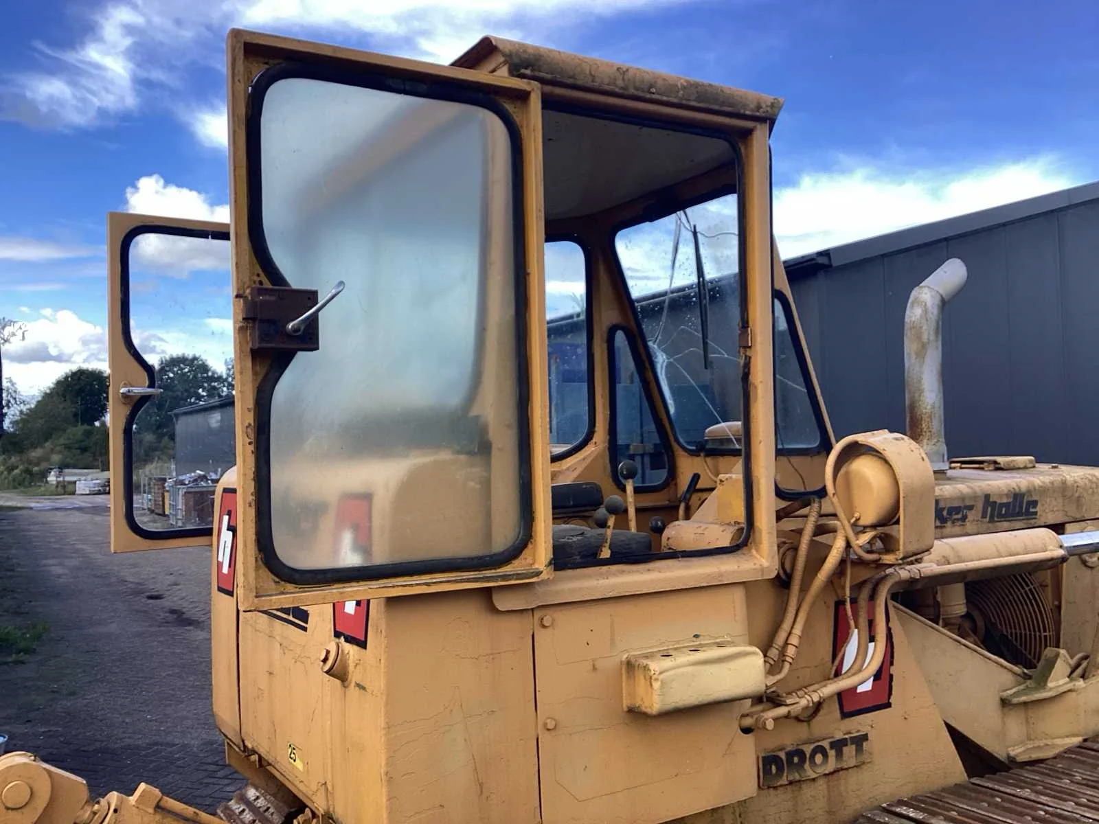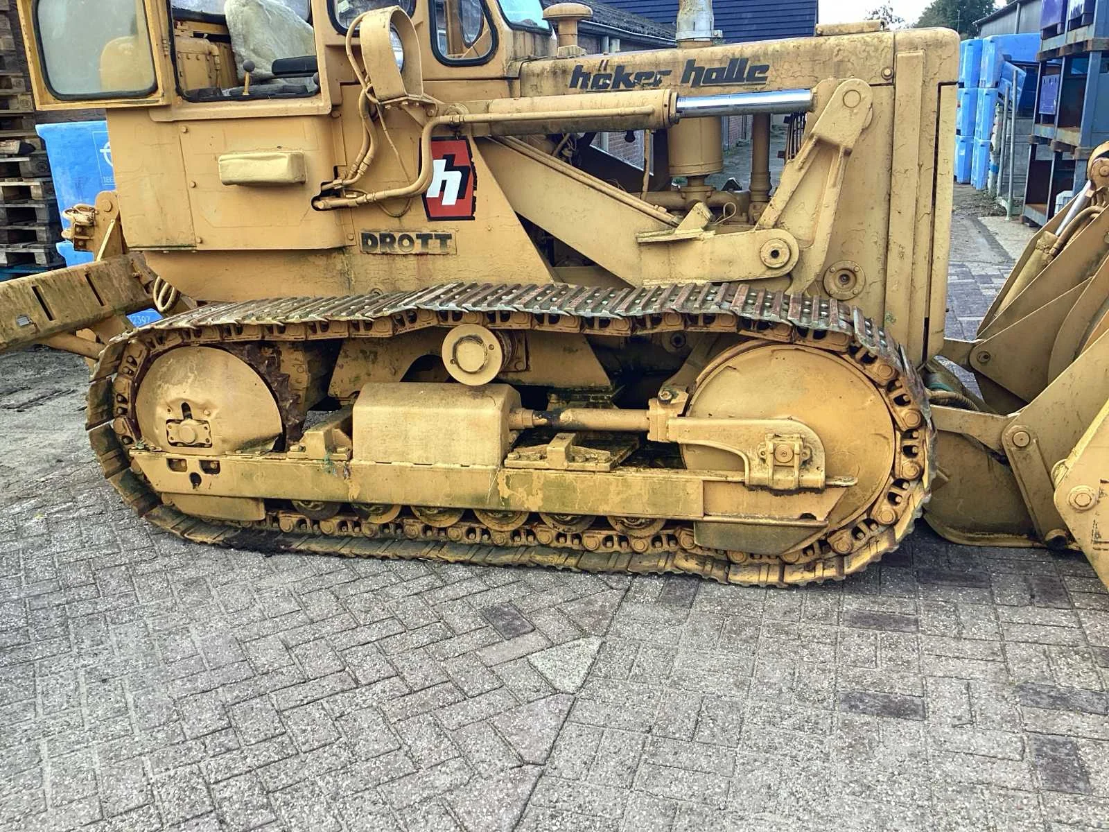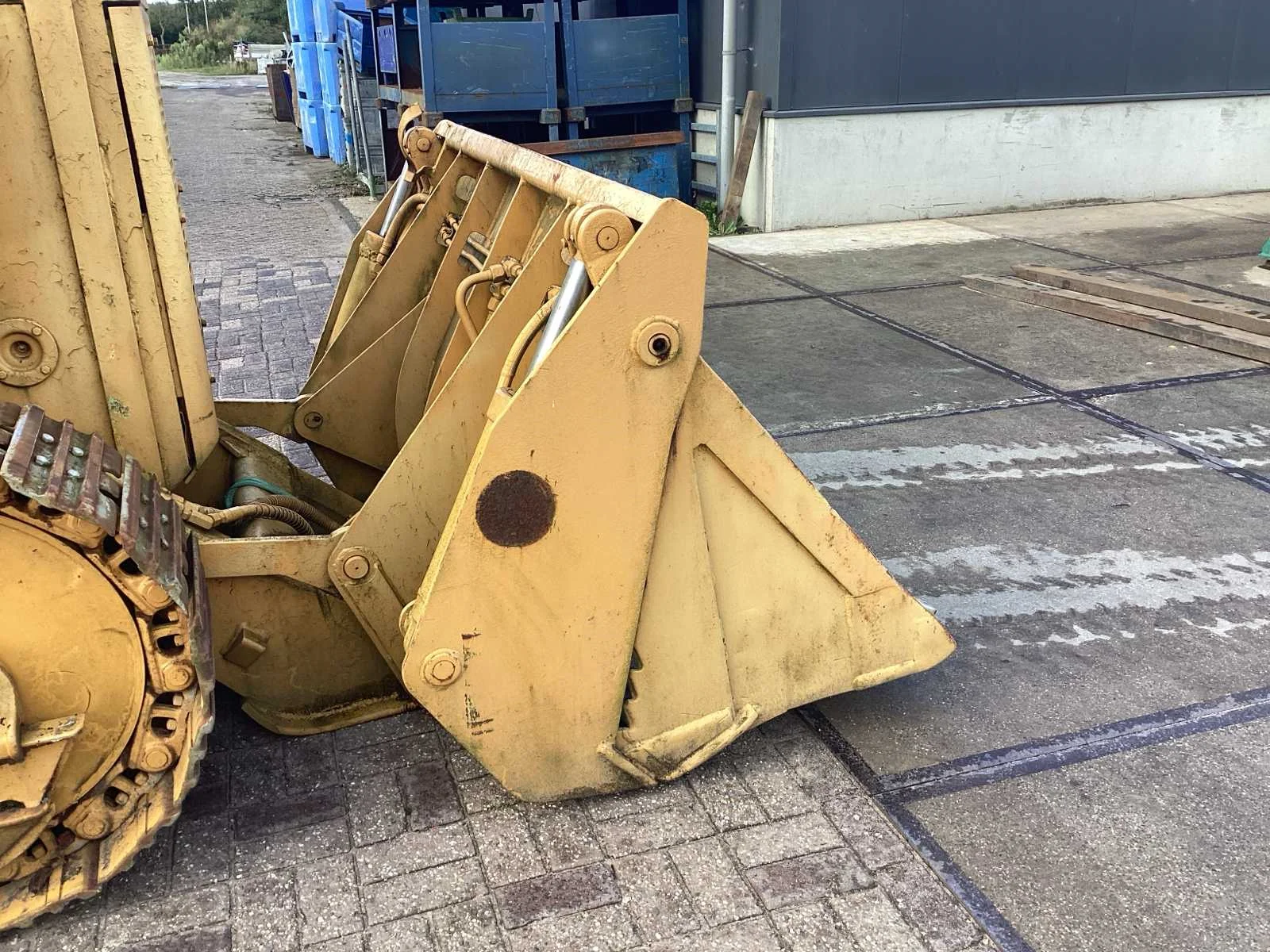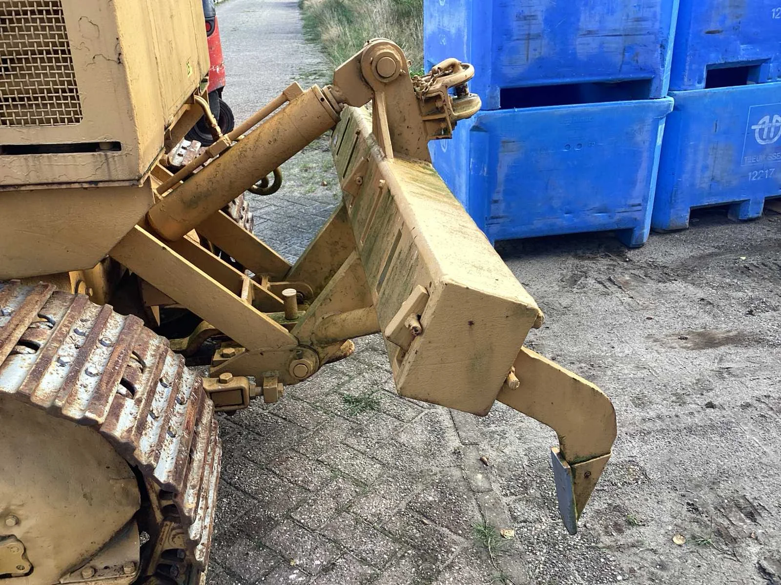 V.v. woeler; 3 standen bak; motor loopt; machine rij niet voor of achteruit Merk: International Type: 150 loader Aantal cilinders: 6 Totale afmeting L: 5200mm Totale afmeting Breedte: 2000mm Graafbak afm. b: 2000mm Totale afmeting Hoogte: 2650mm Eigen gewicht: 9000kg Cabine: true Bandenmaat: Rupsen Brandstof: Diesel