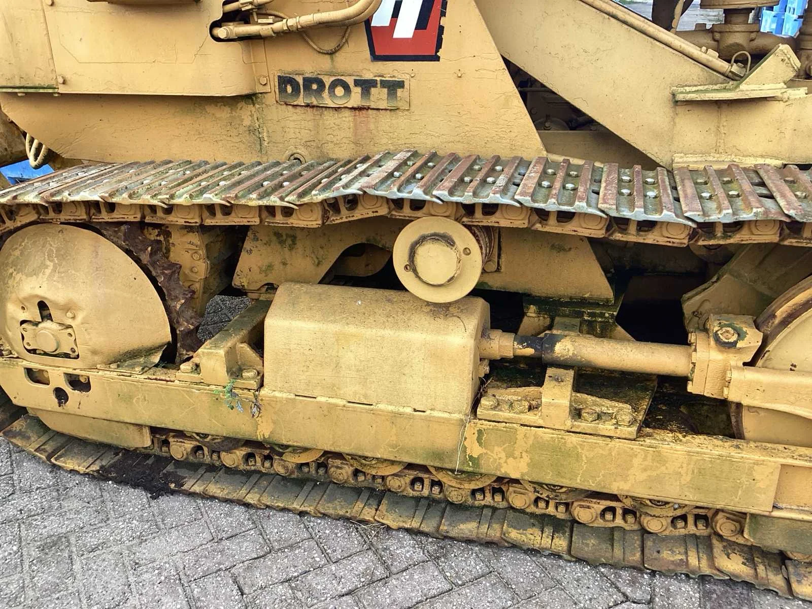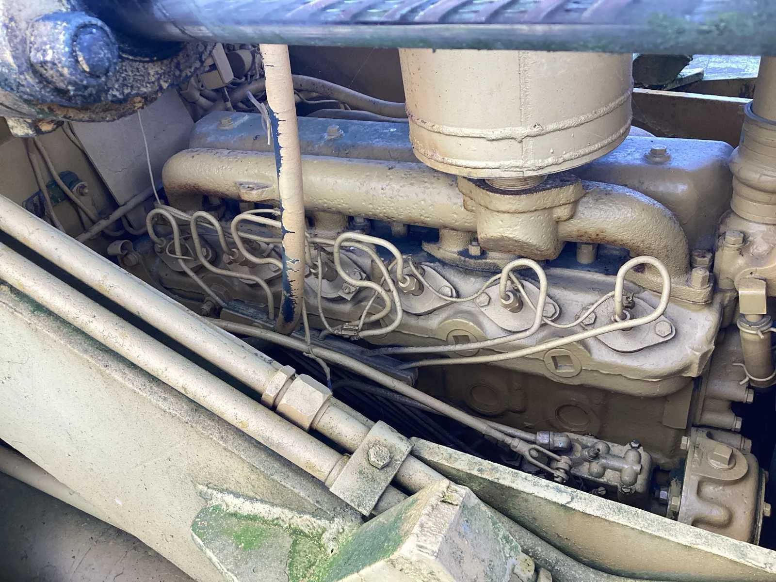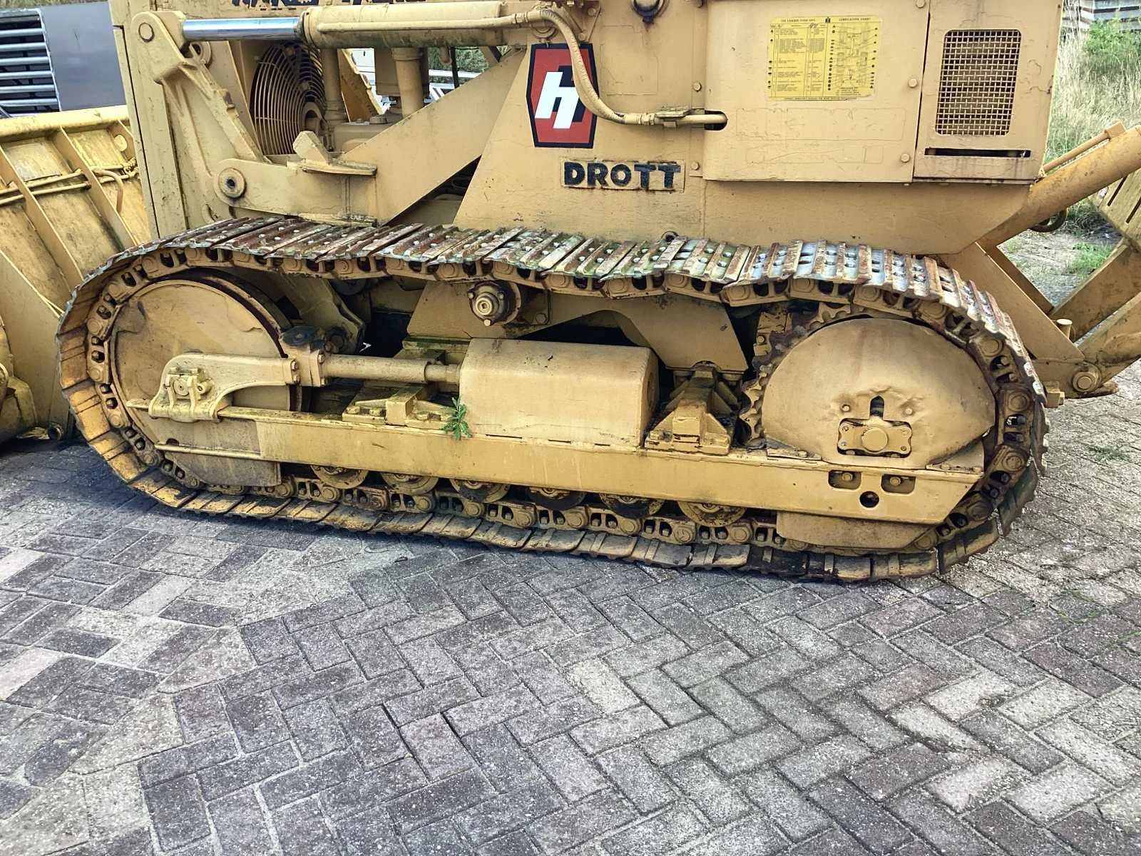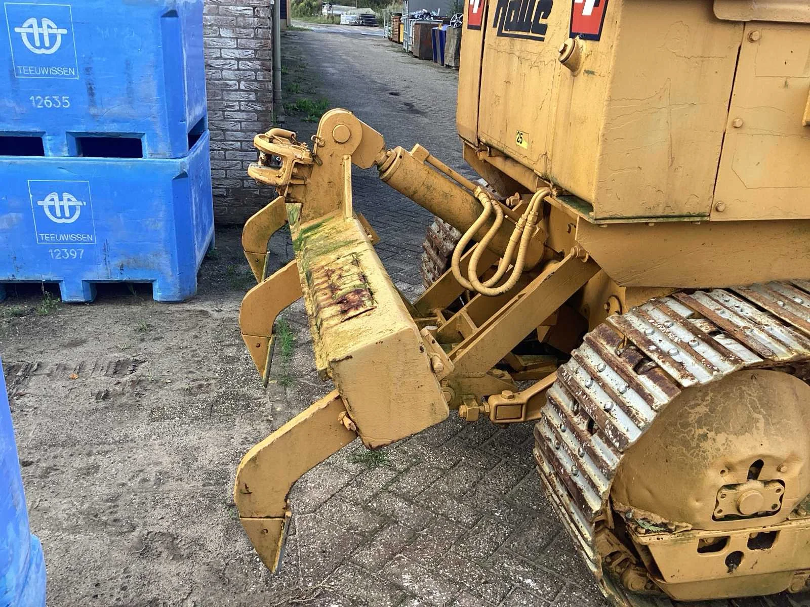 V.v. woeler; 3 standen bak; motor loopt; machine rij niet voor of achteruit Merk: International Type: 150 loader Aantal cilinders: 6 Totale afmeting L: 5200mm Totale afmeting Breedte: 2000mm Graafbak afm. b: 2000mm Totale afmeting Hoogte: 2650mm Eigen gewicht: 9000kg Cabine: true Bandenmaat: Rupsen Brandstof: Diesel