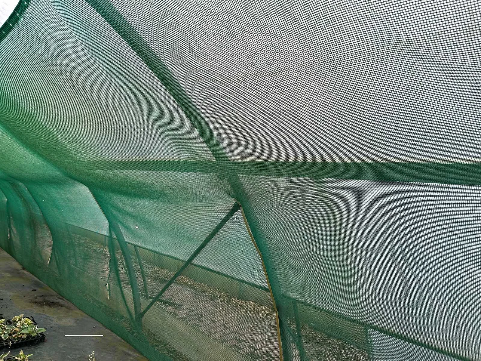 Kuubs kist met inhoud tuinbouw schaduwgaas 50%; kleur groen; ca. 300 - 500m2 in verschillende kleine delen.