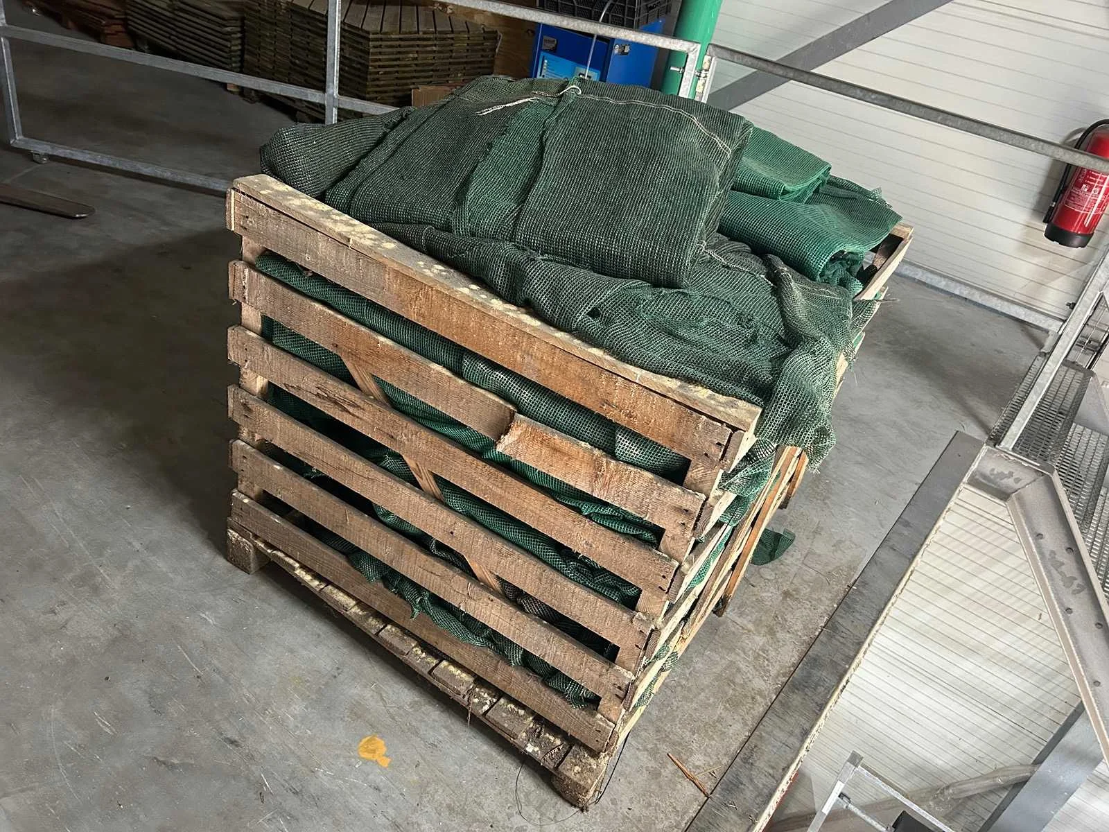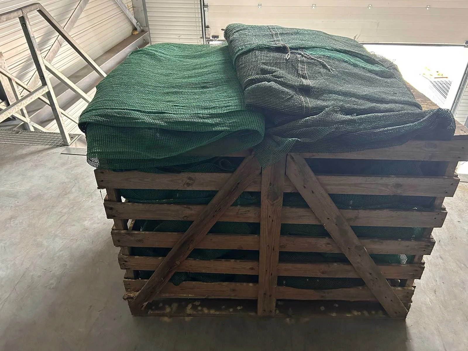 Kuubs kist met inhoud tuinbouw schaduwgaas 50%; kleur groen; ca. 300 - 500m2 in verschillende kleine delen.