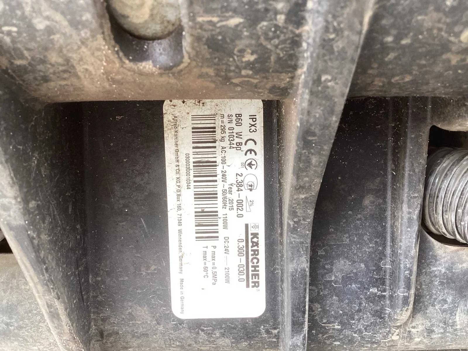 Werking onbekend Merk: Kärcher Type: Professional B 60w Bouwjaar: 2015 Serienummer: 010344 Werkbreedte: 560mm Elektrisch: true Aansluiting: 230V Accu lader: true Eigen gewicht: 295kg