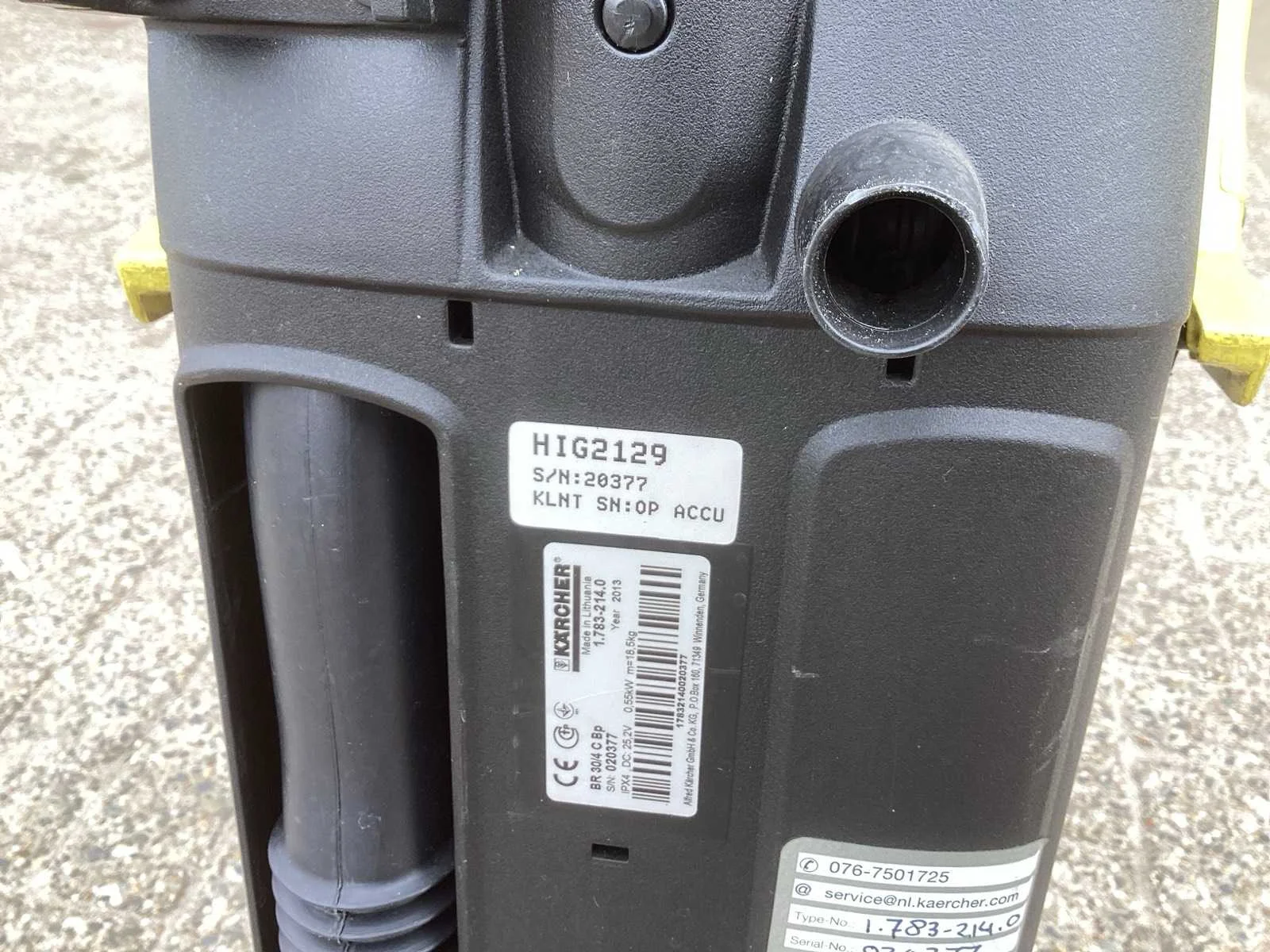 Voorzien van; 2 Kärcher accu’s; zonder lader Merk: Kärcher Type: BR 30/4 C Serienummer: 020377 Vermogen: 0.55W