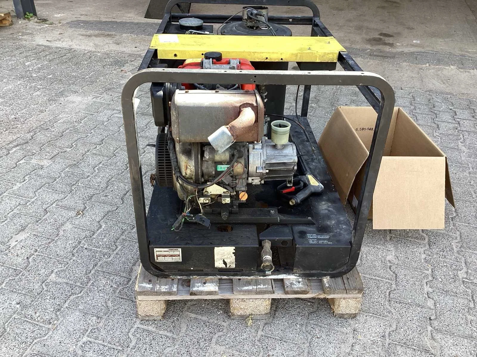 Pomp is defect onderdelen los er bij; voorzien van lans Merk: Kärcher Type: HDS 1000 D Bouwjaar: 1991 Maximale werkdruk: 200bar Dieselgestookt: true Vaste installatie: true