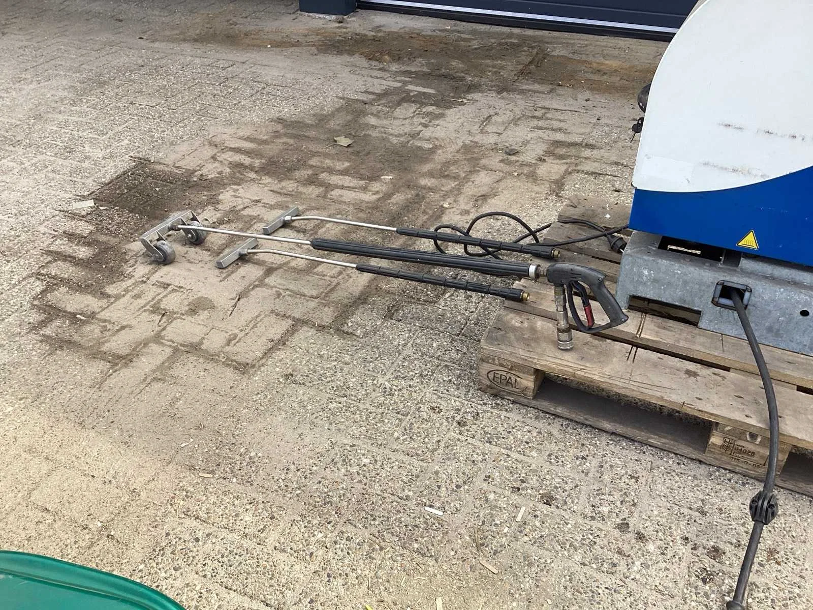 Voorzien van; diverse lansen; haspel frame onder de machine; is gebruikt voor onkruidverdelging door middel van warm water Merk: Wave weed control Type: Mini serie 14/6 Serienummer: Ws6l007 Maximale werkdruk: 120bar Temperatuurbereik max.: 99°c Dieselgestookt: true Vaste installatie: true Vermogen: 2kW