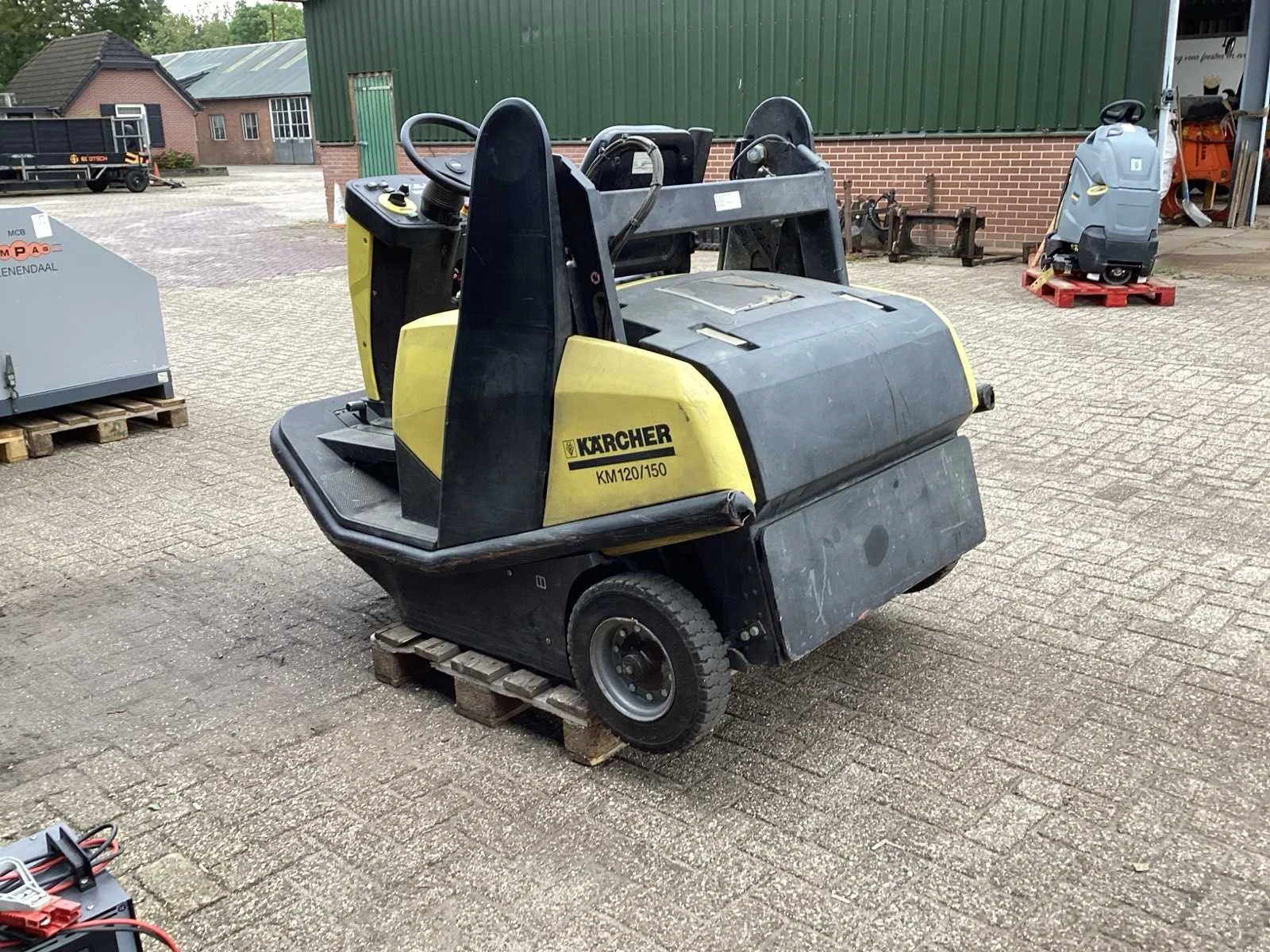 Defect Merk: Kärcher Type: KM120/150R Bouwjaar: 2008 Serienummer: 010066 Werkbreedte: 1200mm Elektrisch: true Accu lader: true Eigen gewicht: 1100kg Totale afmeting L: 1900mm Totale afmeting Breedte: 1200mm Totale afmeting Hoogte: 1600mm