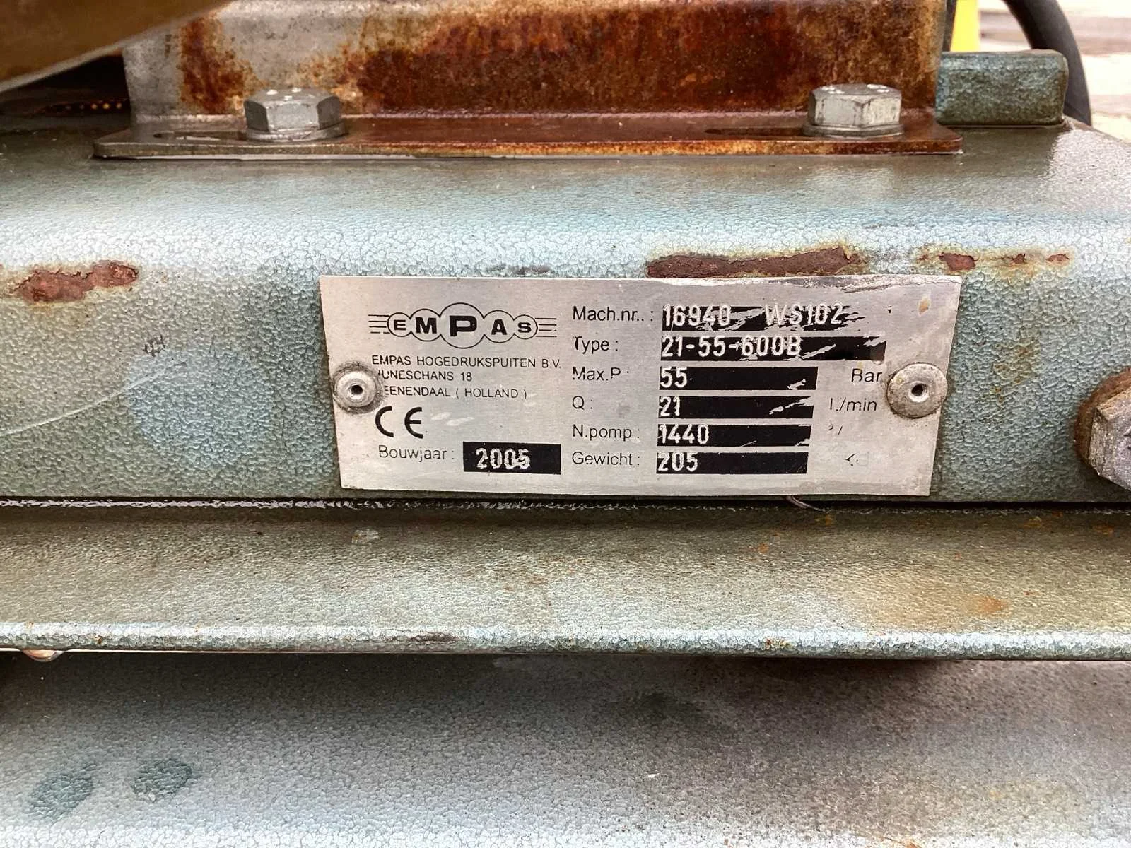 Voorzien van. Honda benzine motor; water tank; Merk: Empas Type: 21-55-600B Bouwjaar: 2005 Maximale werkdruk: 55bar Mobiel: true