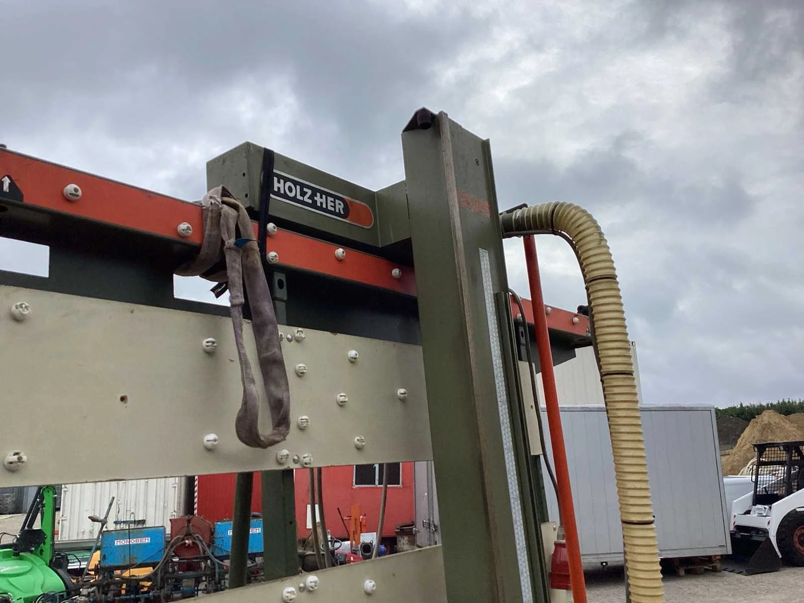Voorzien van. Afzuiging voorbereiding Merk: Holz Her Type: 1205 Zaaghoogte: 2000mm Zaaglengte: 3200mm Aansluiting: 400V Afmeting l: 3600mm Afmeting b: 1500mm Afmeting h: 2750mm