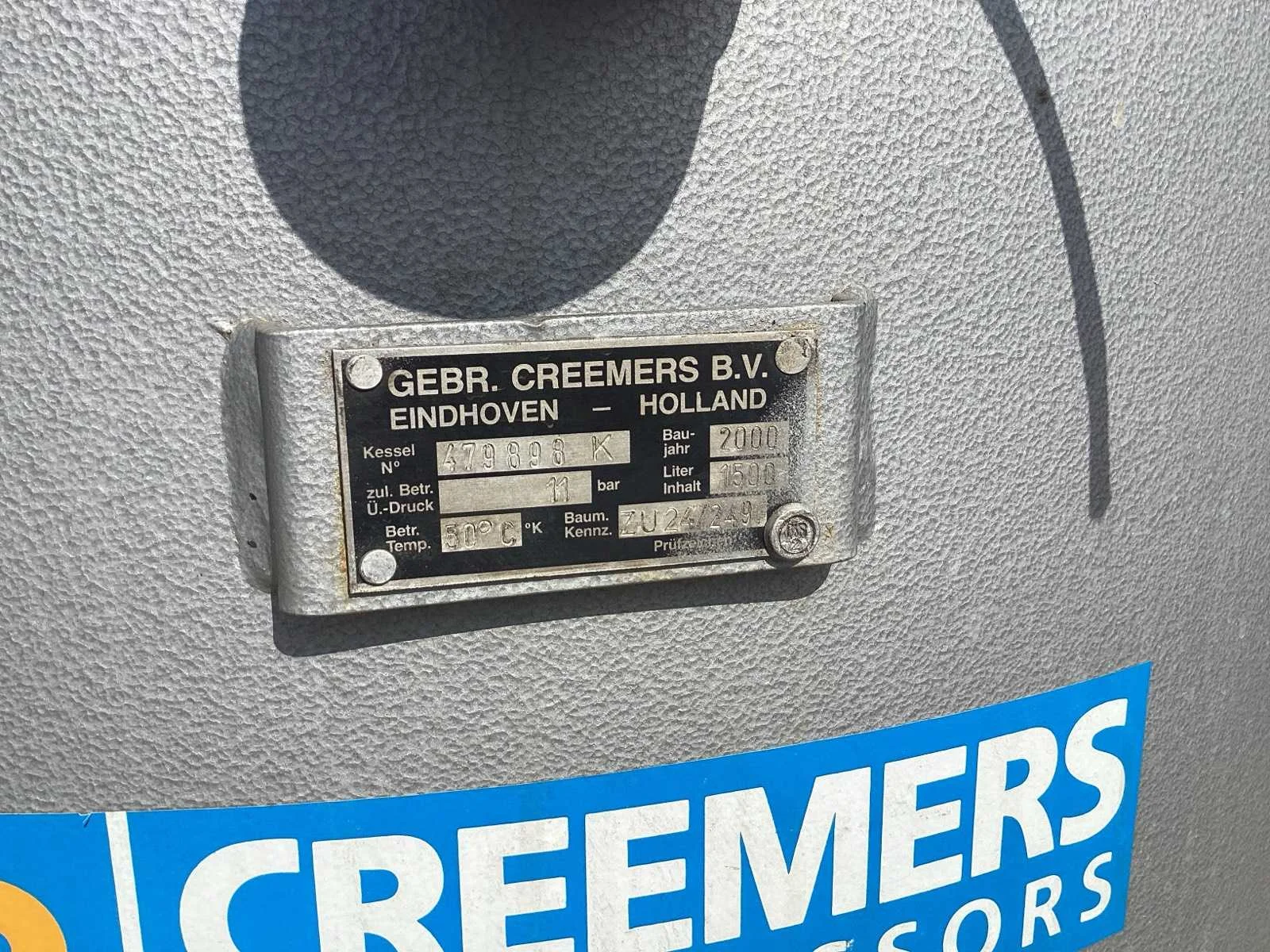 Inhoud 1500 liter; 11 bar Merk: Creemers Type: 479898 k Bouwjaar: 2000 Serienummer: Zu24/249 Totale afmeting Breedte: 1200mm Totale afmeting Hoogte: 2200mm