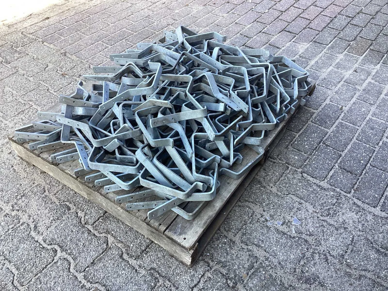 Voorzien van. Bak beugels en mast beugels; totaal 200 stuks