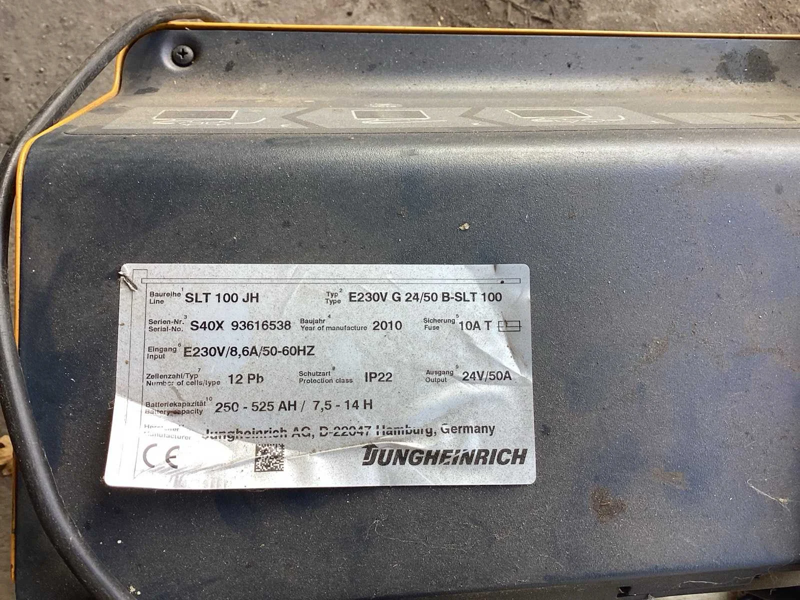 Werking onbekend Merk: Jungheinrich Spanning: 24V Laadstroom: 50A Aansluiting: 230V
