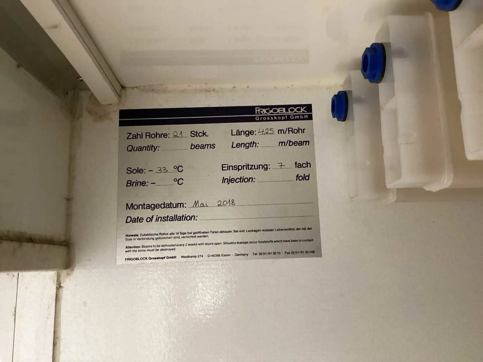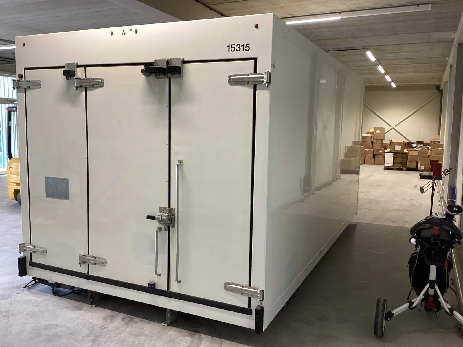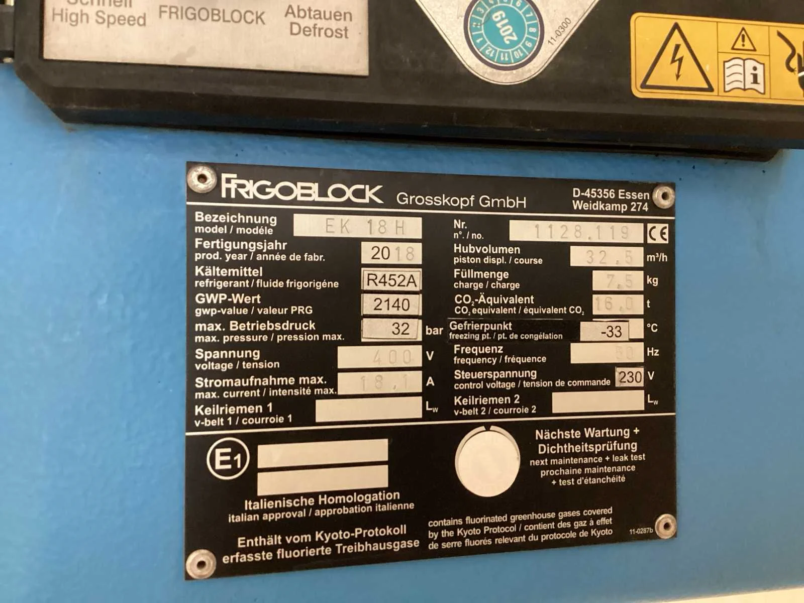 Voorzien van. Frigoblock koeler model EK 18 H , bouwjaar 2018, 400 volt; Onlangs een gehele service buurt gehad Merk: Wilke Type: TK FK 7.2 483 Serienummer: 218236 Afmeting l: 4850mm Afmeting b: 2600mm Koelcompressor: true Verdamper: true Totale afmeting L: 5750mm Totale afmeting Breedte: 2600mm Totale afmeting Hoogte: 2510mm