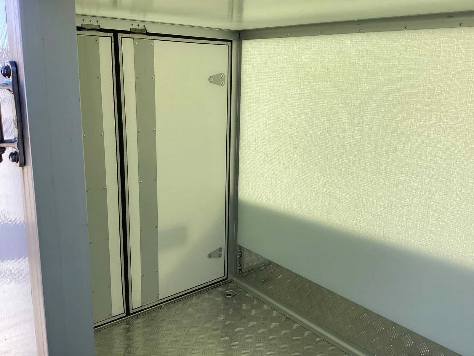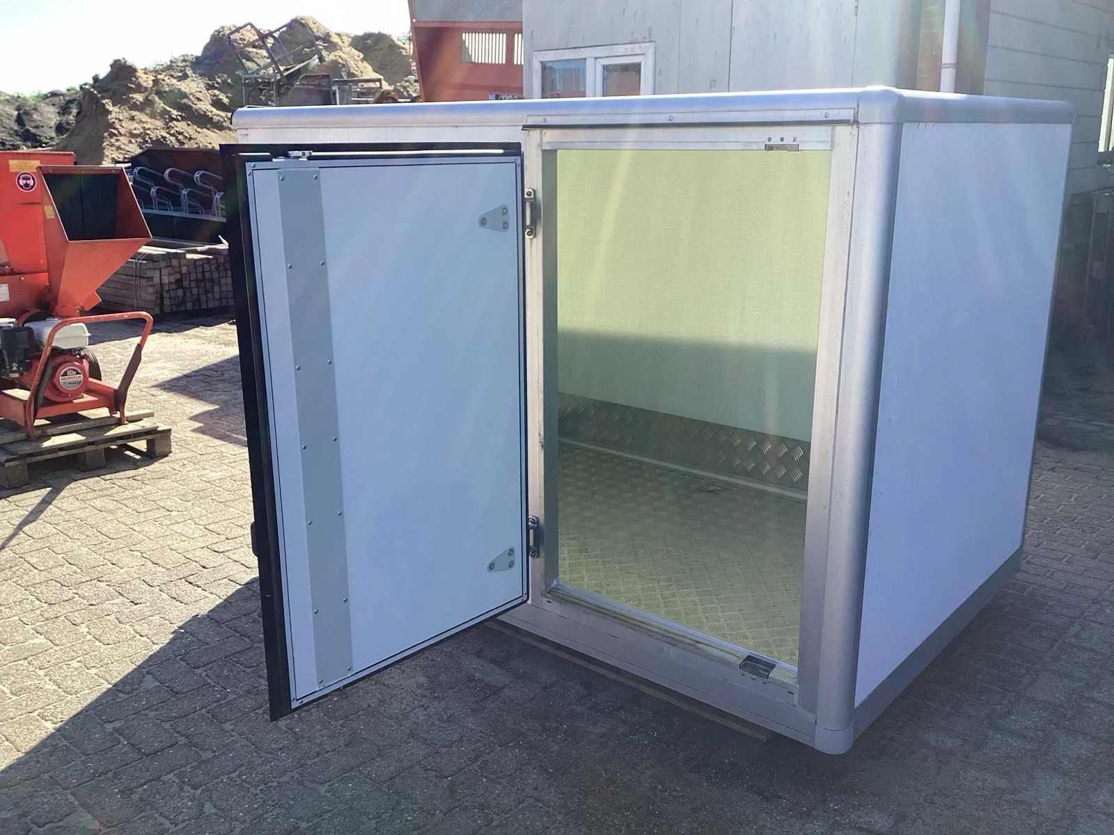 Voorzien van. Aluminium traanplaat bodem; bakhaken; zij deur; achter deuren Lengte: 225cm Breedte: 145cm Hoogte: 170cm