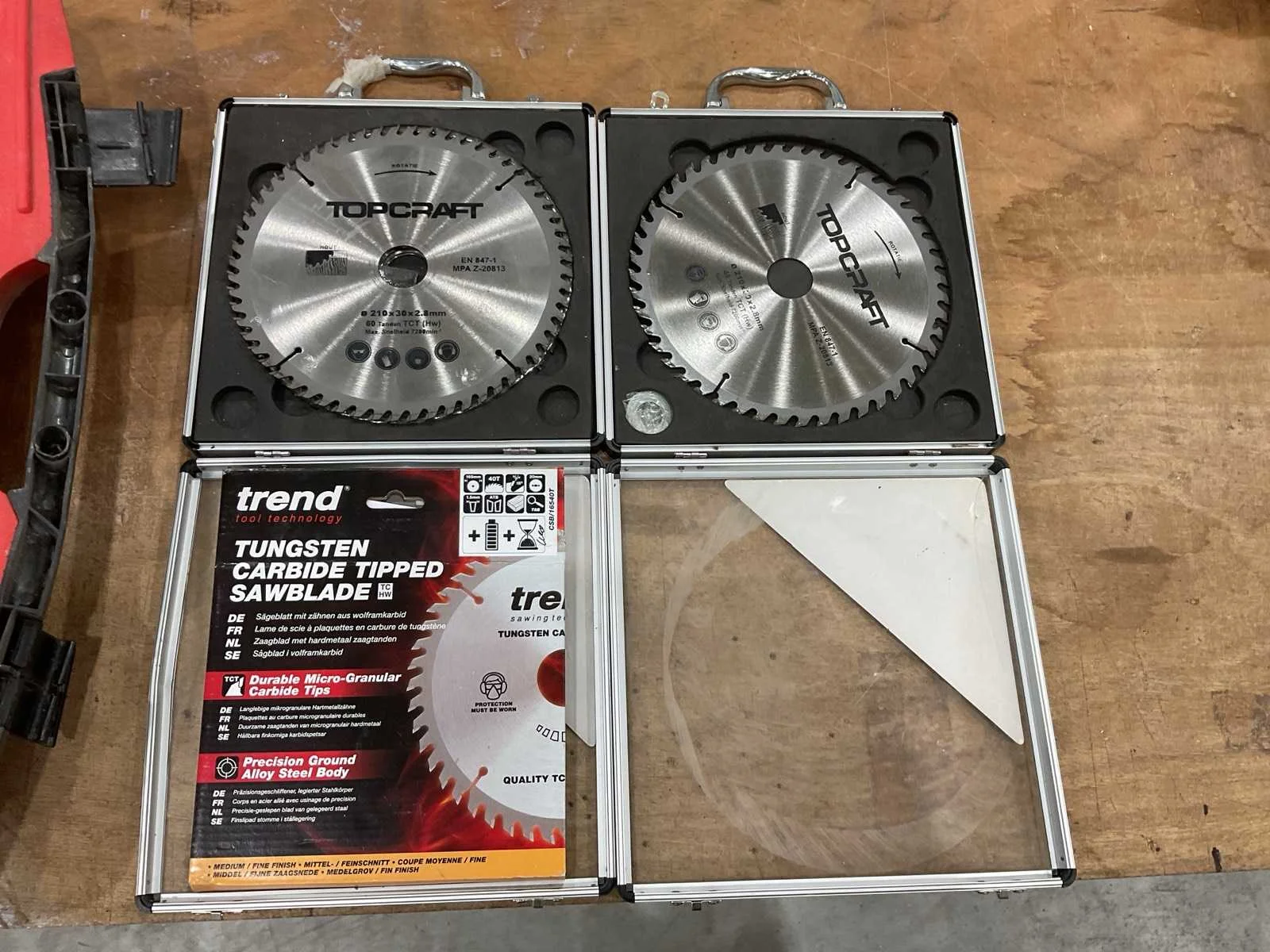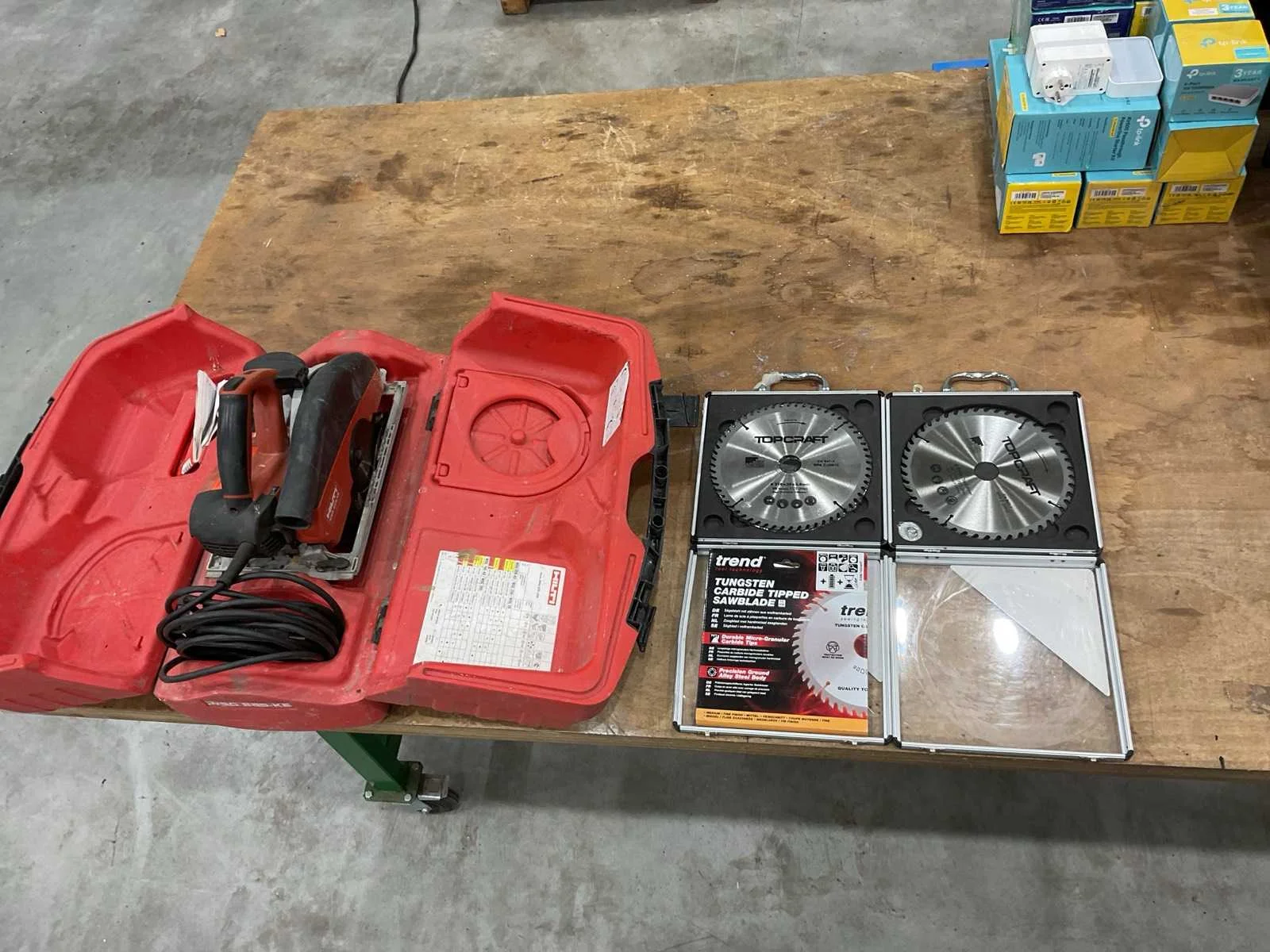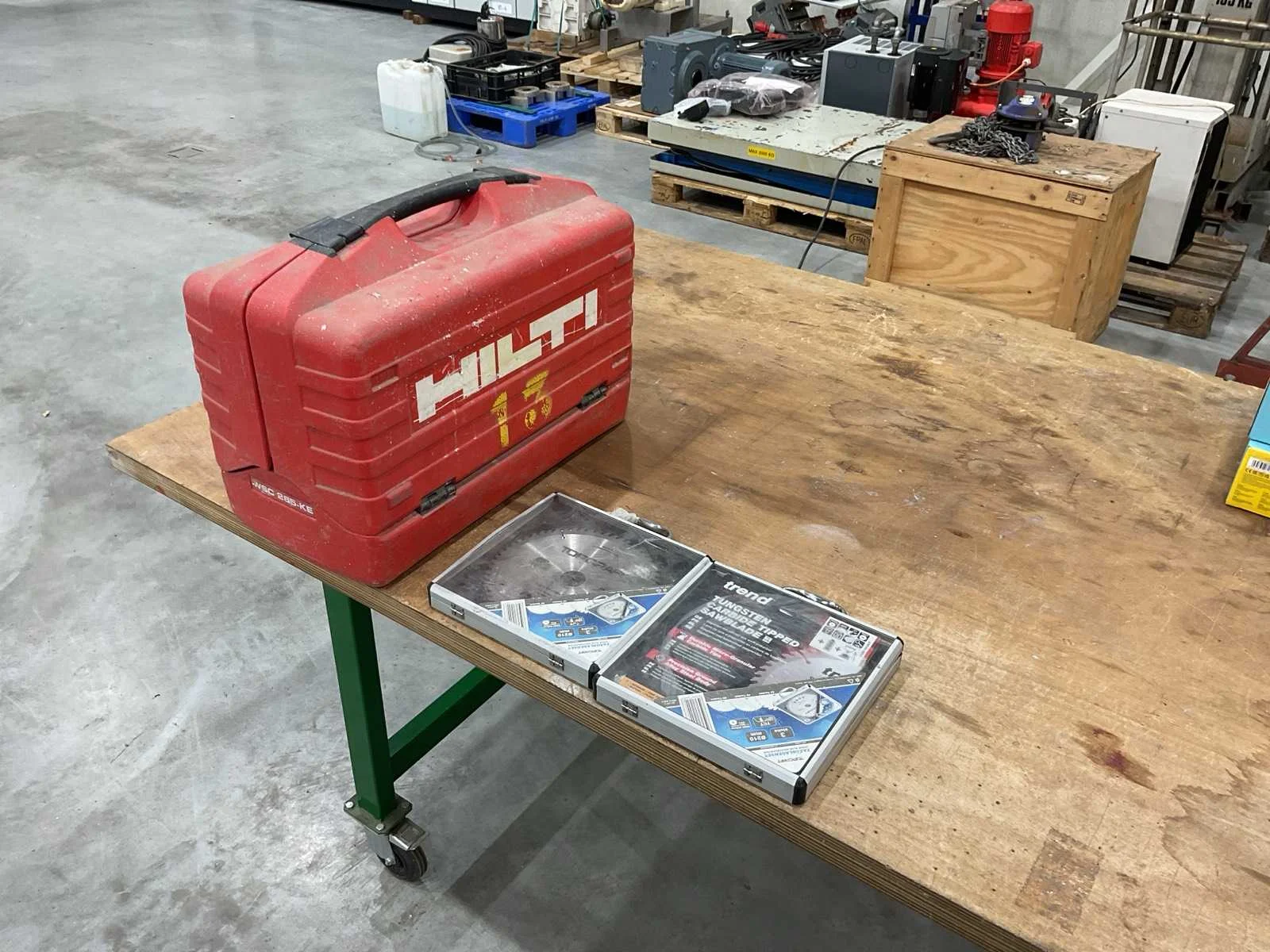 Voorzien van. 6 extra zaagbladen Merk: Hilti Model: WSC 265-kE Spanning: 230V Met koffer: true Lengte: 560mm Breedte: 280mm Hoogte: 400mm