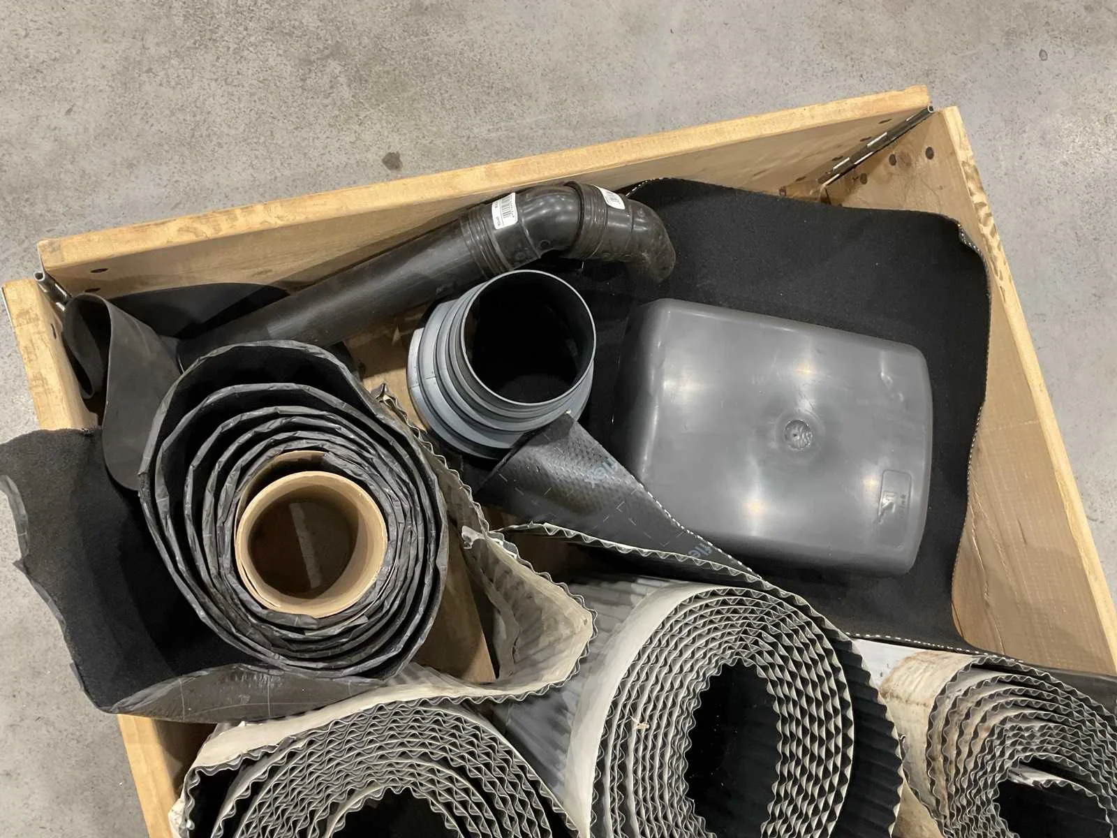 Voorzien van. 9 rollen loodvervanger; div ontluchters Merk: Ubiflex Kleur: Zwart Lengte: 80cm Breedte: 120cm Hoogte: 75cm