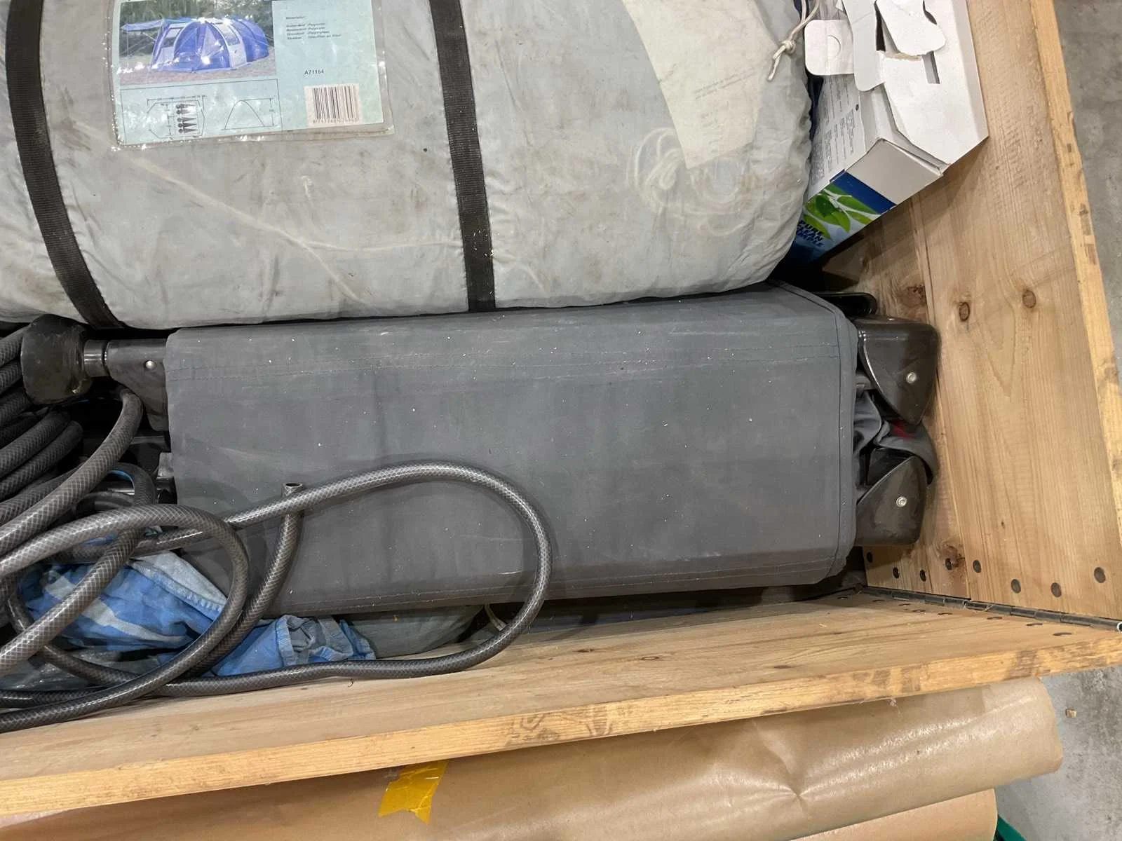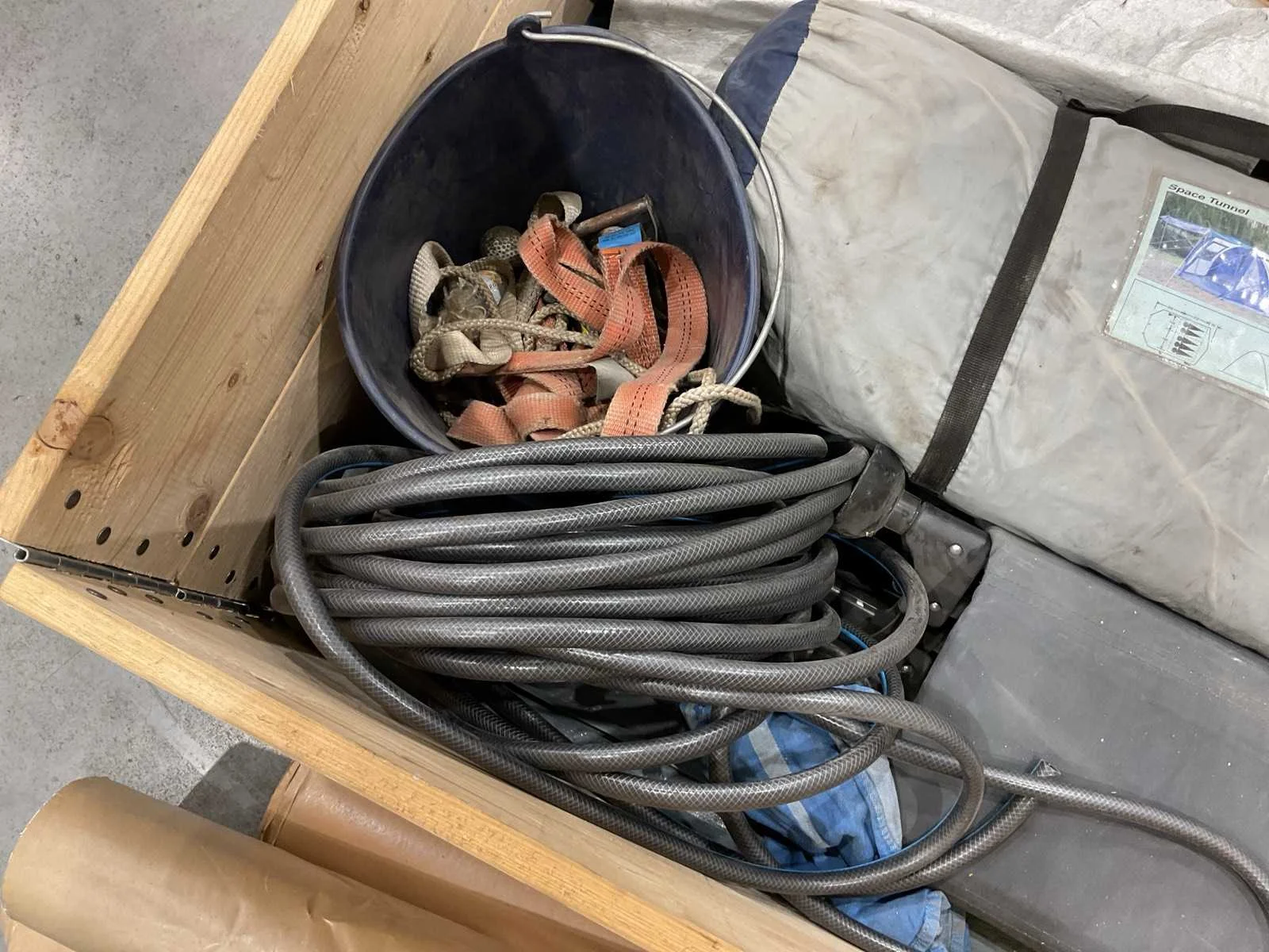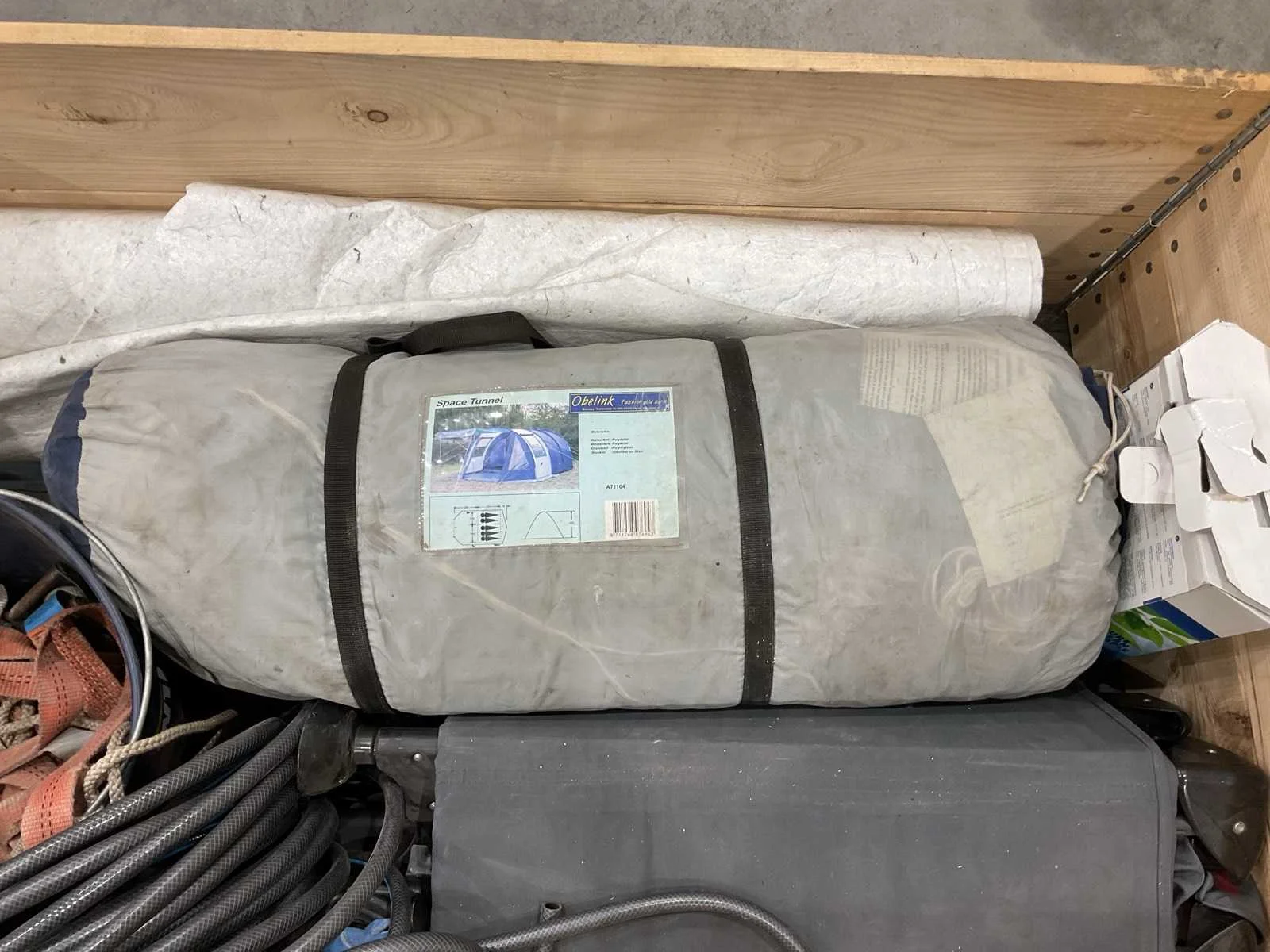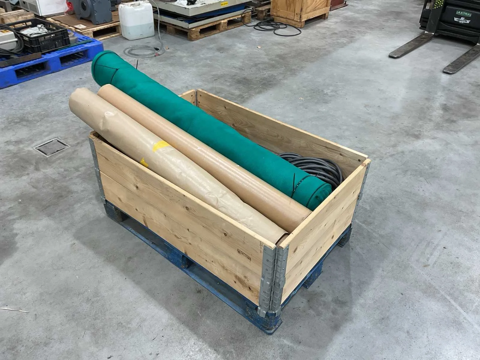 Voorzien van. 2 rollen Stucloper; 1 rol winddoek; tent; slang; div. Lengte: 80cm Breedte: 155cm Hoogte: 80cm