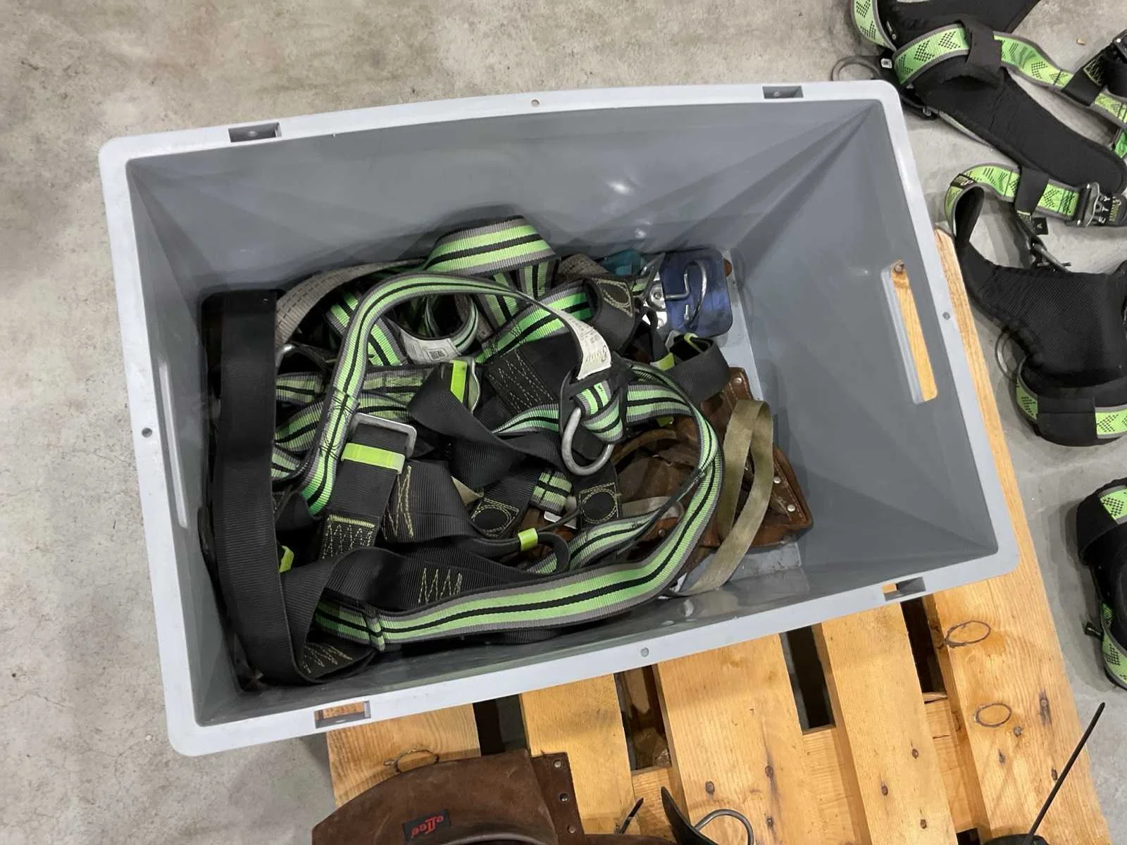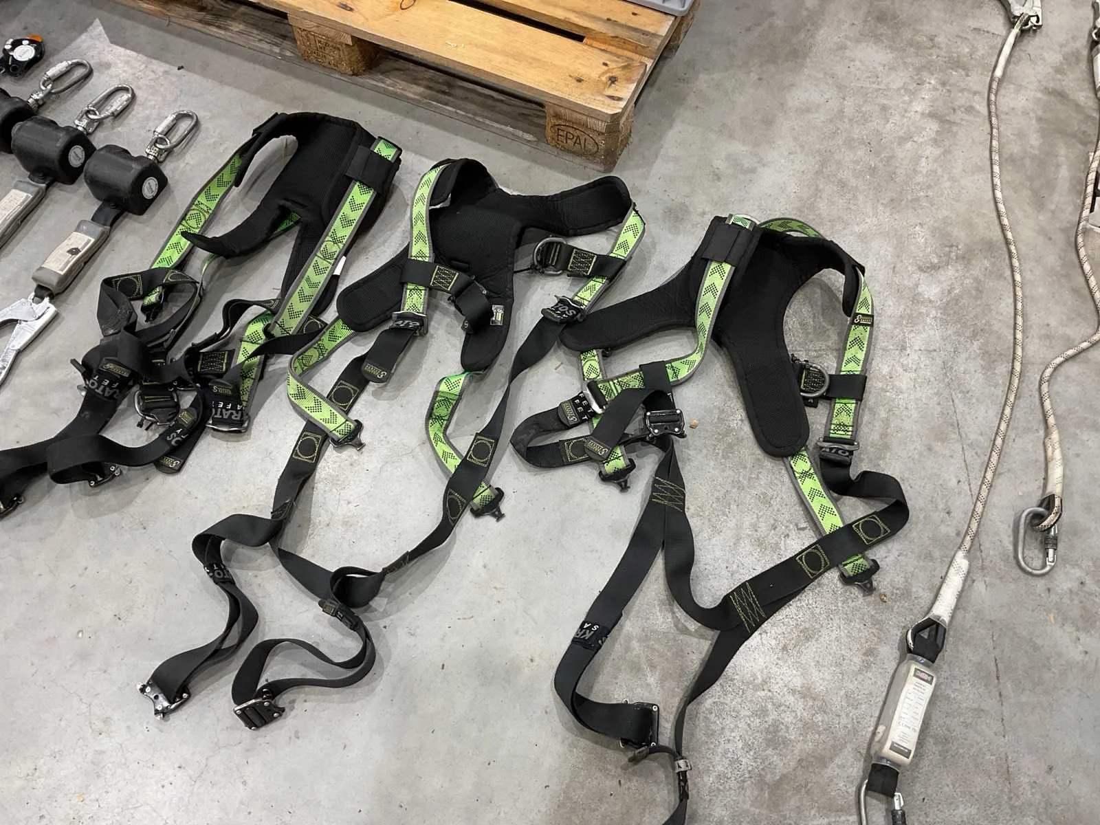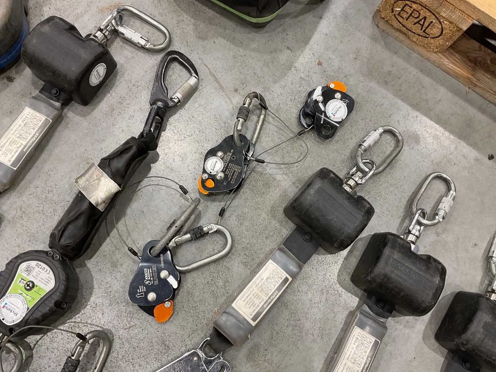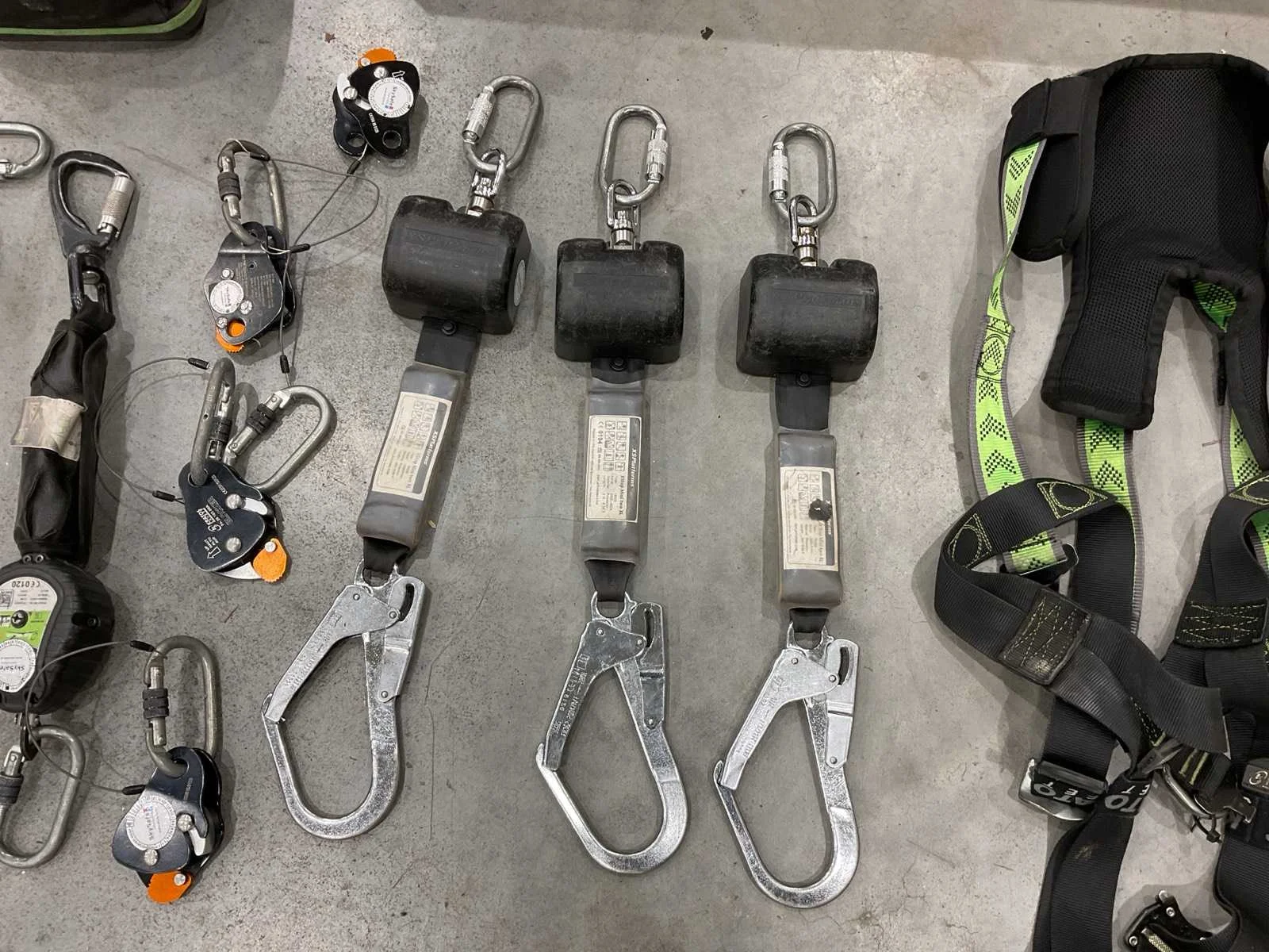 Voorzien van. 3x valbeveiliging harnas; 6x valstopblok; div klimtouw; 1x div